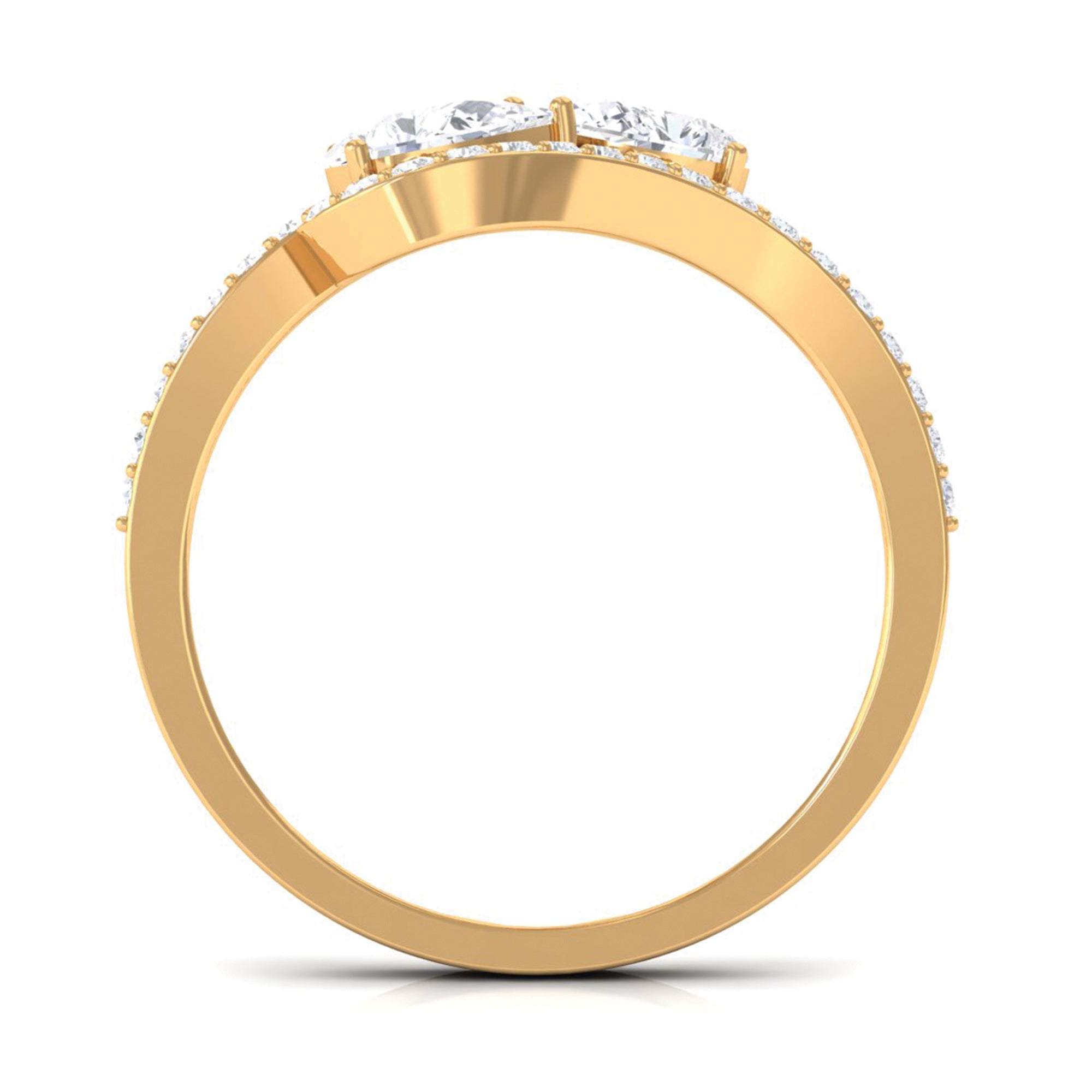 Pear Cut Moissanite 2 Stone Engagement Ring with Bypass Shank