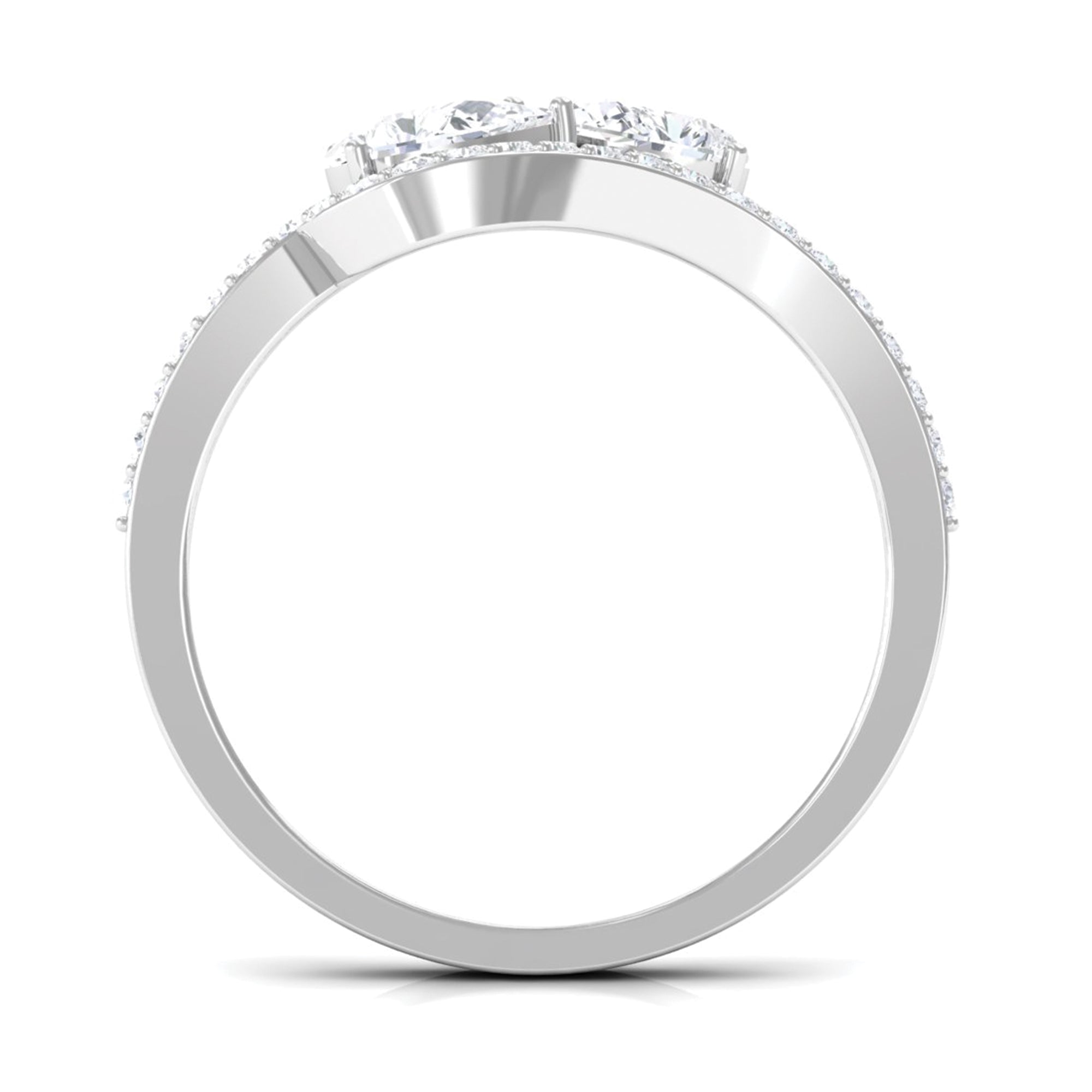 Pear Cut Moissanite 2 Stone Engagement Ring with Bypass Shank