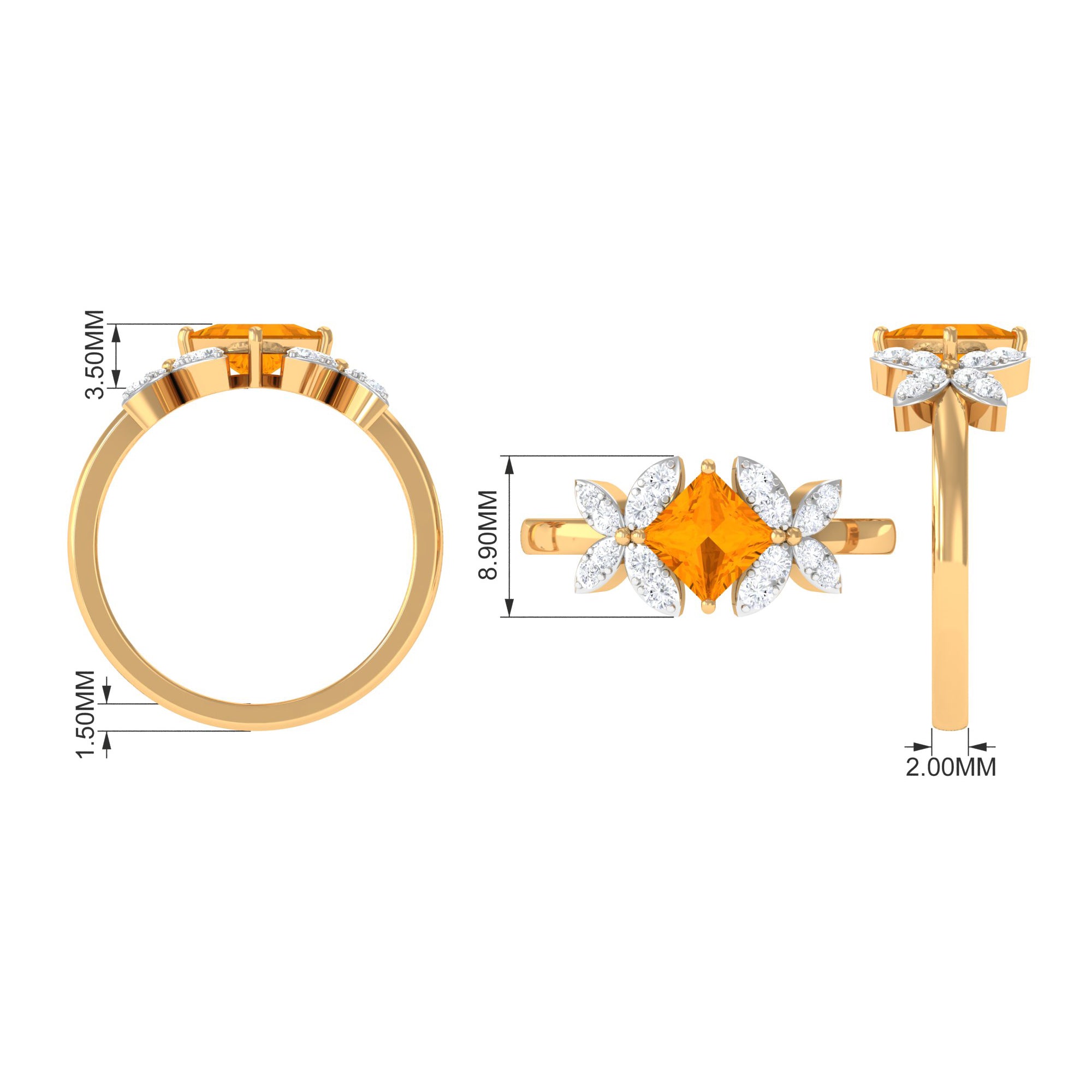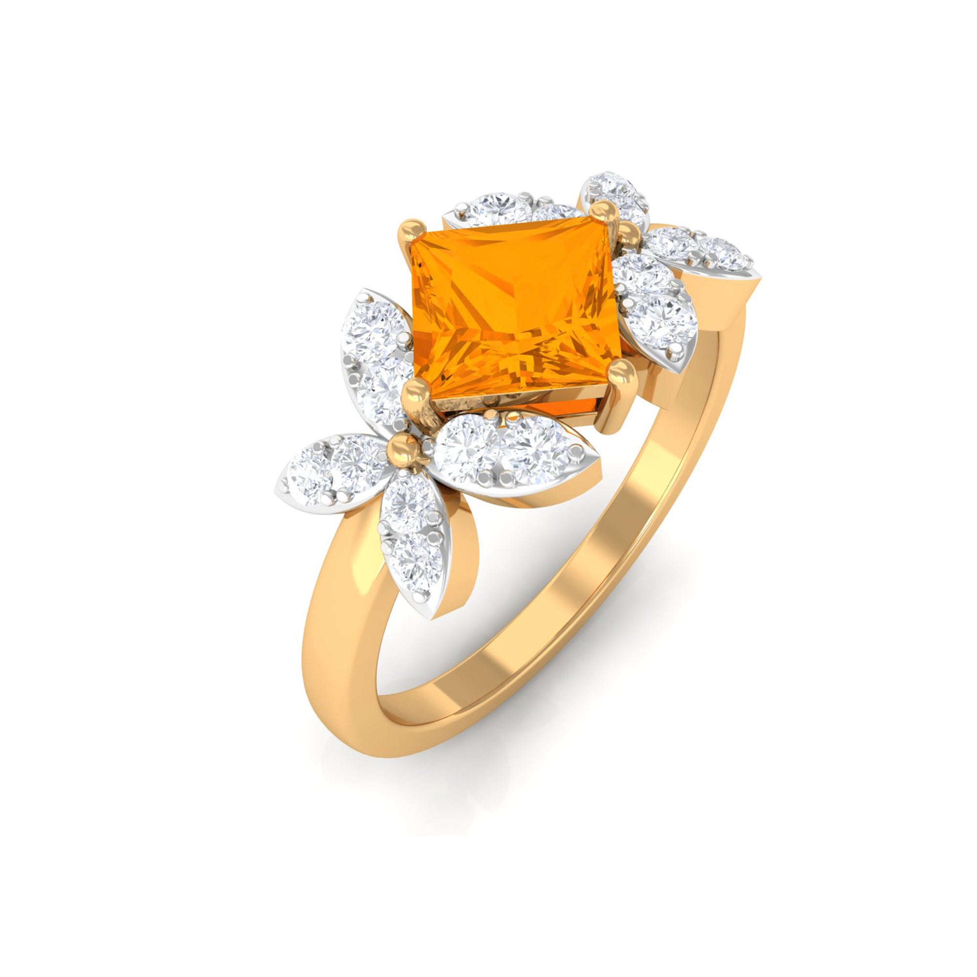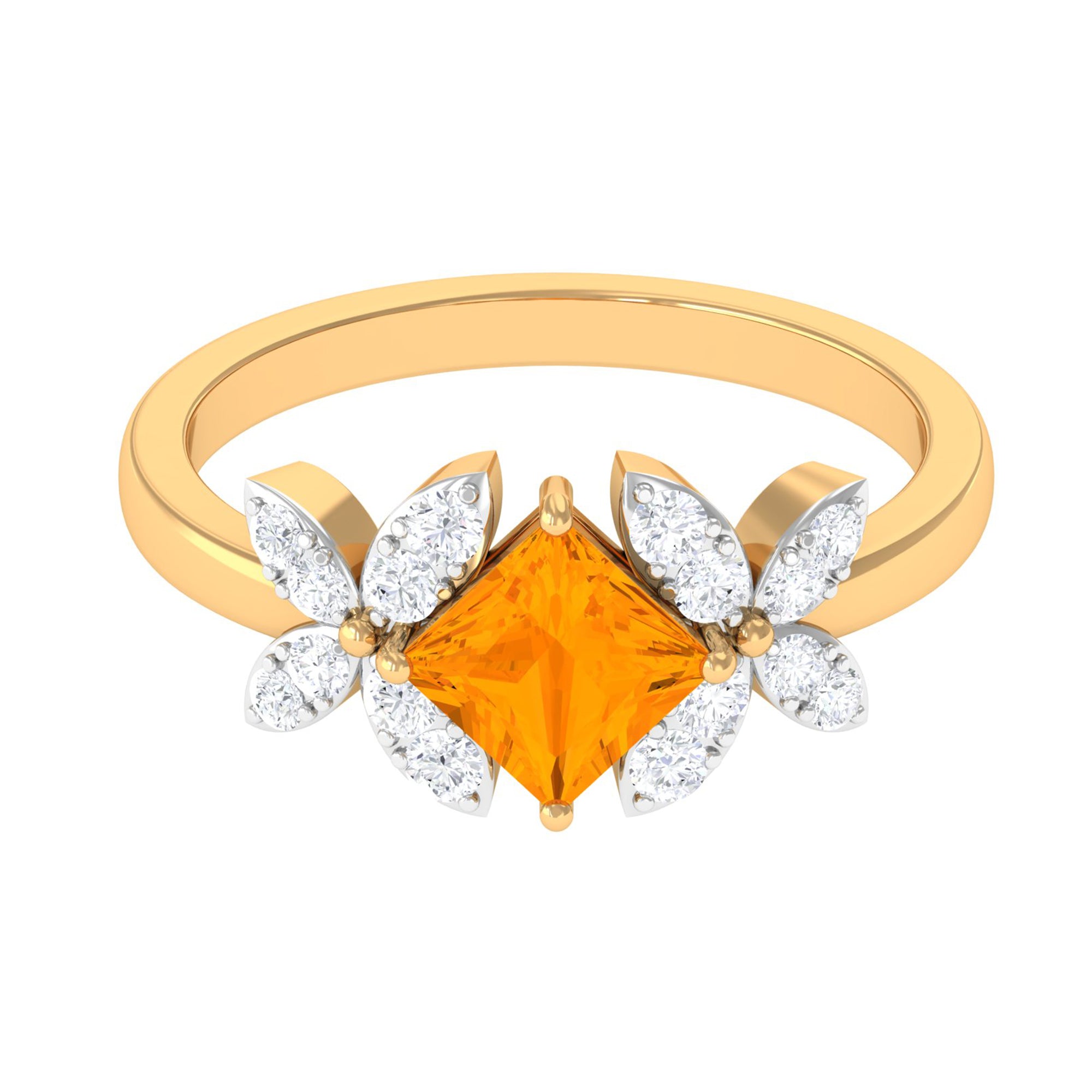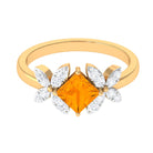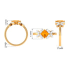 1.50 CT Princess Cut Fire Opal Flower Engagement Ring with Diamond
