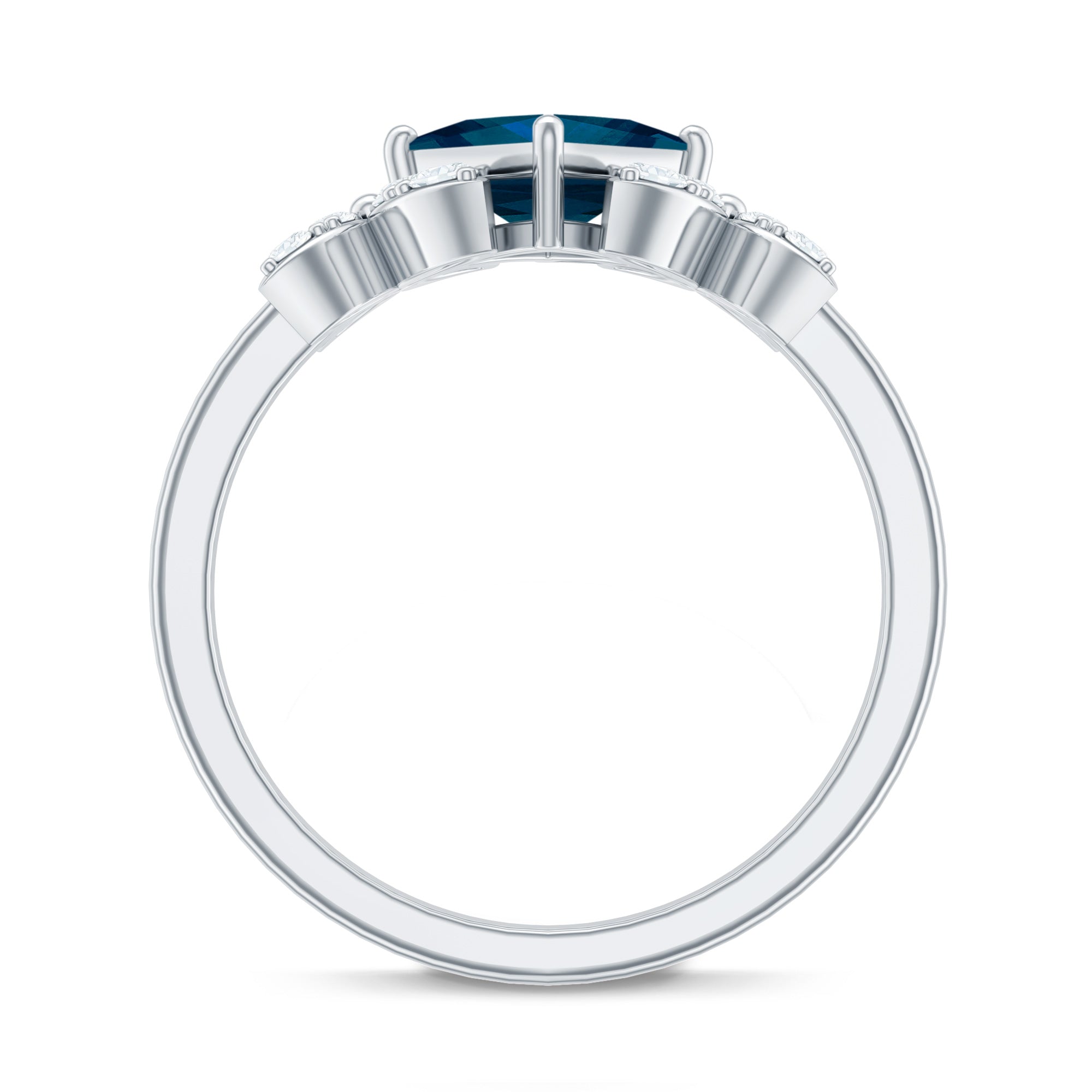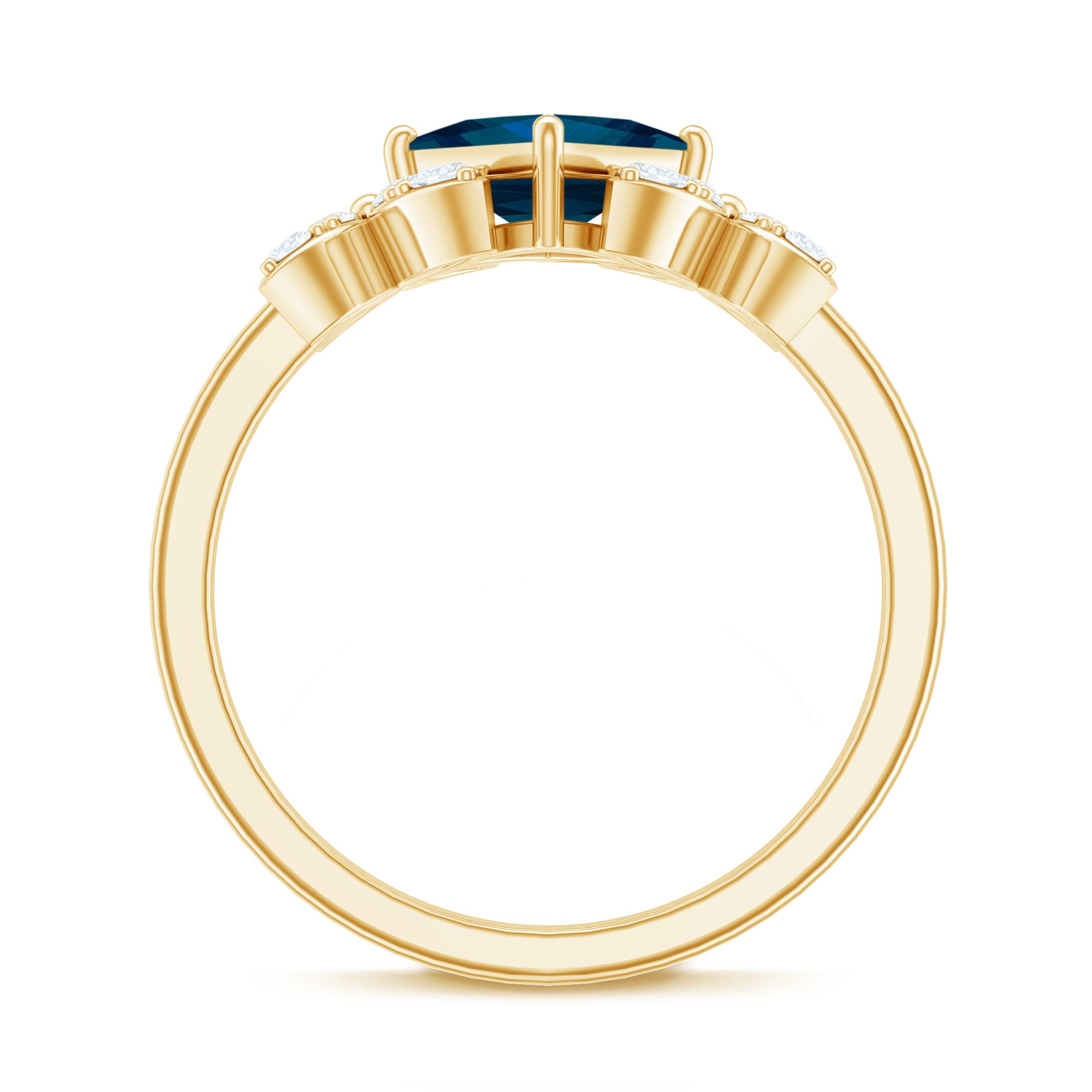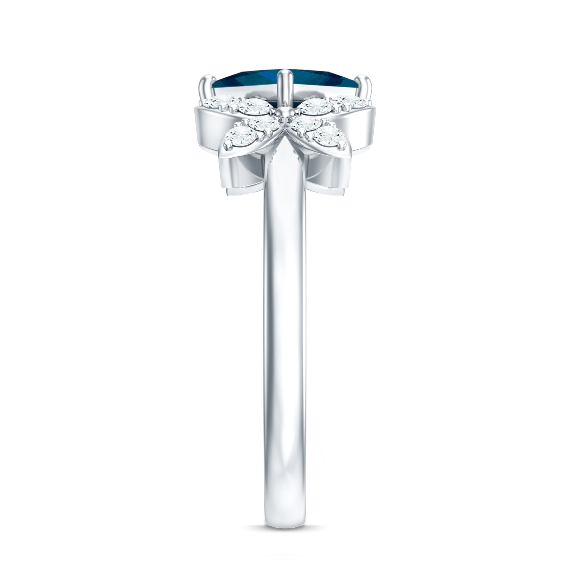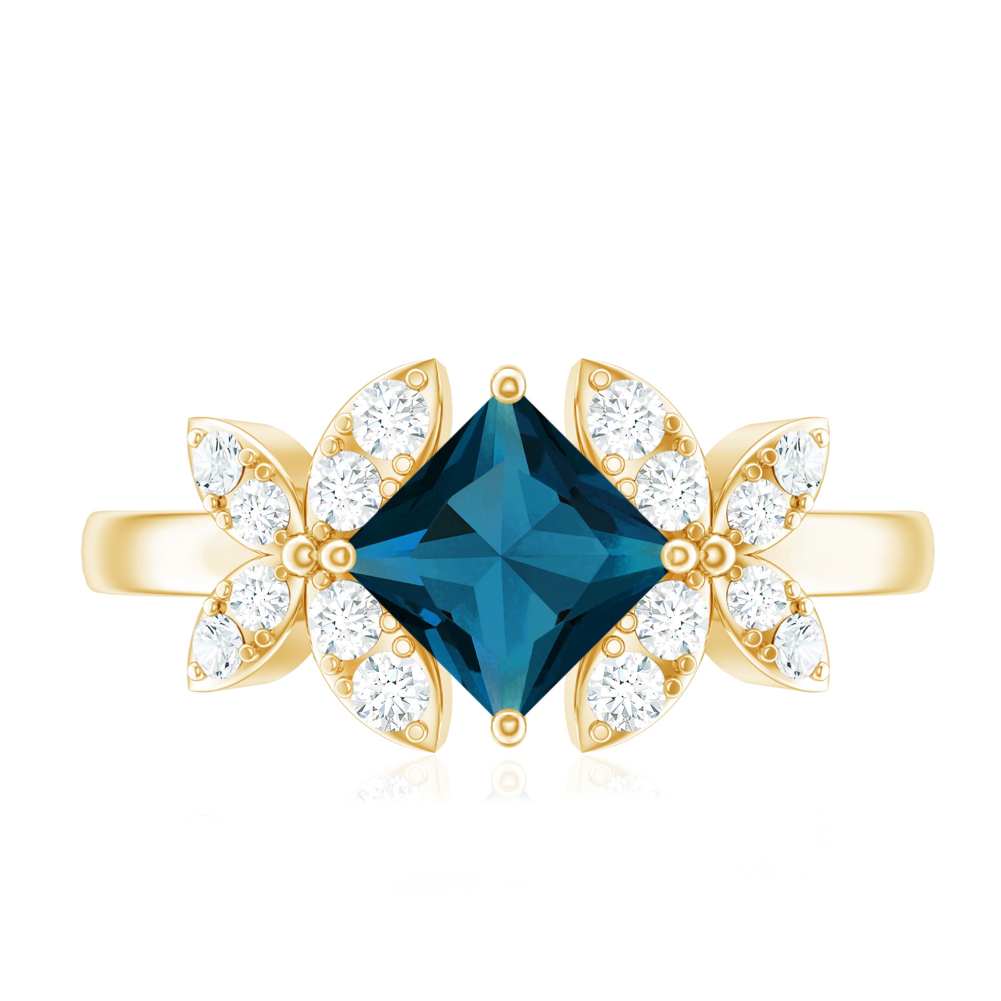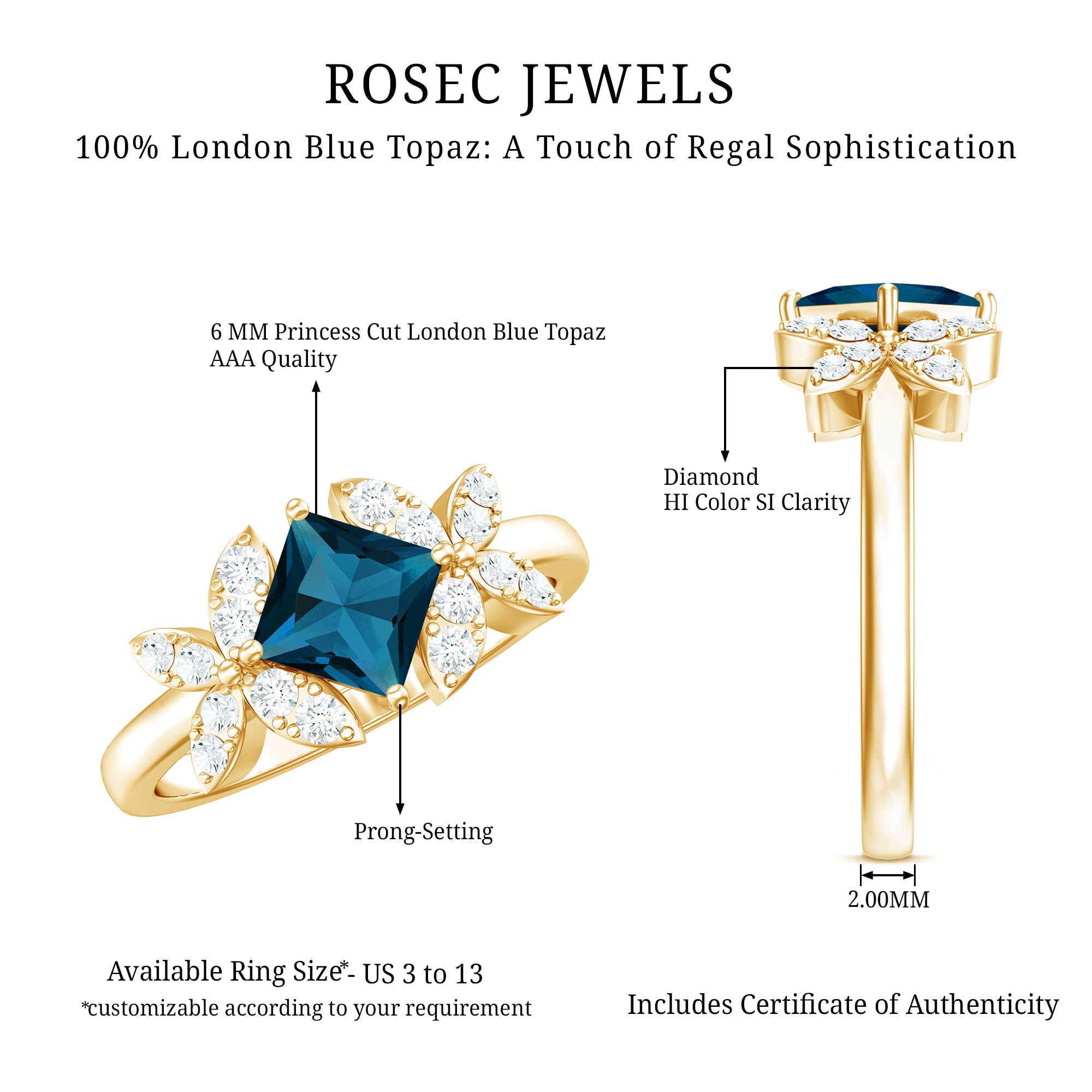 6mm Princess Cut London Blue Topaz Floral Engagement Ring with Diamond