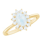 Make her feel like a princess on your special day with this Princess Diana Inspired Ring adorned with Oval Shape Moonstone is set as a Solitaire with Diamond Halo. This Engagement Ring is crafted with Solid Gold for a luxurious appeal.