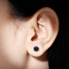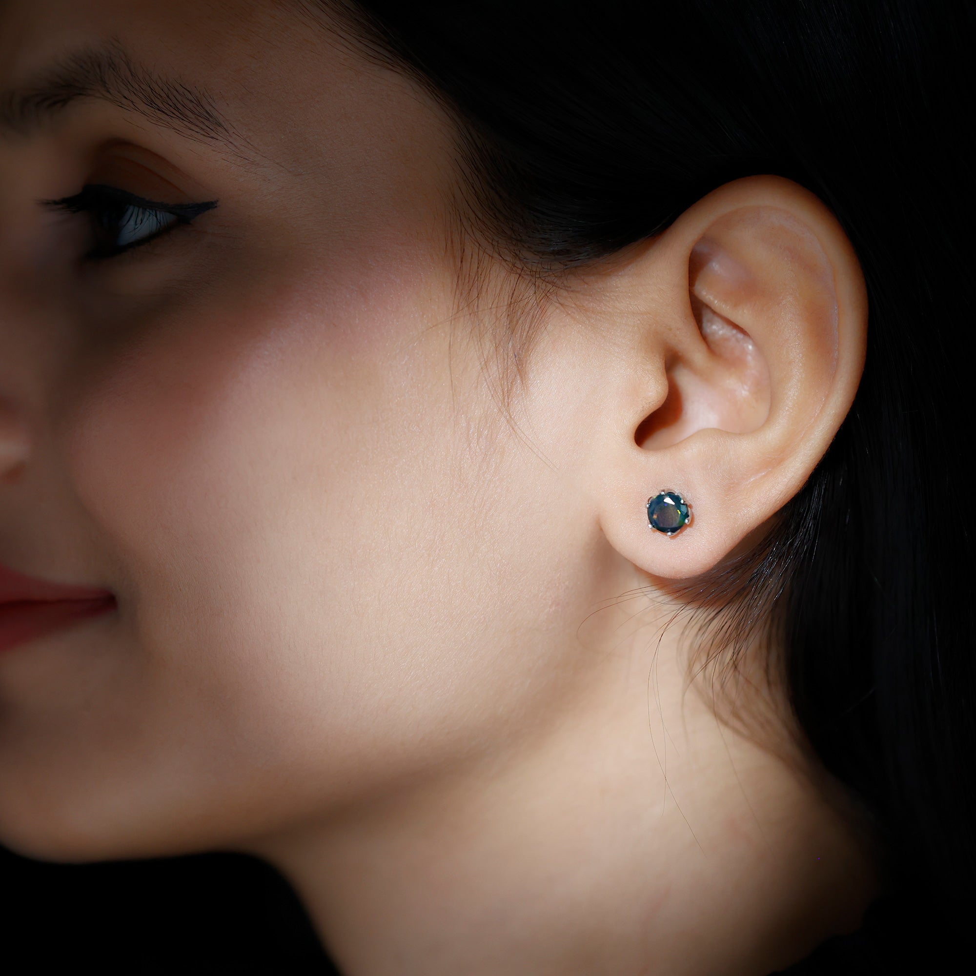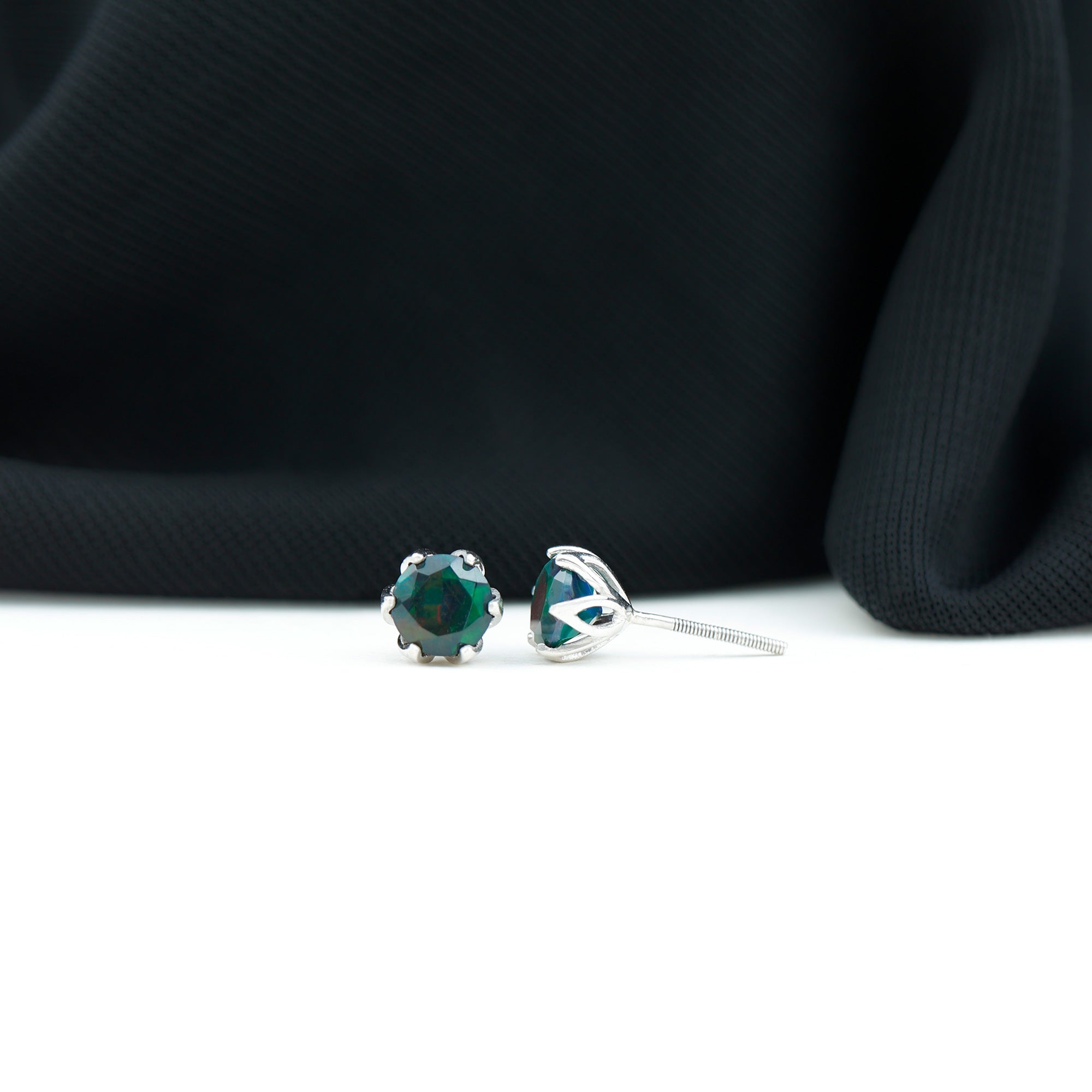 1.50 CT Round Shape Black Opal Solitaire Stud Earrings