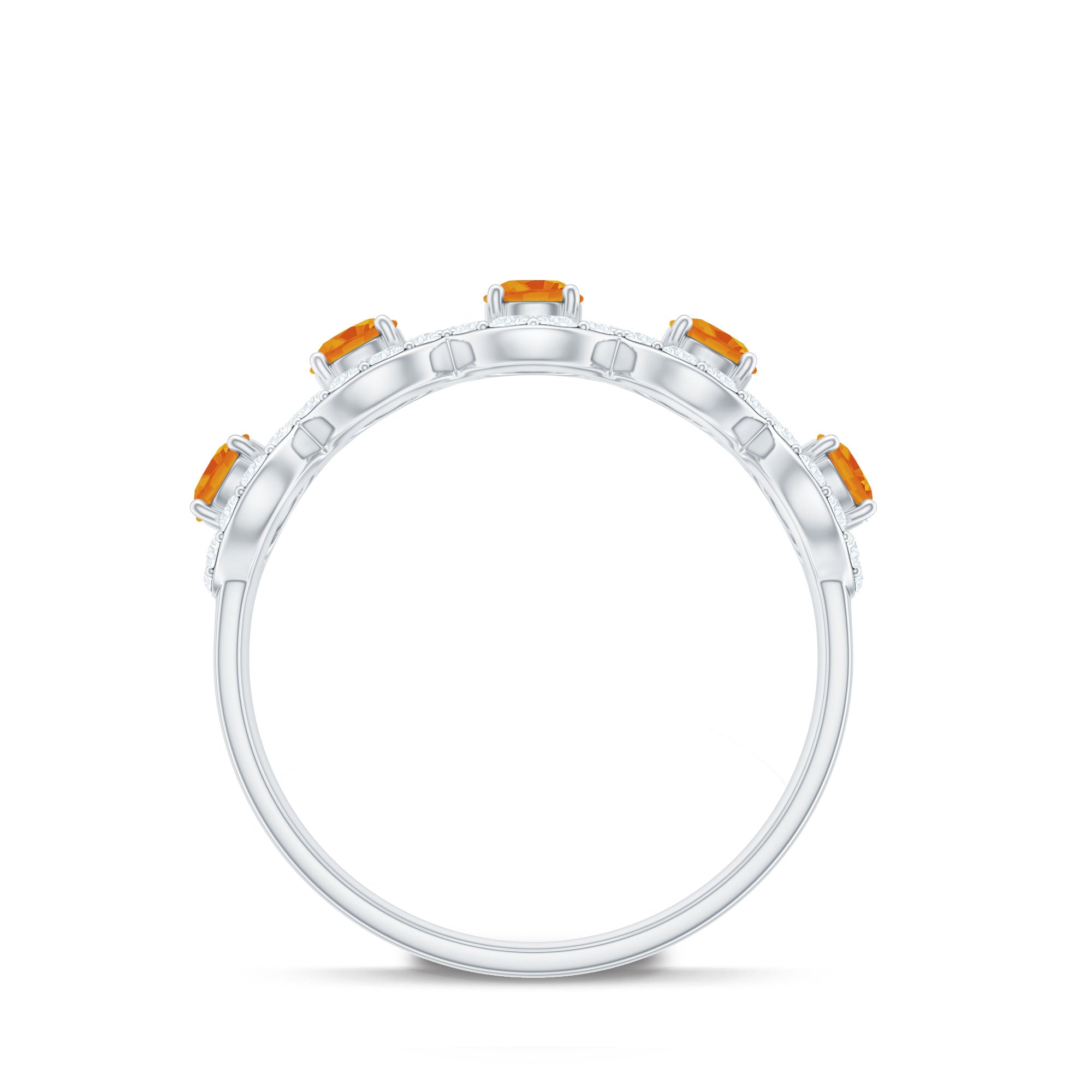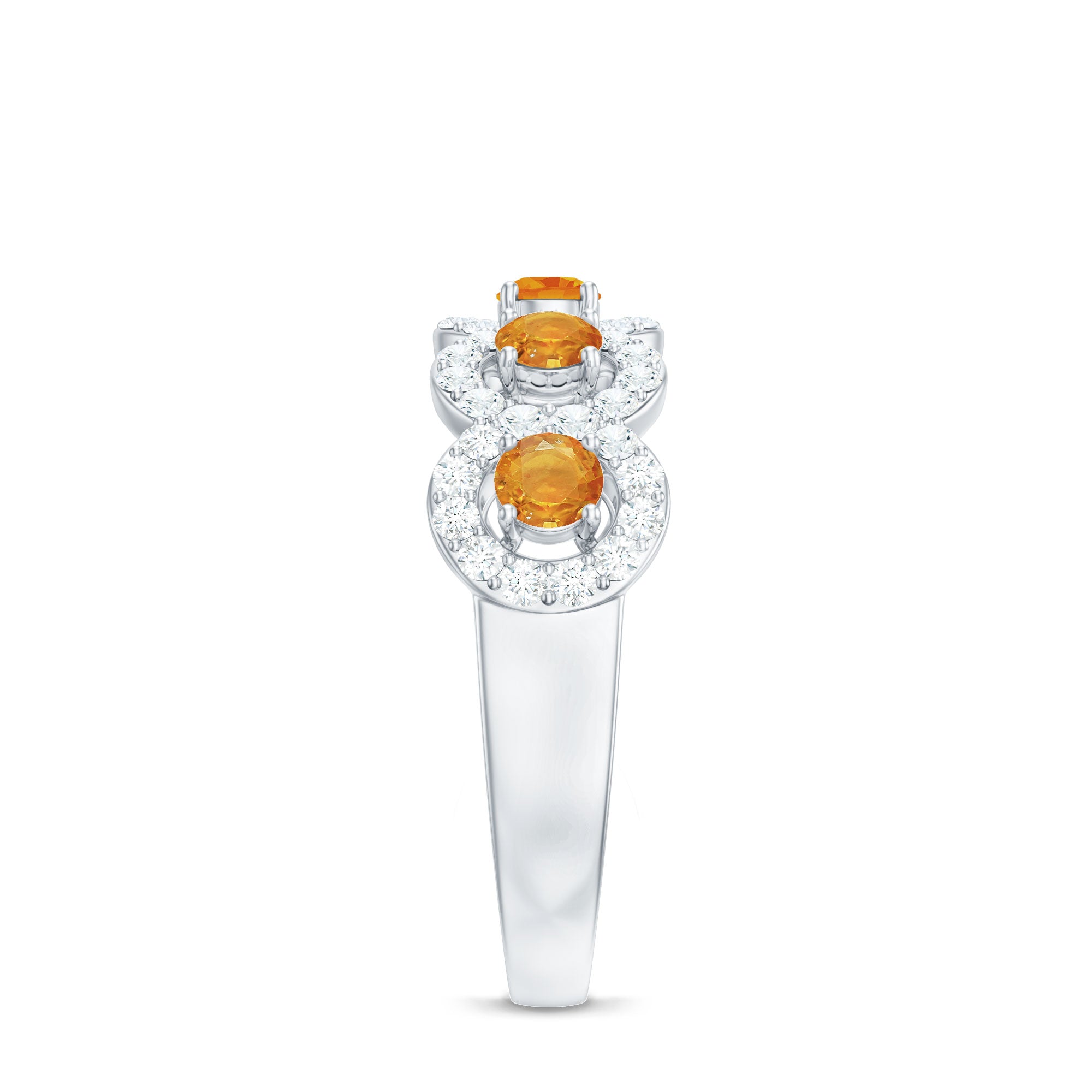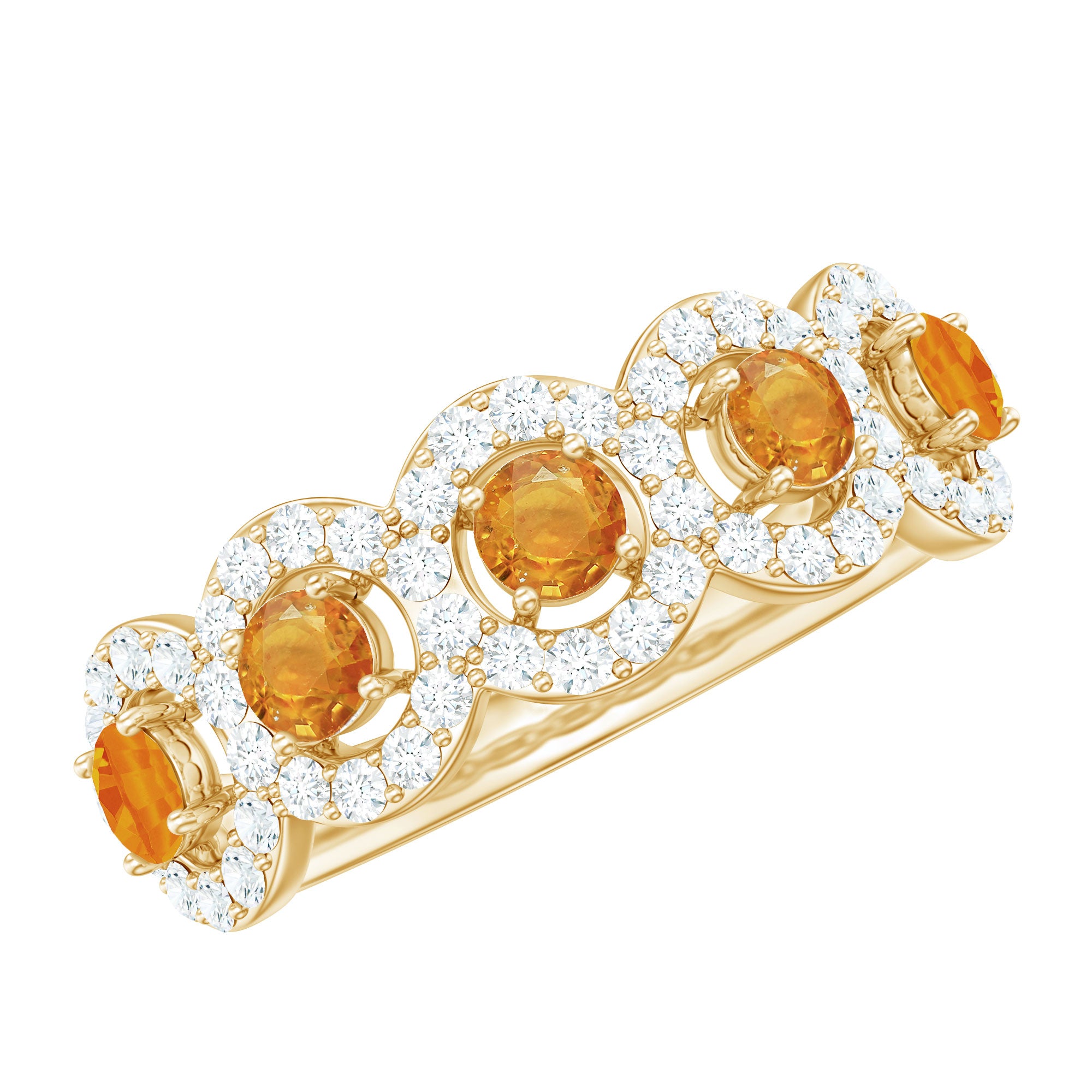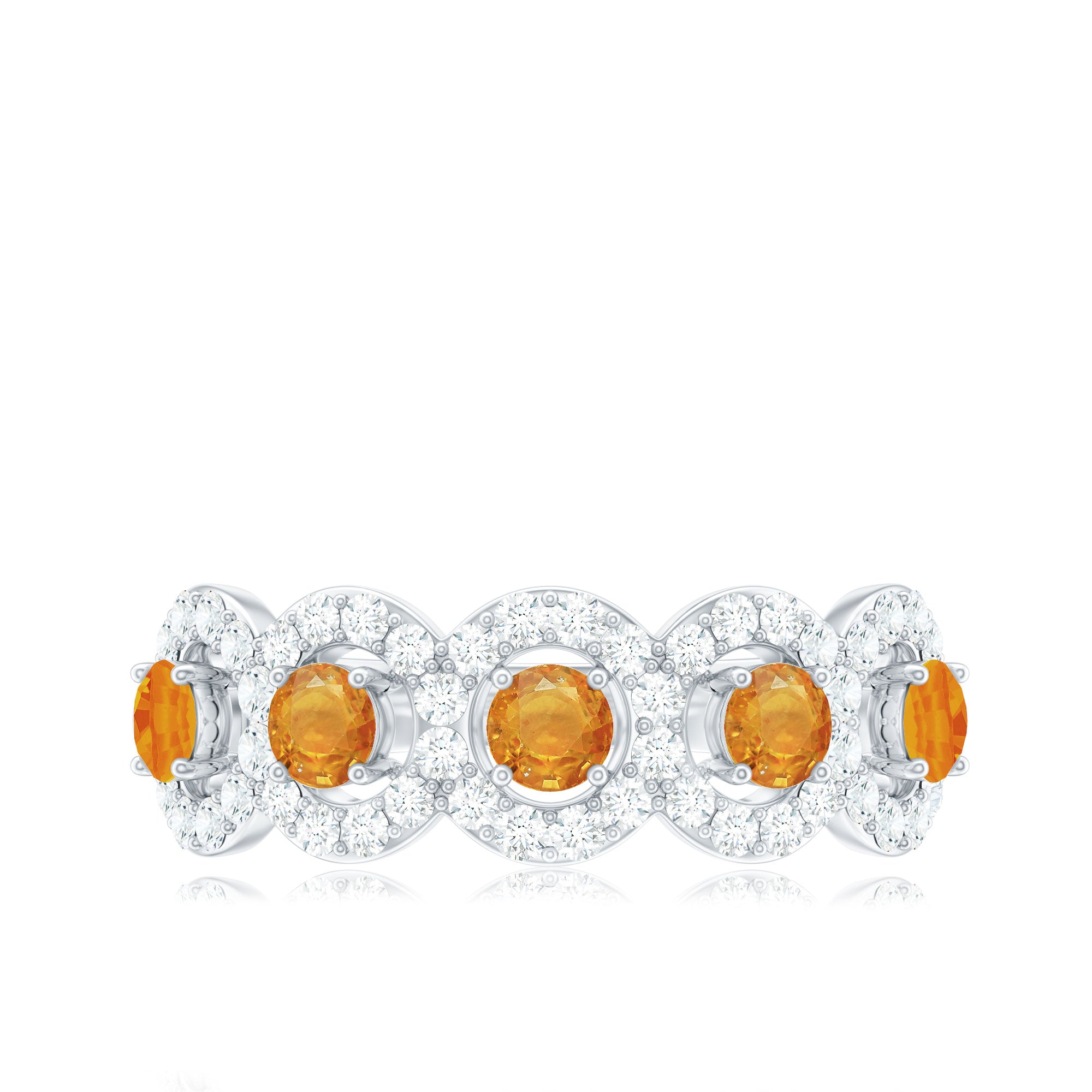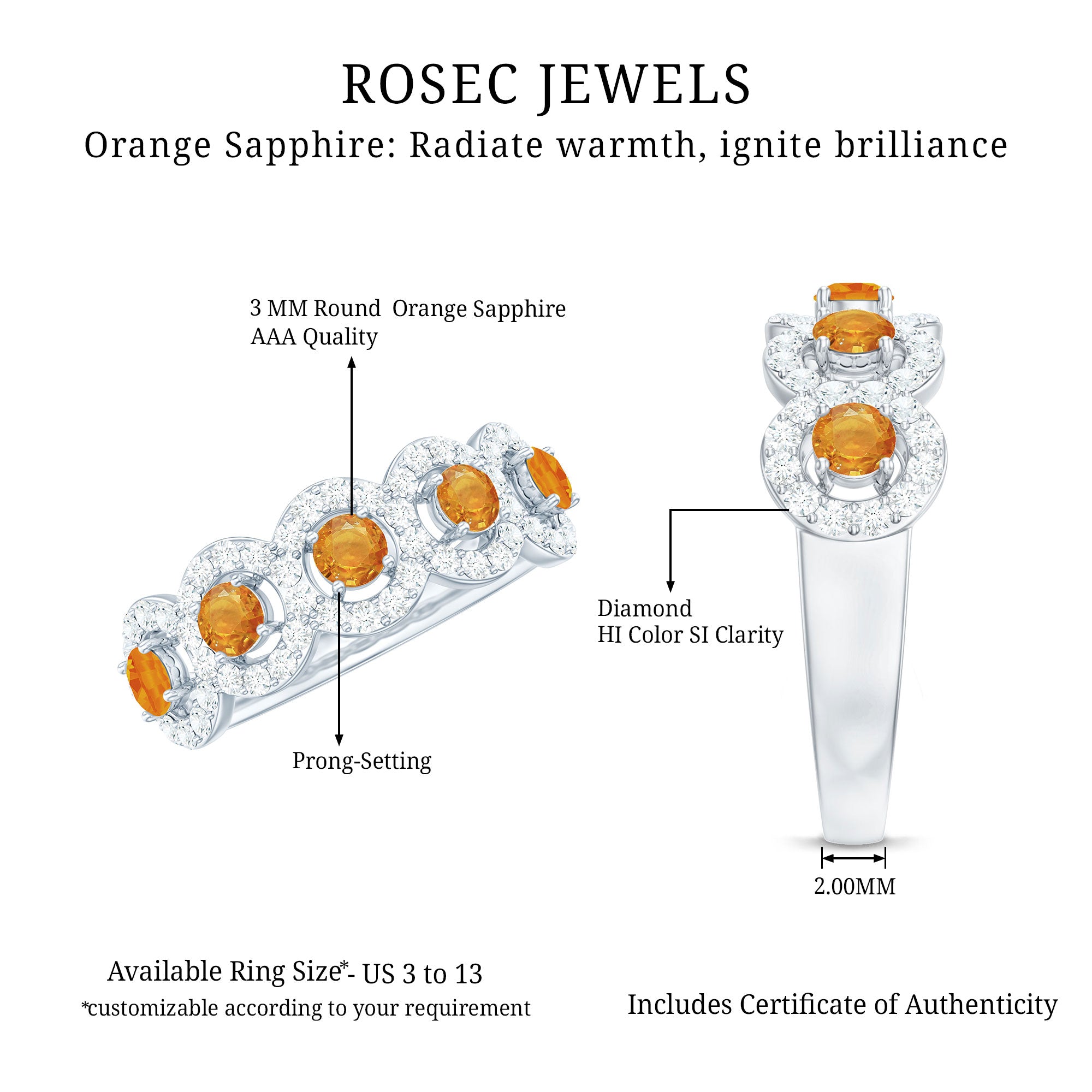 1.50 CT Round Shape Orange Sapphire and Diamond Halo Classic Half Eternity Ring
