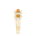 Mark the special day of your life with this Classic Half Eternity Ring. This Semi Eternity Ring for Women is adorned with Round Shape Orange Sapphire in Prong Setting with Diamond Halo to make for a stunning choice for your beloved. Crafted with Solid Gold to give it a luxurious appeal.