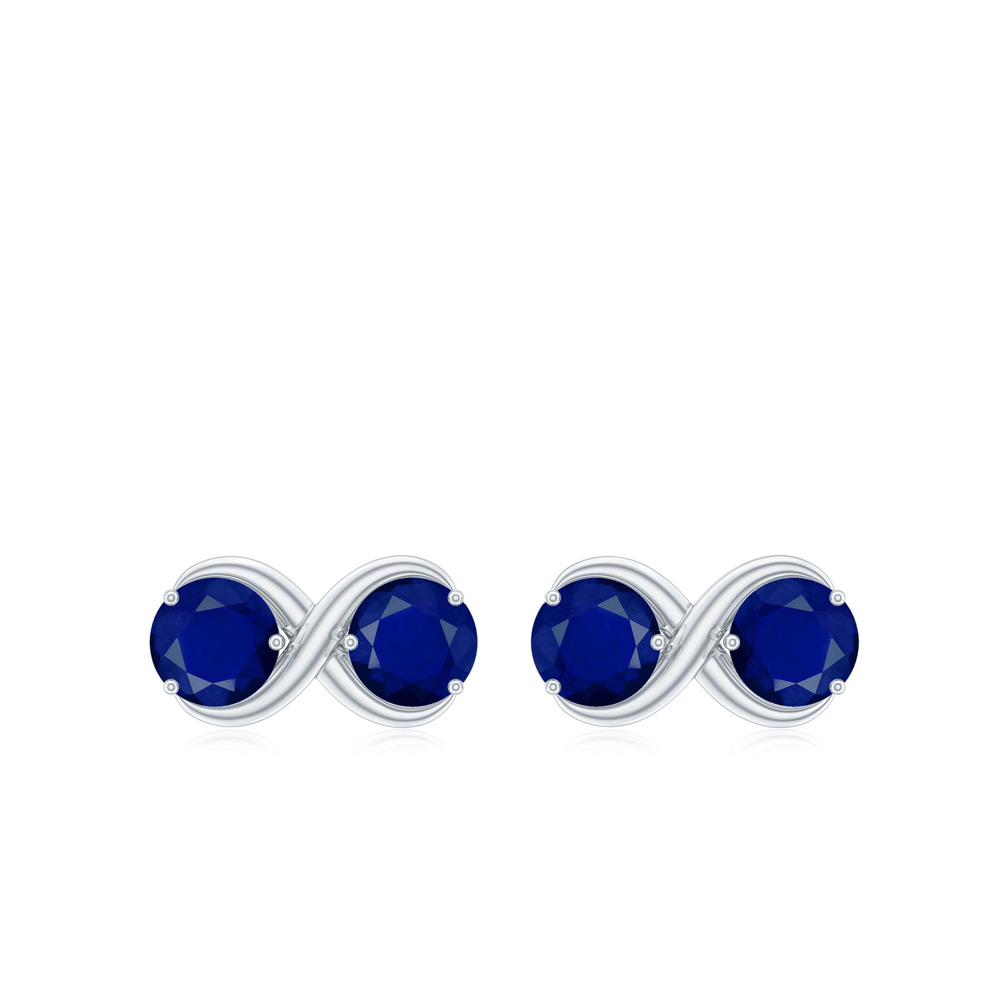 1.50 CT Simple Blue Sapphire Two Stone Infinity Stud Earrings
