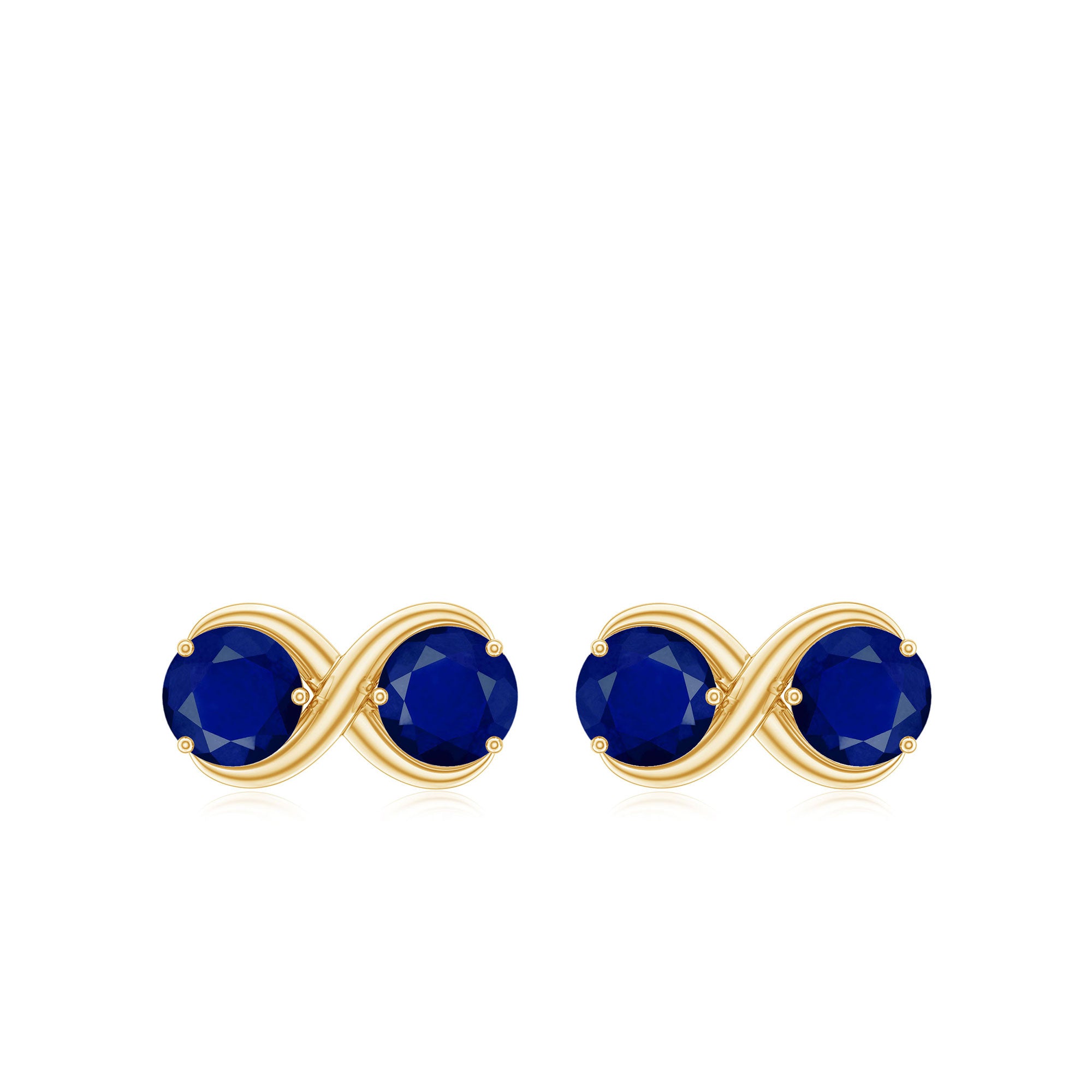 Make this special day extra special for her by giving her this pair of Infinity Simple Stud Earrings she will cherish forever. Starring Round Shape Blue Sapphire in a Two Stone Setting held between a gorgeous infinity symbol crafted with Solid Gold.