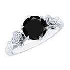 1.50 CT Solitaire Black Spinel Flower Ring with Diamond Side Stones