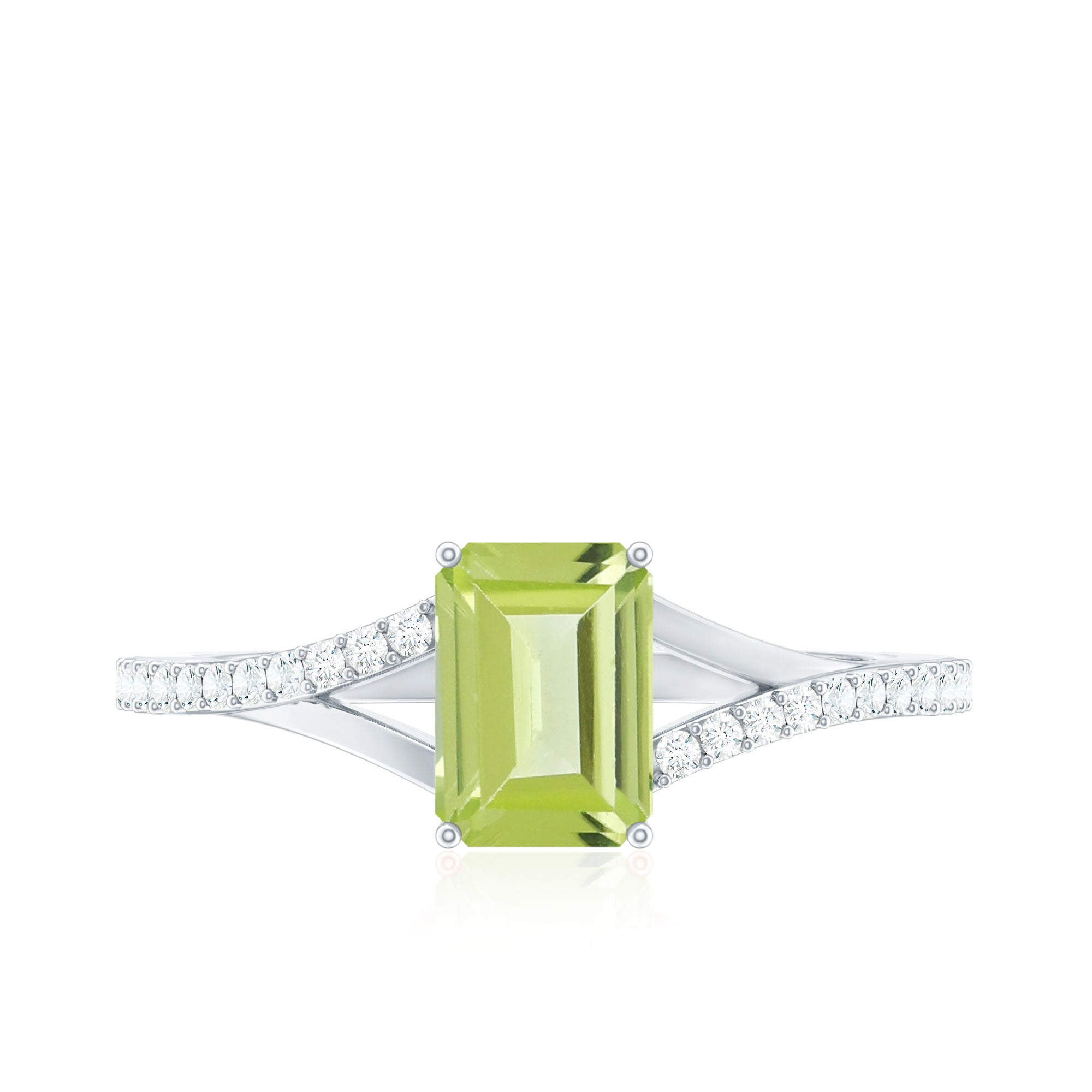 1.50 CT Split Shank Peridot Solitaire Ring with Diamond Accent