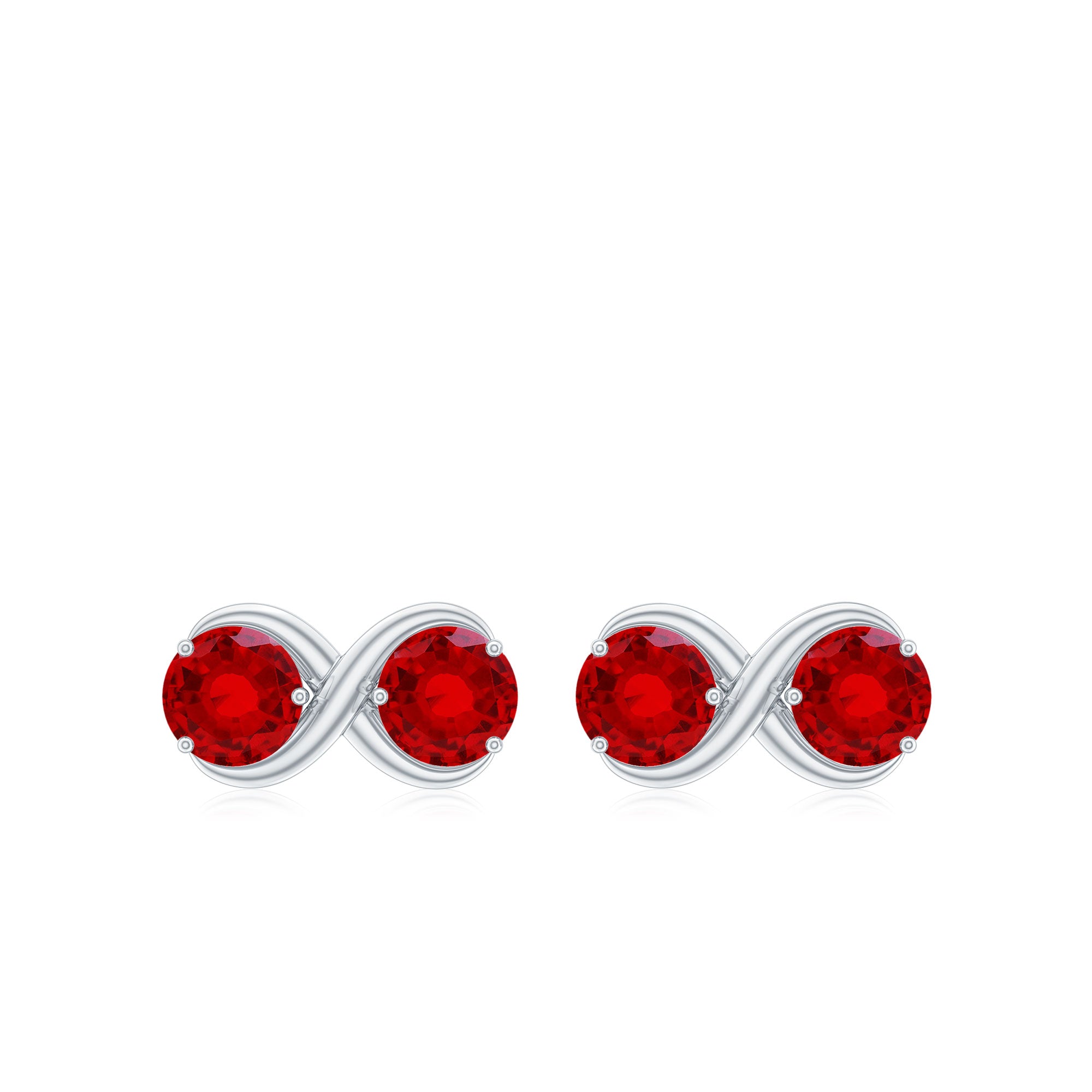 1.50 CT Two Stone Infinity Stud Earrings with Created Ruby for Women