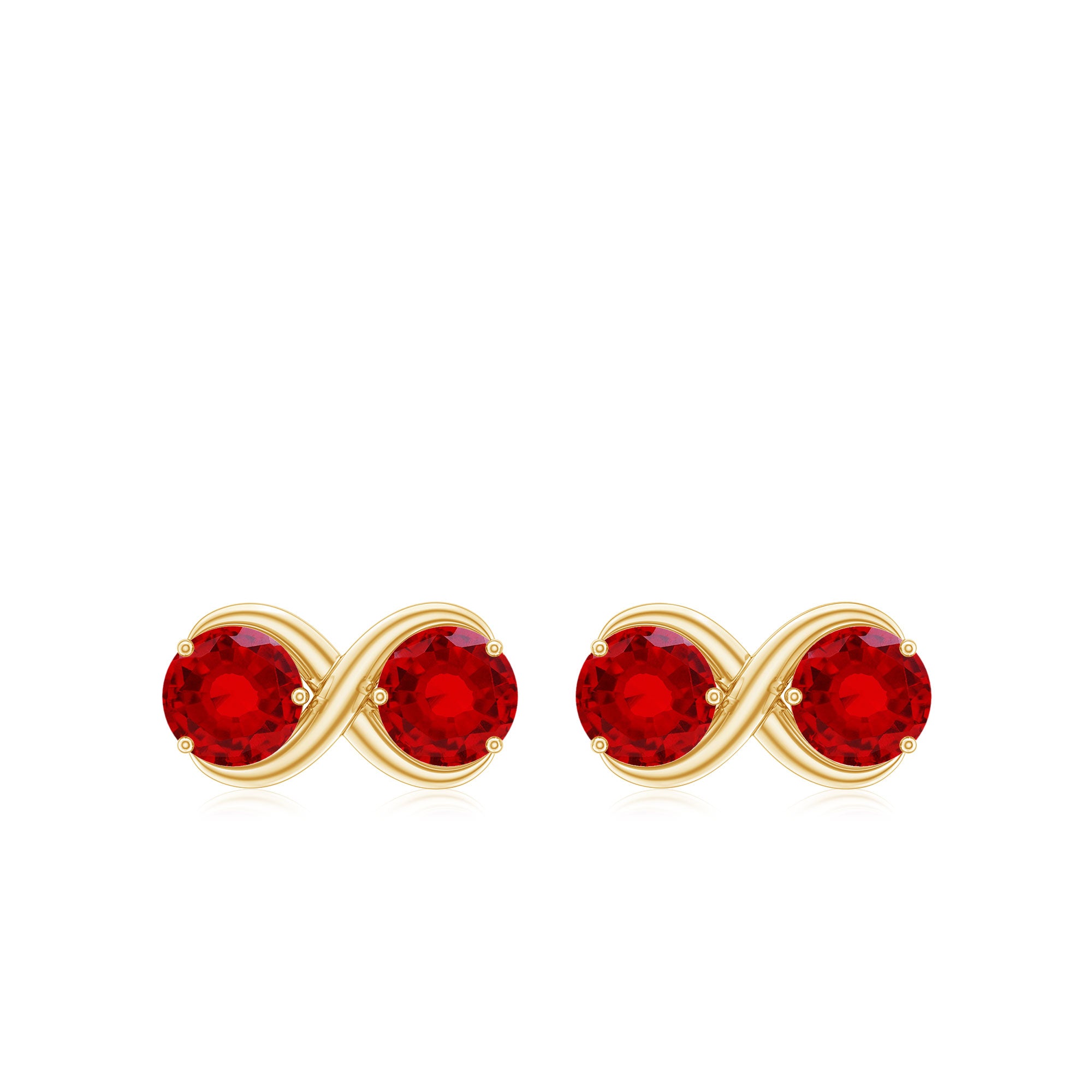Look stunning as ever in our Two Stone Stud Earrings for Women adorned in Gold featuring Round Cut Created Ruby embellished in Prong Setting. It is also known as Infinity Stud Earrings.