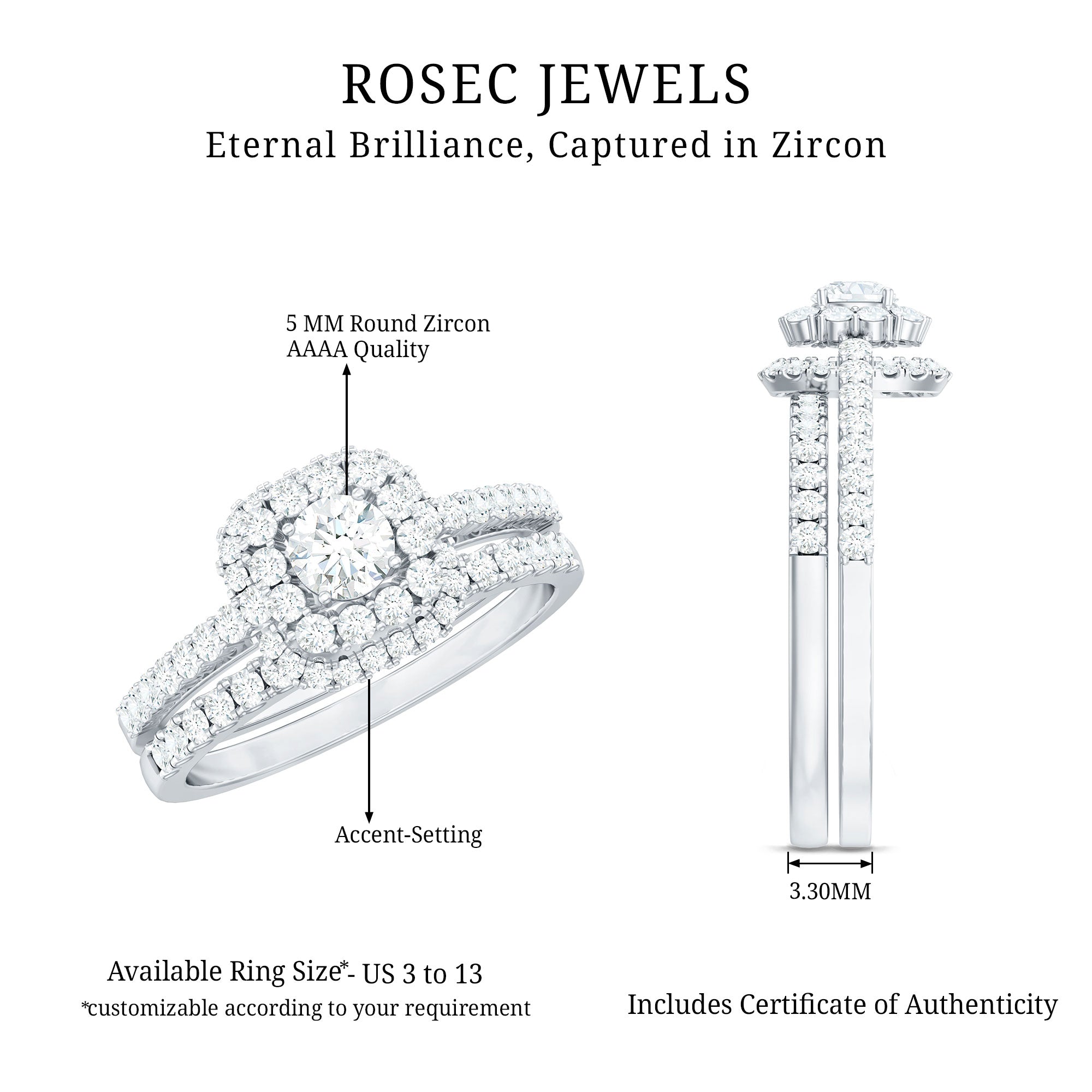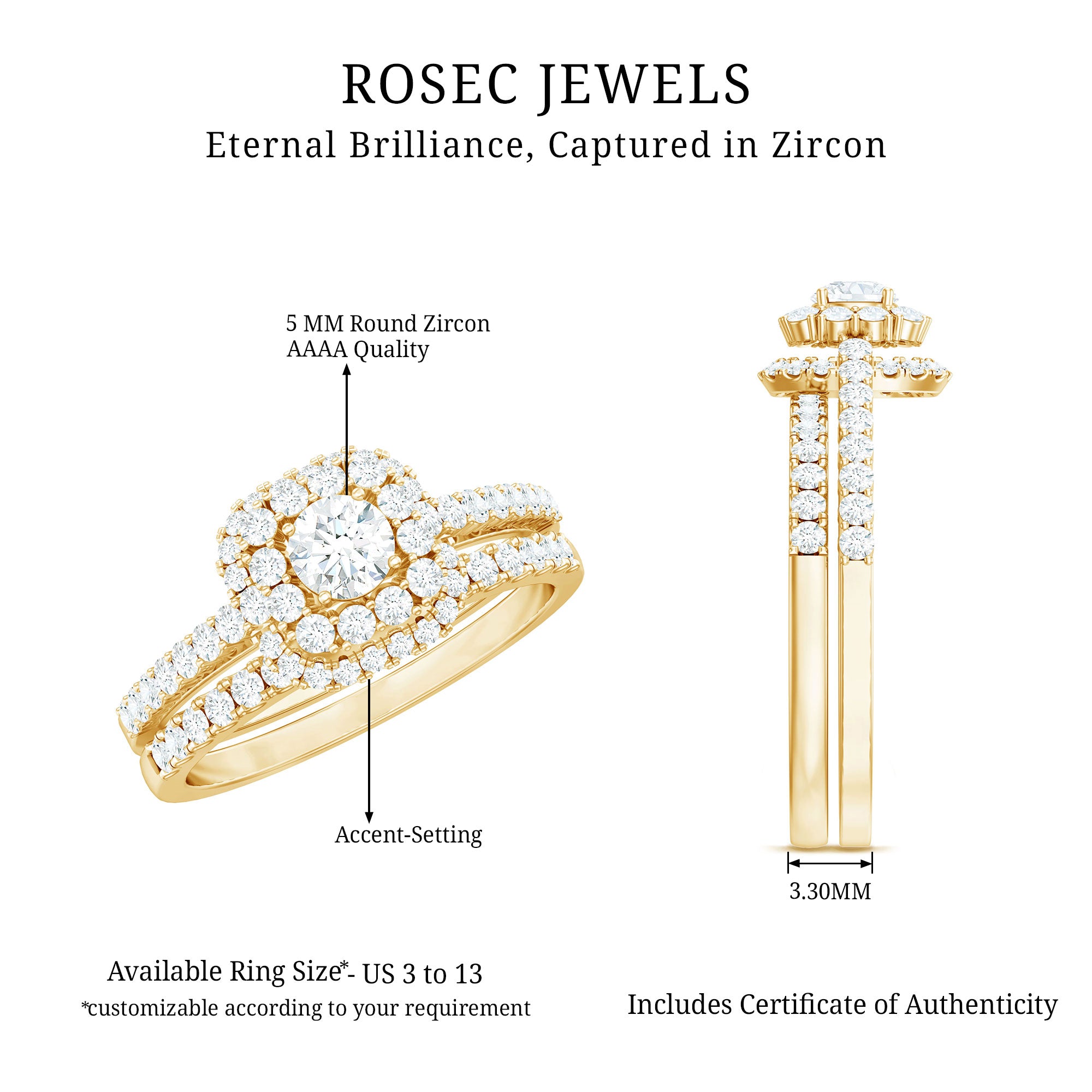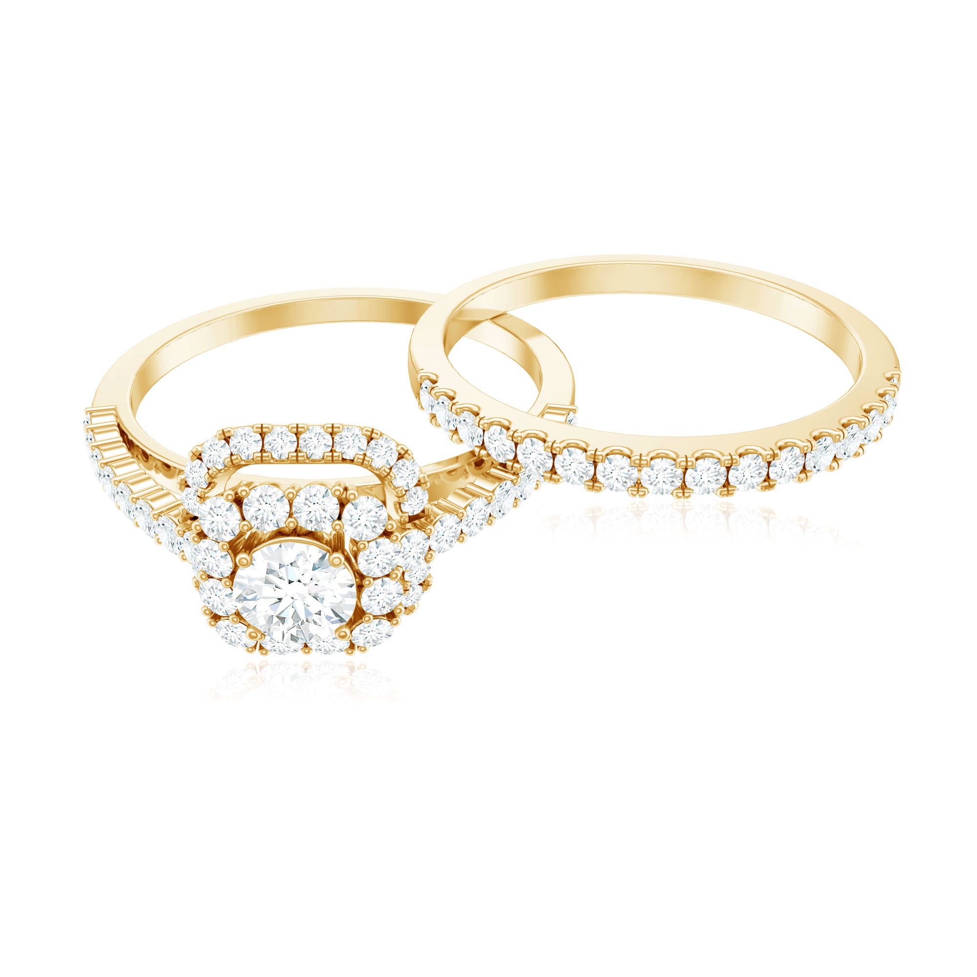 Embrace a trendy eye-catching look on your special day by wearing this elegant Statement Wedding Ring Set embellished with Round Cut Zircon in Prong Setting. Crafted with Solid Gold, this Zircon Wedding Ring Set will give you a mesmerizing look.