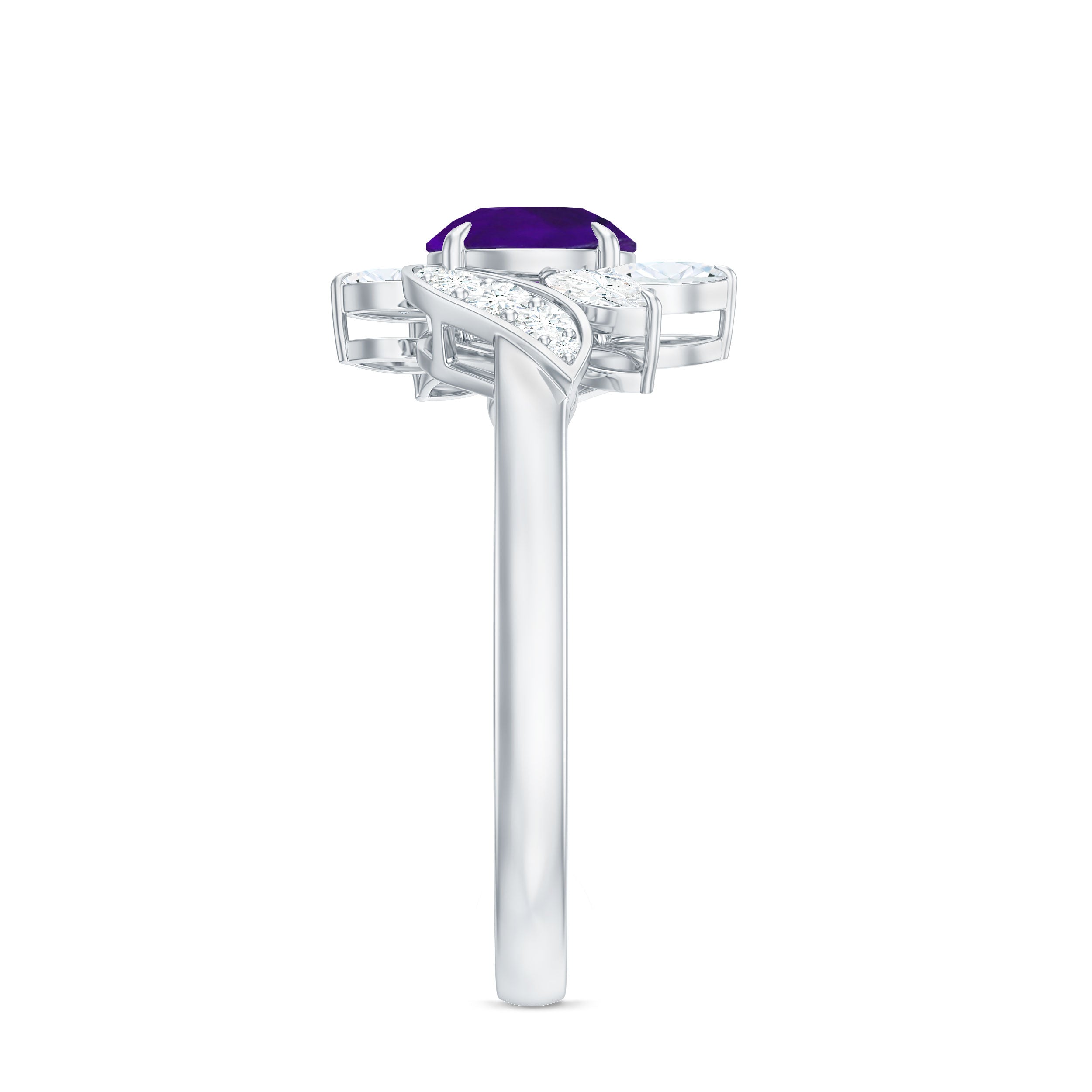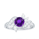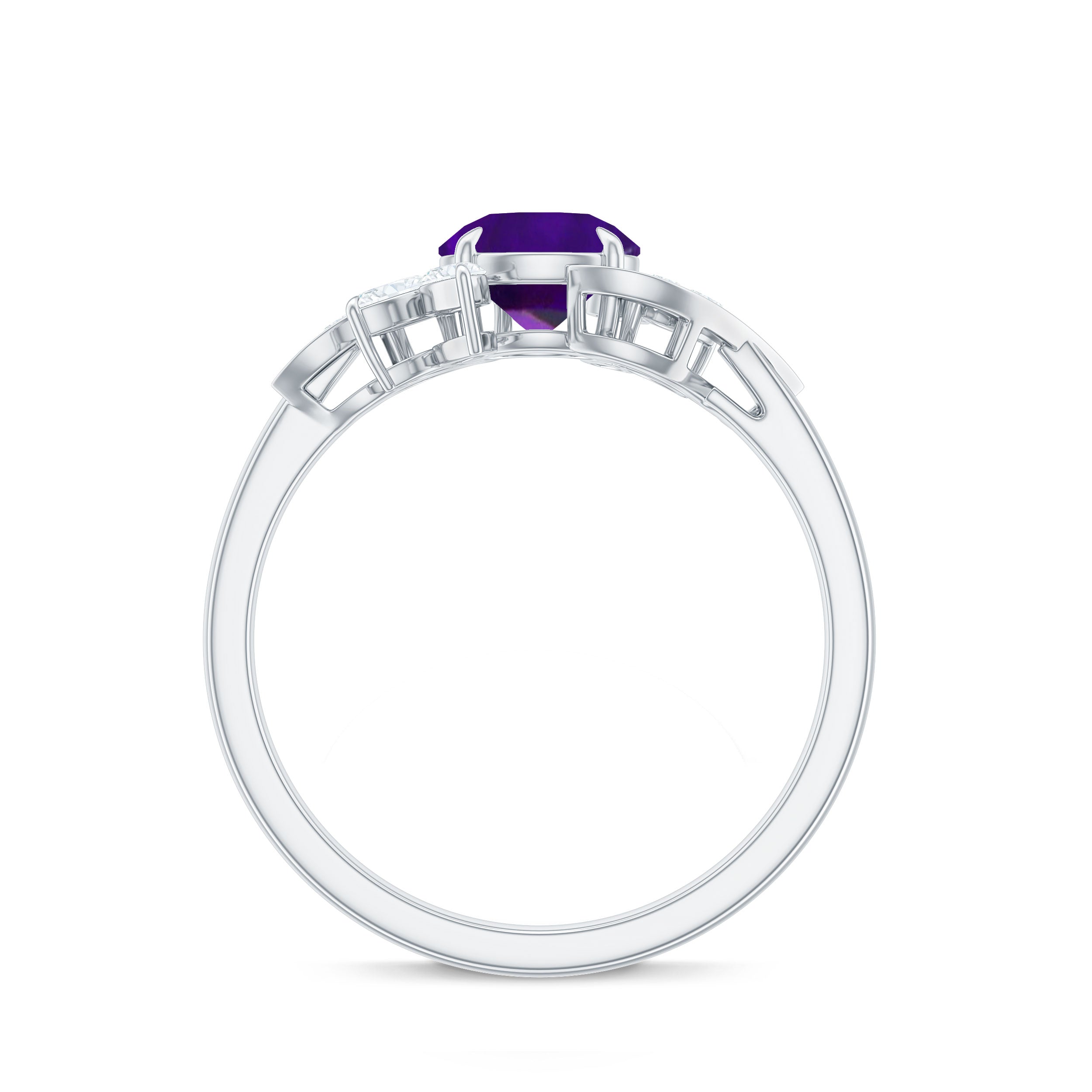 1.75 CT Amethyst Floral Engagement Ring with Diamond Accent