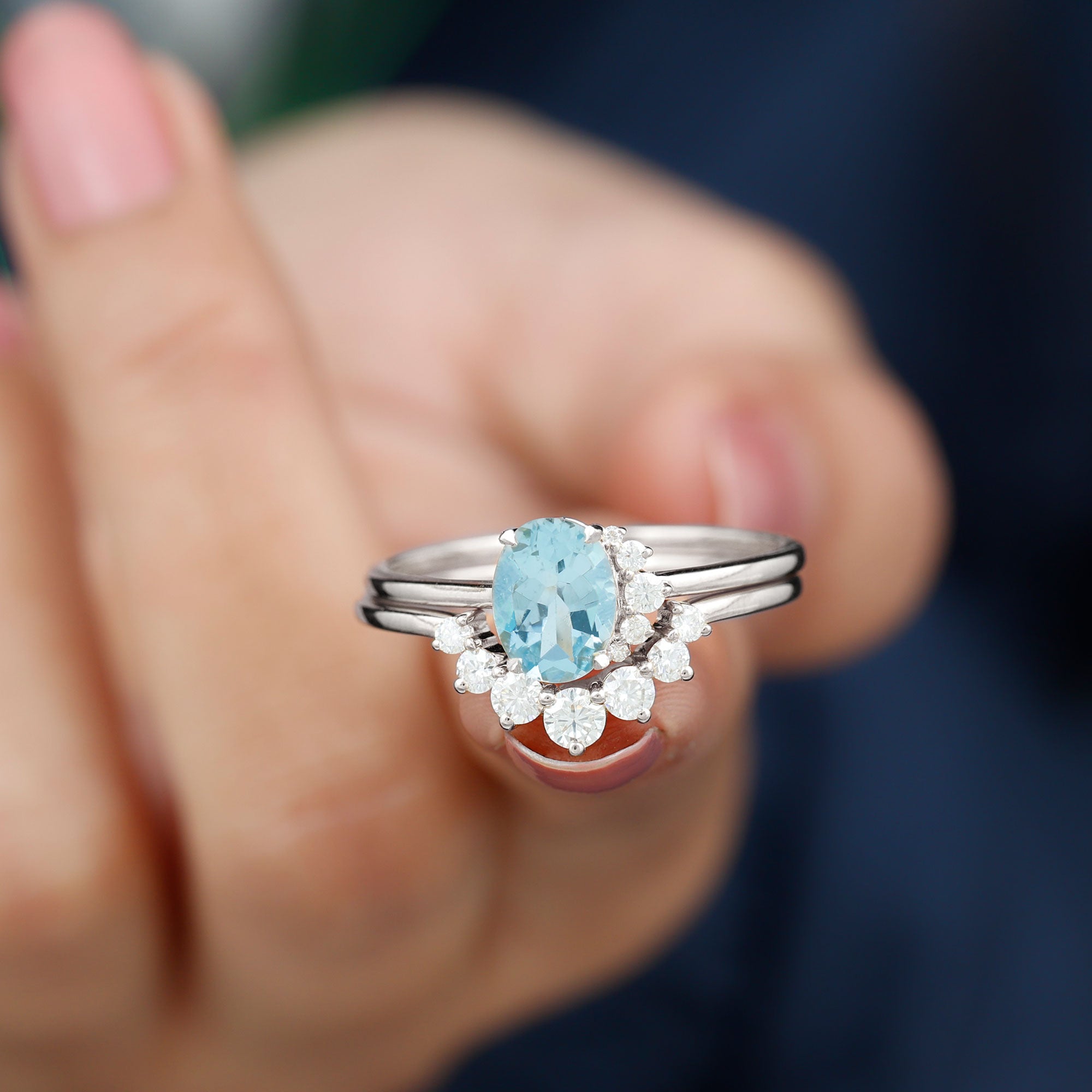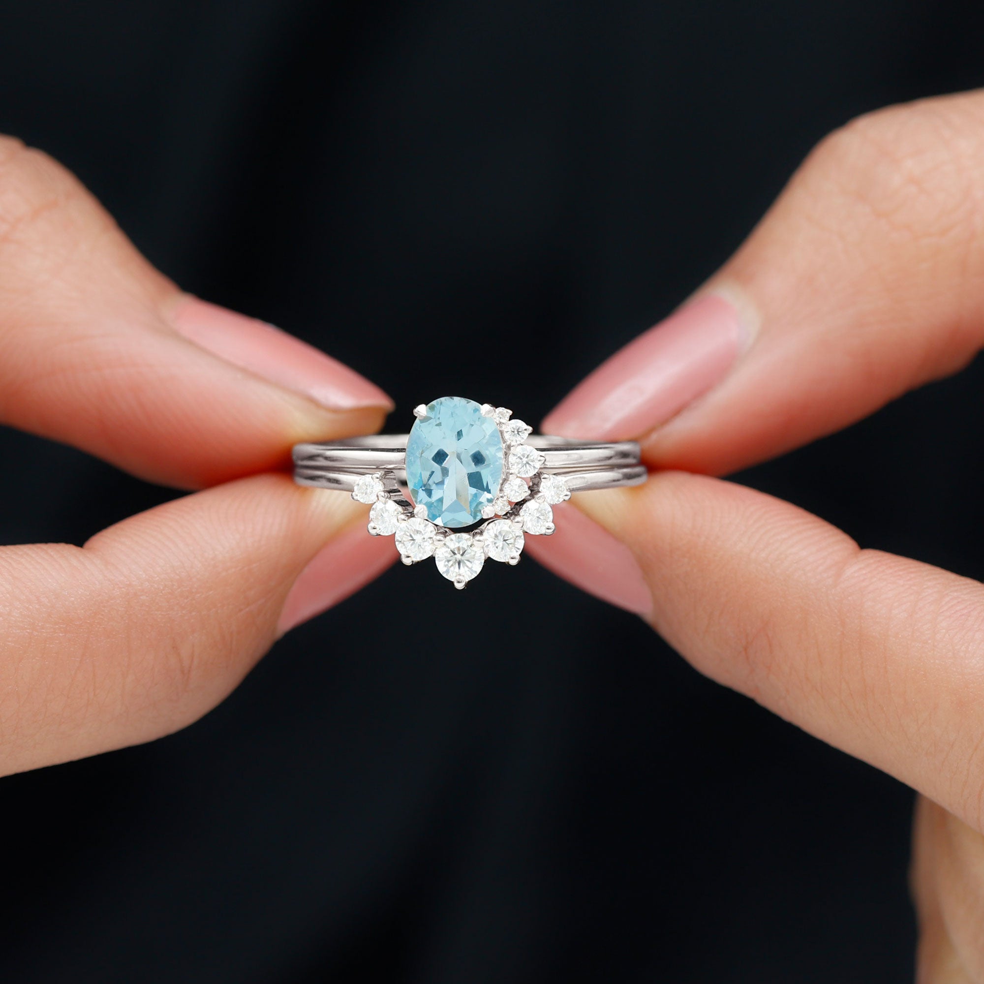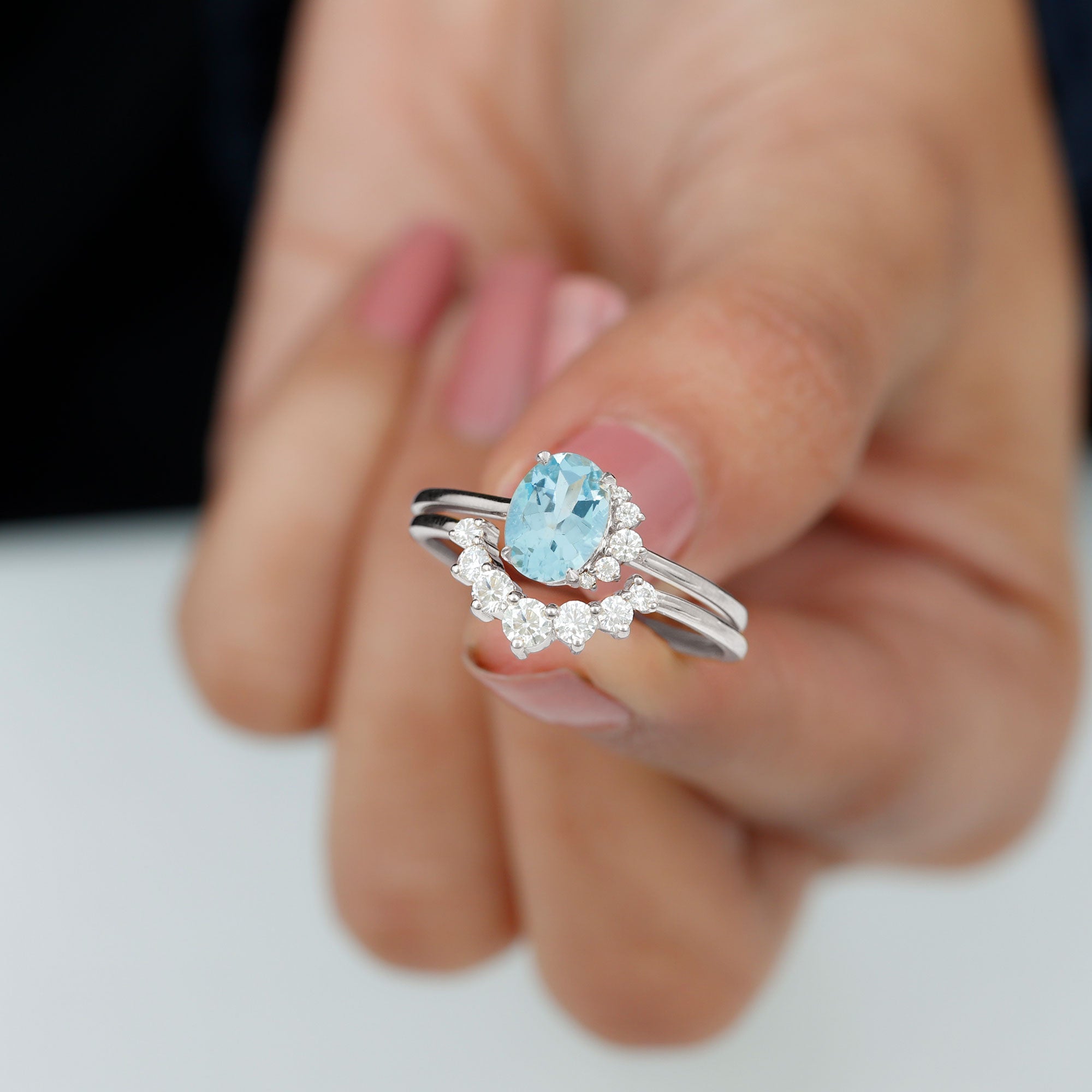 1.75 CT Aquamarine and Diamond Engagement Enhancer Ring Set