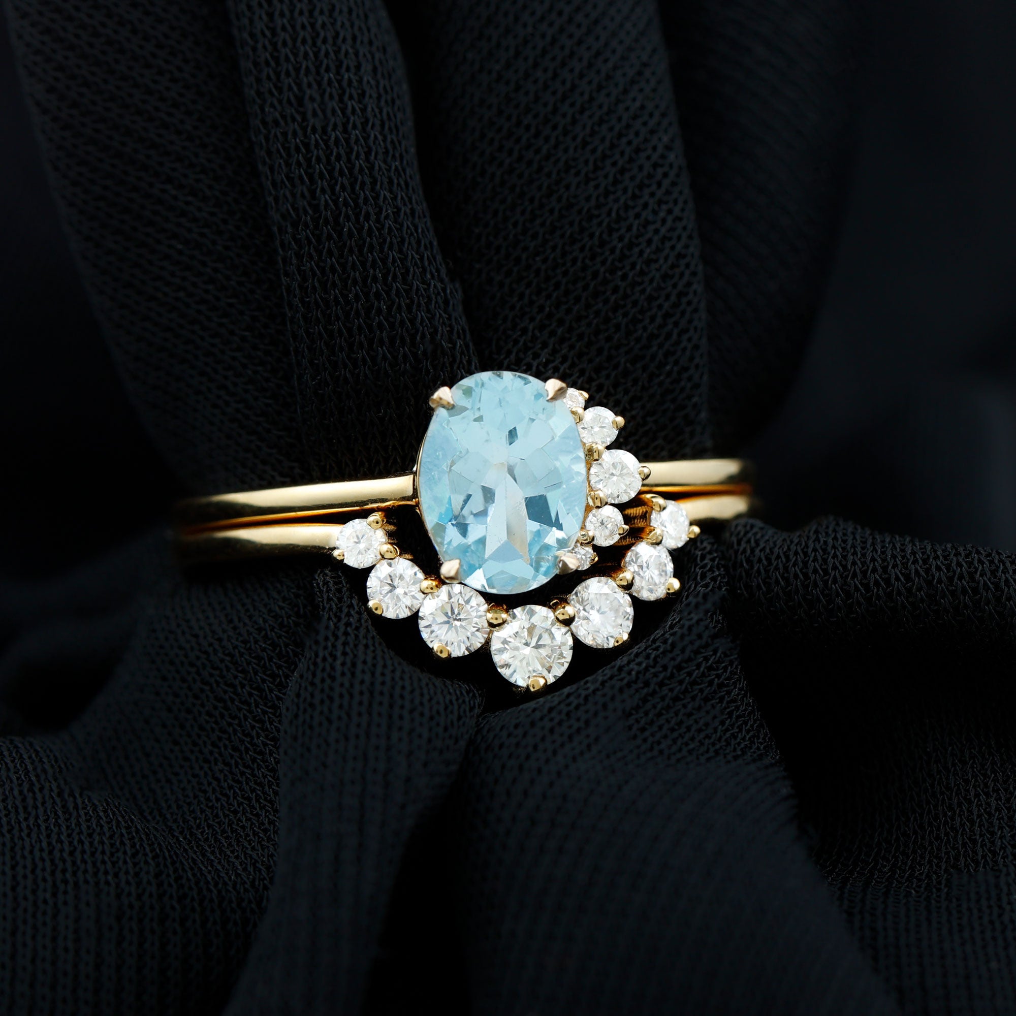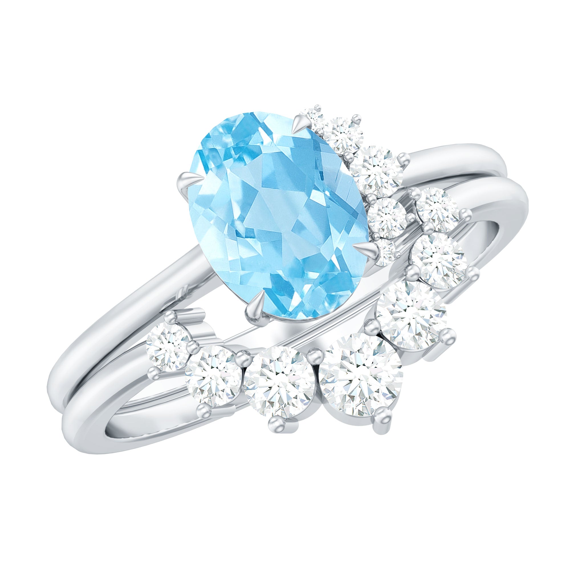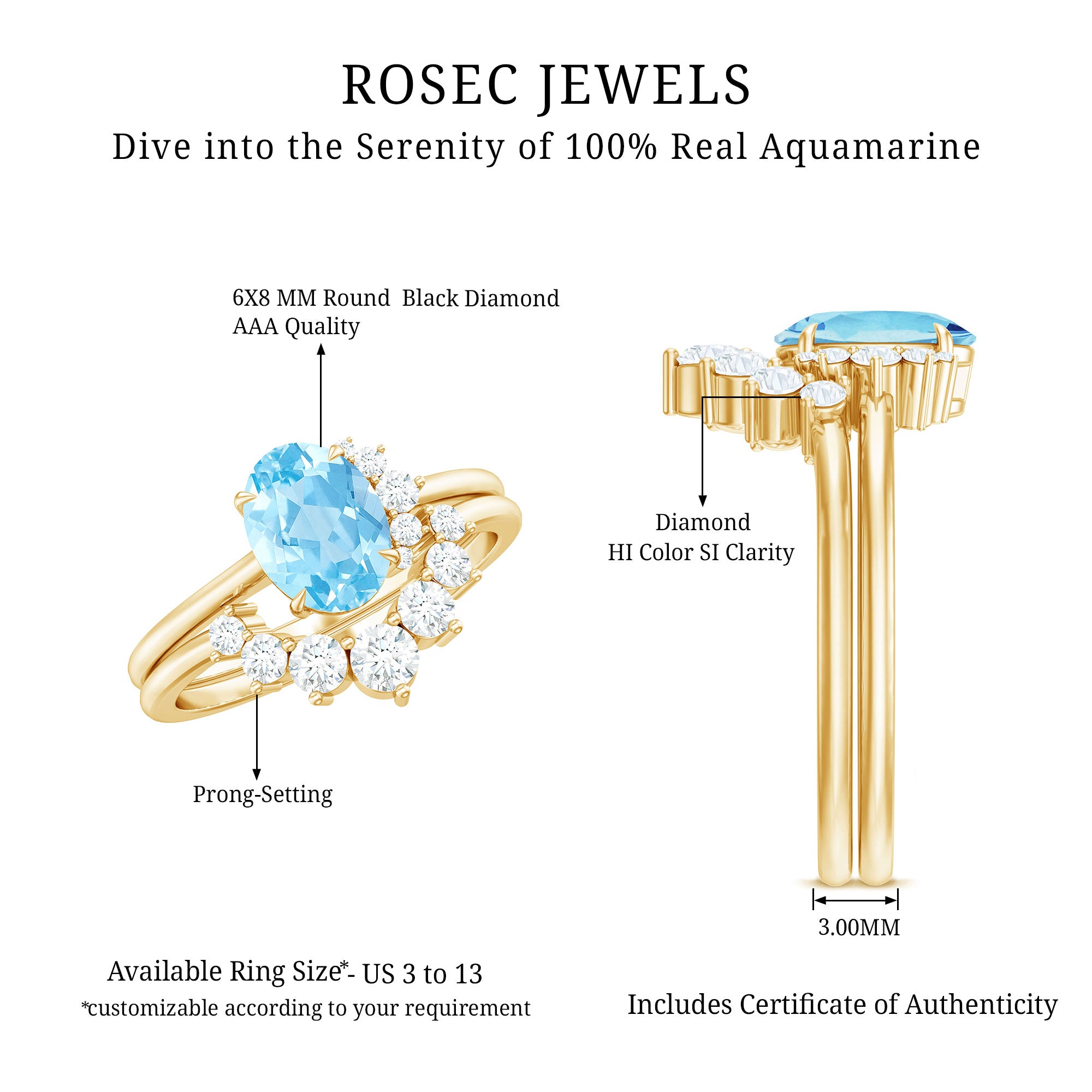 1.75 CT Aquamarine and Diamond Engagement Enhancer Ring Set