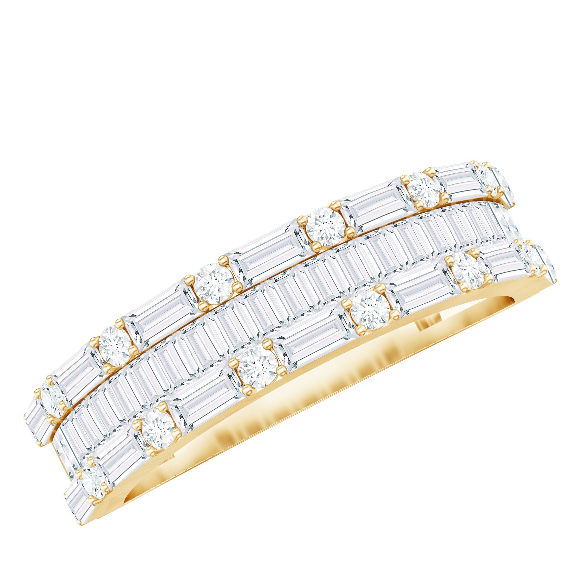 1.75 CT Baguette and Round Zircon Wedding Band in Gold