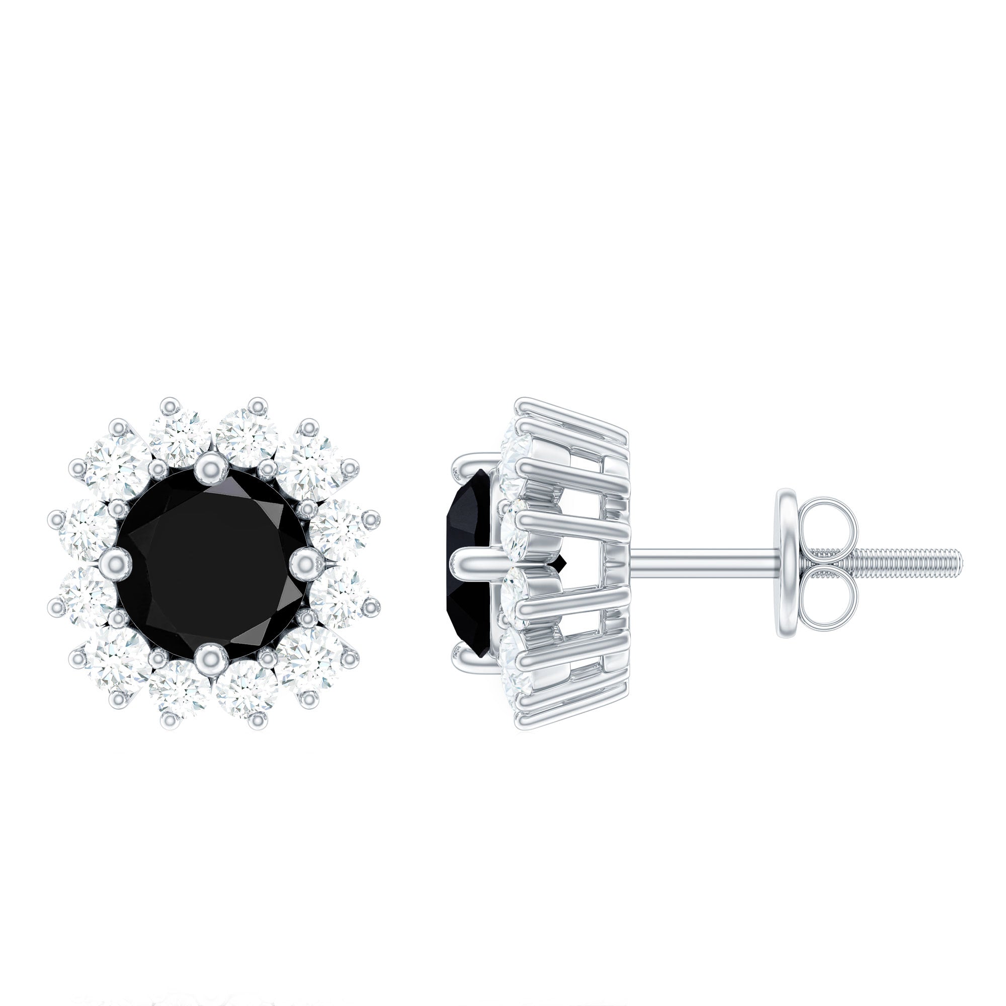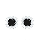 Certified Natural Black Onyx Stud Earrings with Diamond Halo