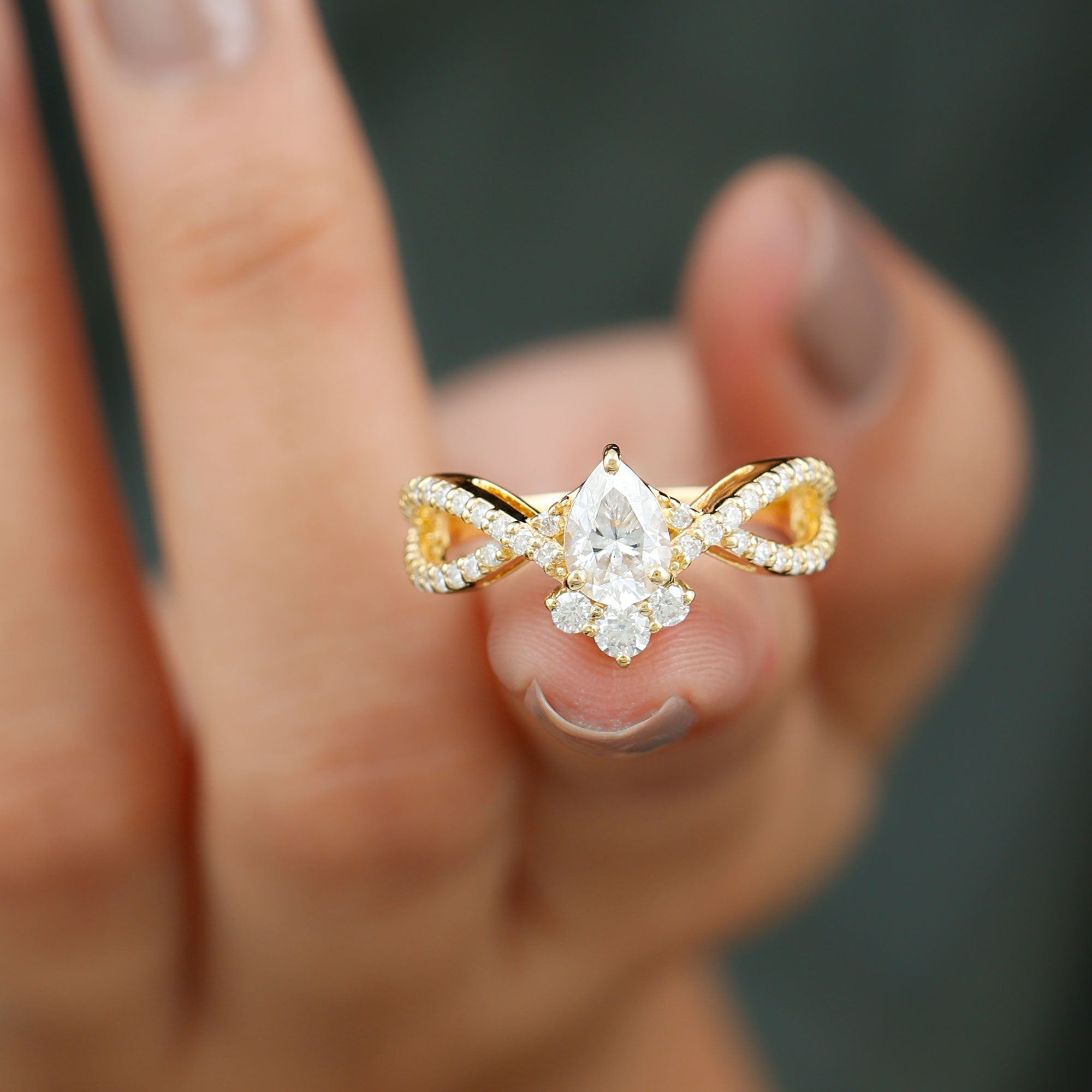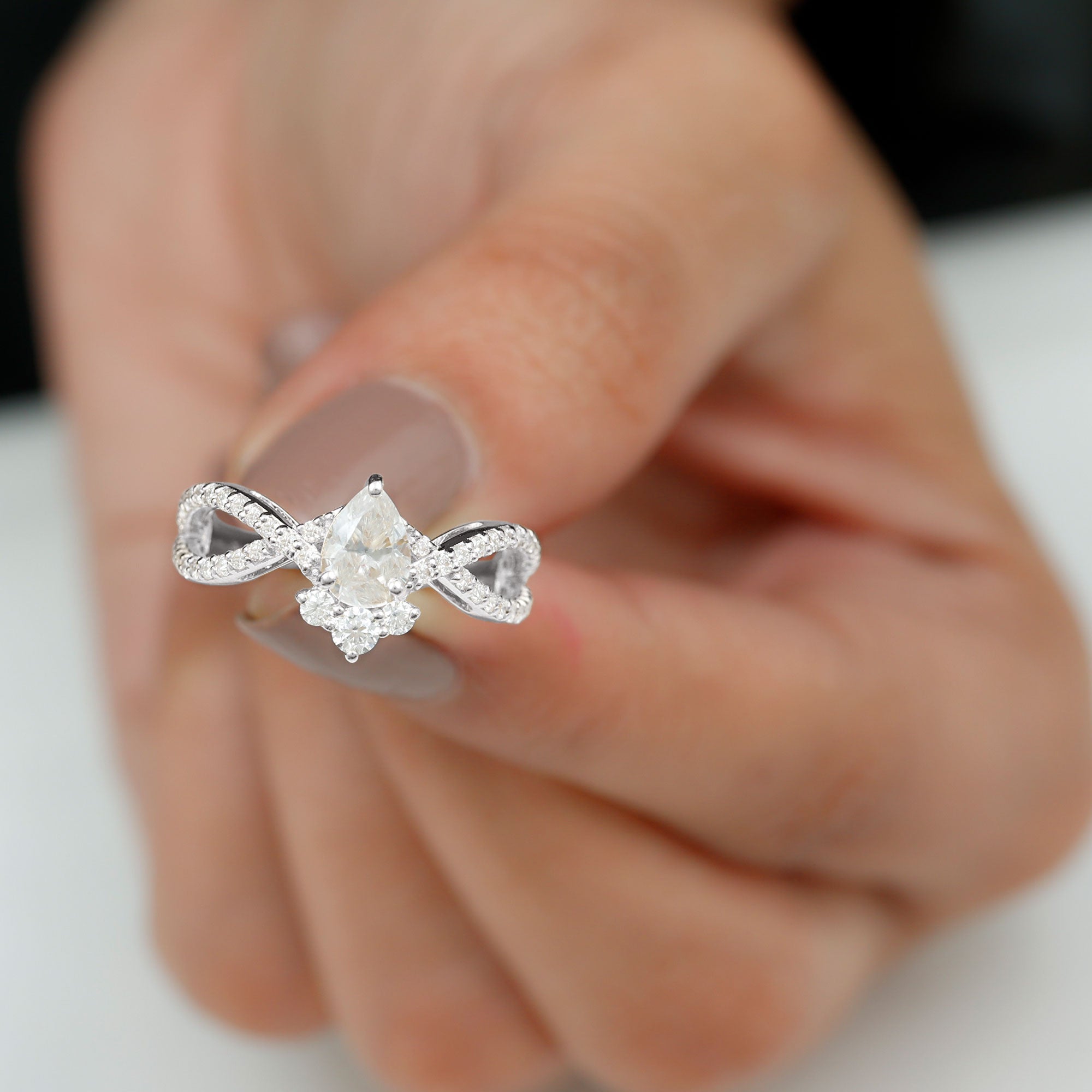 Designer Pear Shaped Moissanite Crossover Engagement Ring