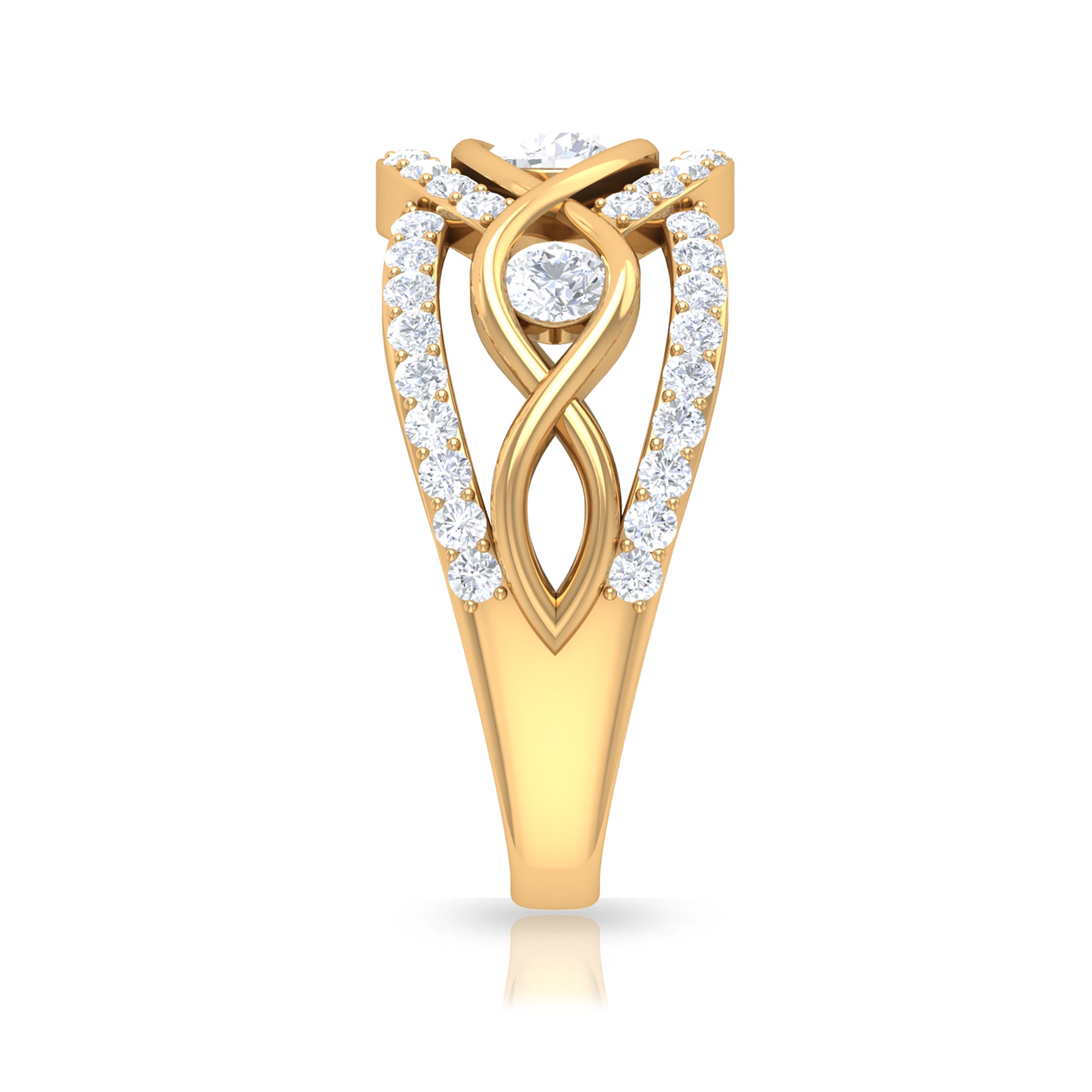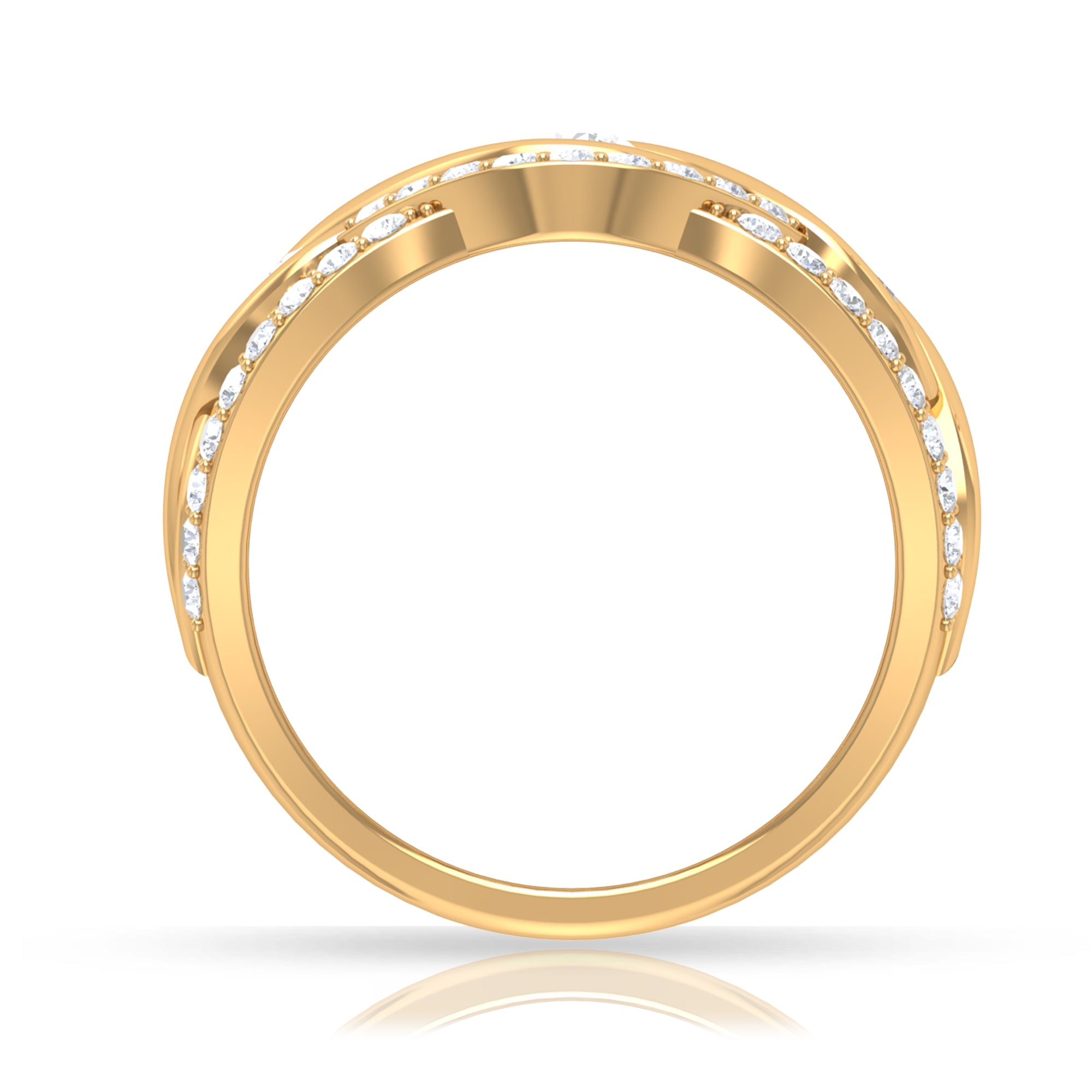 Grab this Round Shape Diamond Wedding Band Infinity Ring in Accent Setting to bless her this Wedding Season. This 3 Stone Ring is made with Solid Gold Metal Finish.