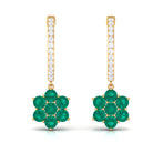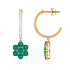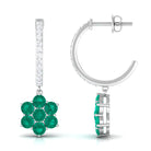 Natural Emerald Flower Drop Earrings with Diamond Hoop