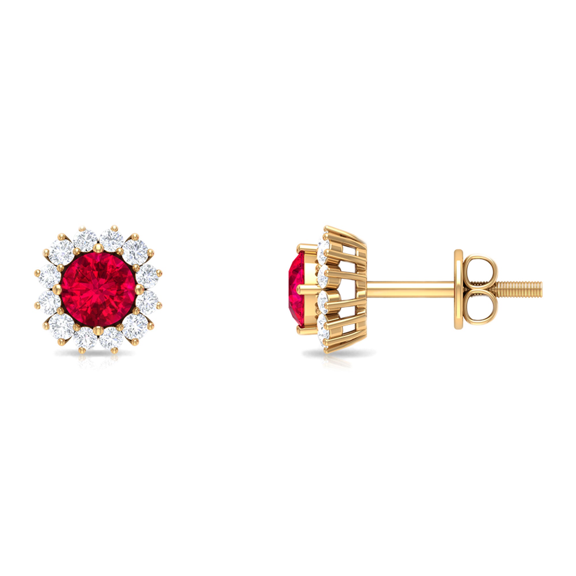 1.75 CT Lab Created Ruby Classic Stud Earring with Diamond Halo
