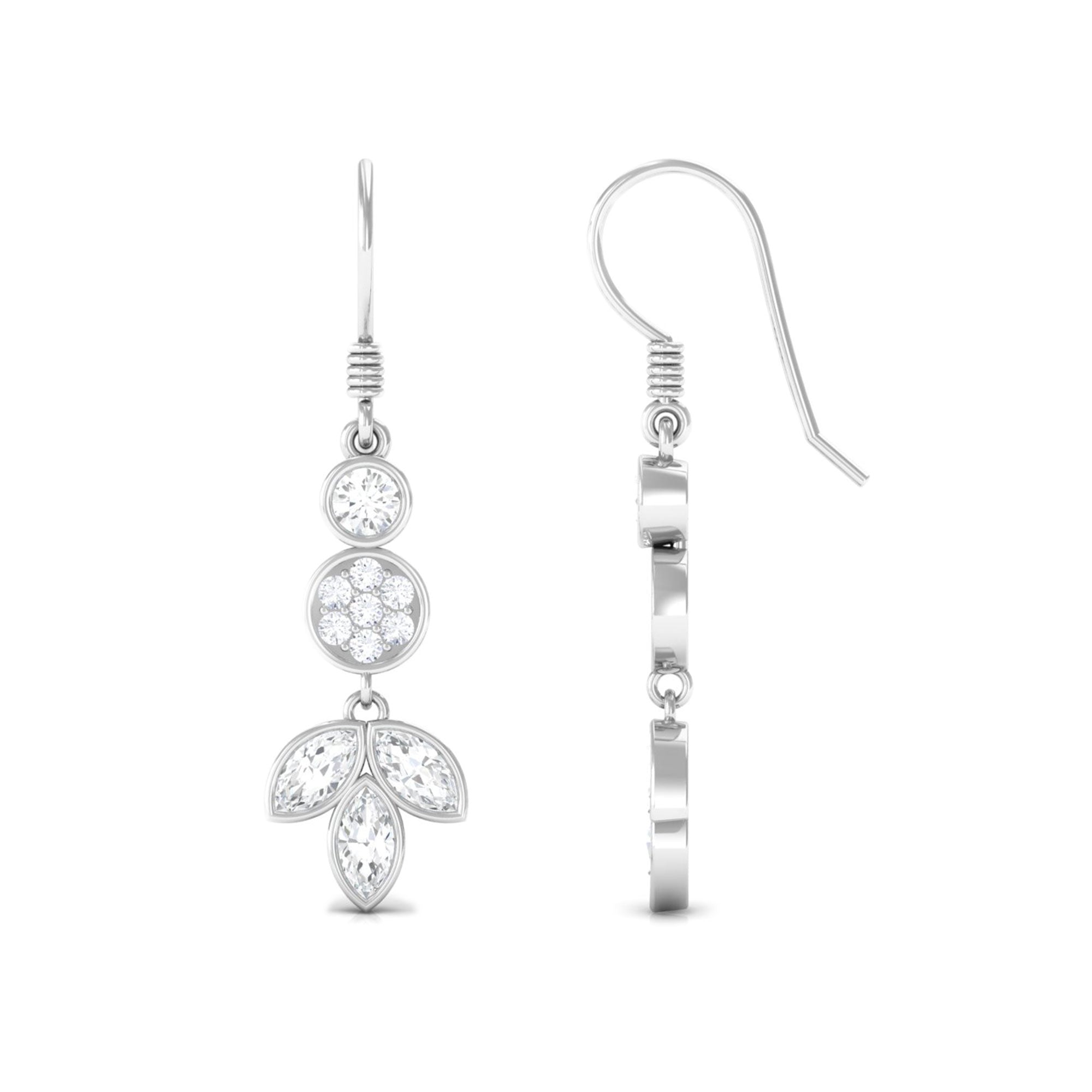 1.75 CT Marquise and Round Cut Moissanite Leaf Dangle Earrings