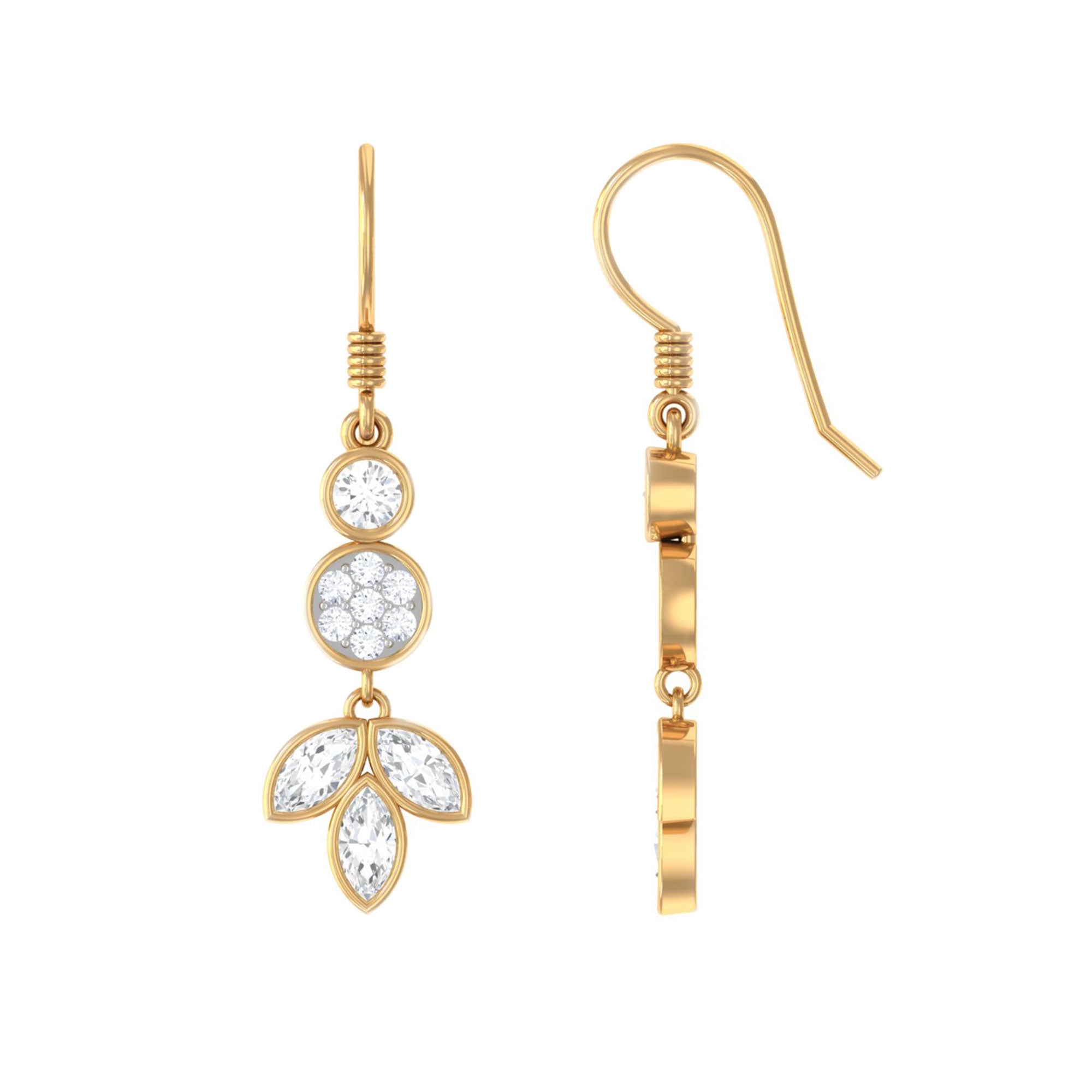 Elevate your everyday look with these Minimal Dangle Earrings, showcasing the beauty of sparkling gemstones. These Moissanite earrings feature captivating round cut and marquise-shaped moissanite arranged in dangles. Crafted from solid gold, these moissanite earrings are a must-have accessory to enhance your natural radiance and warmth.