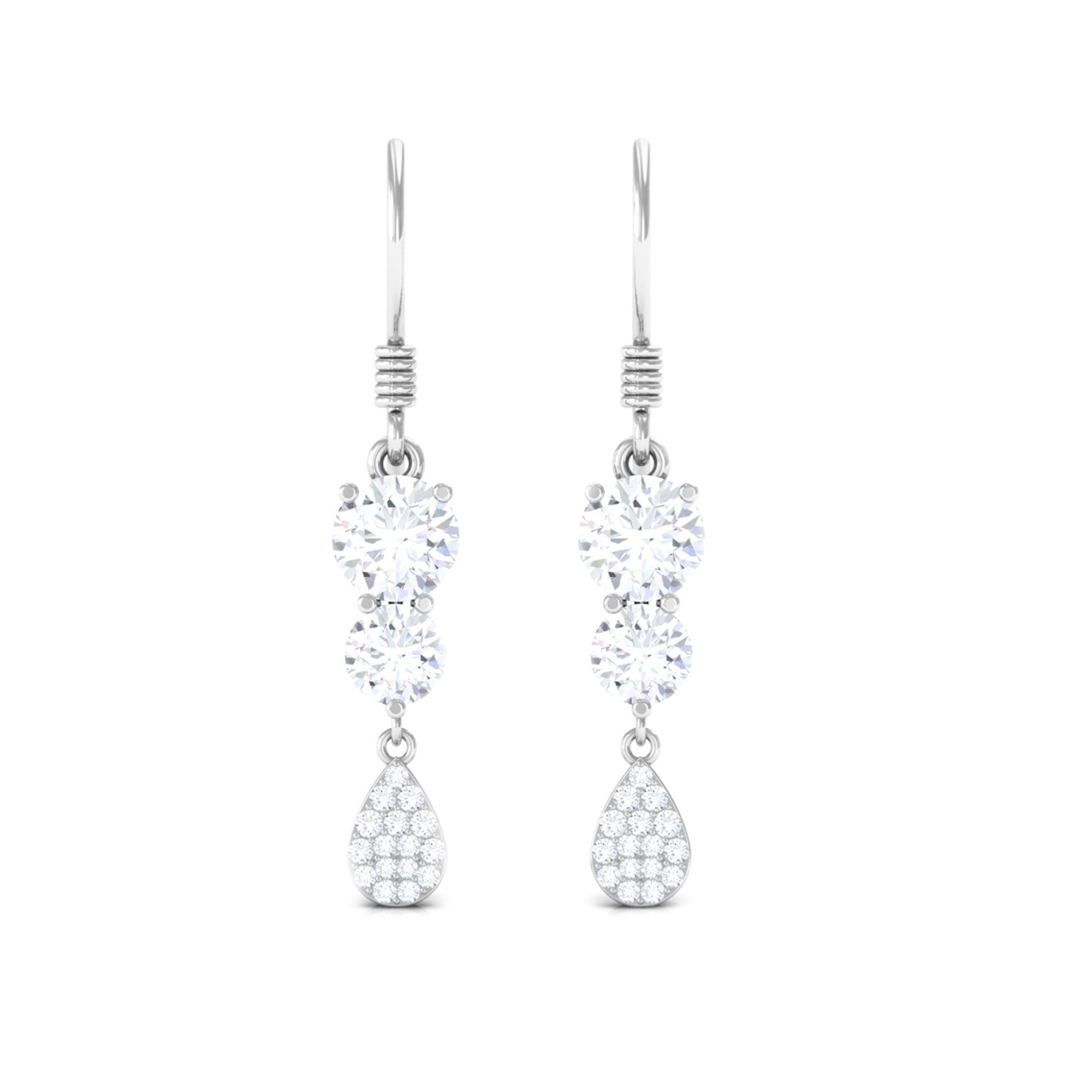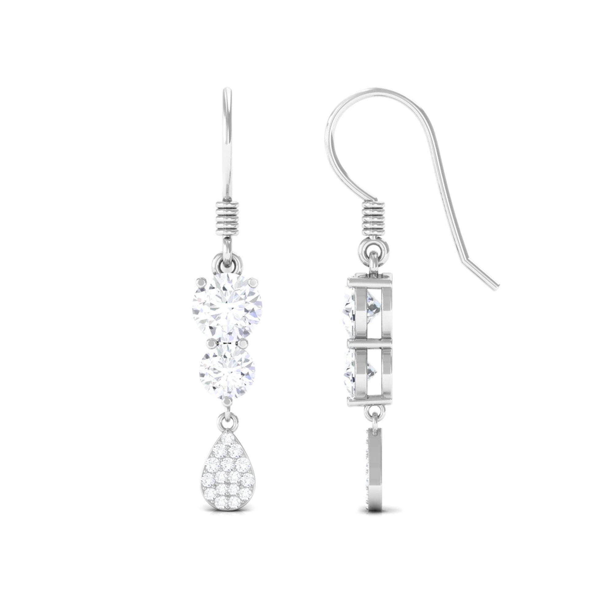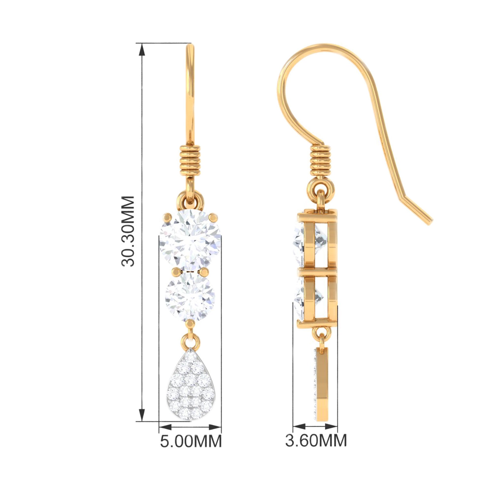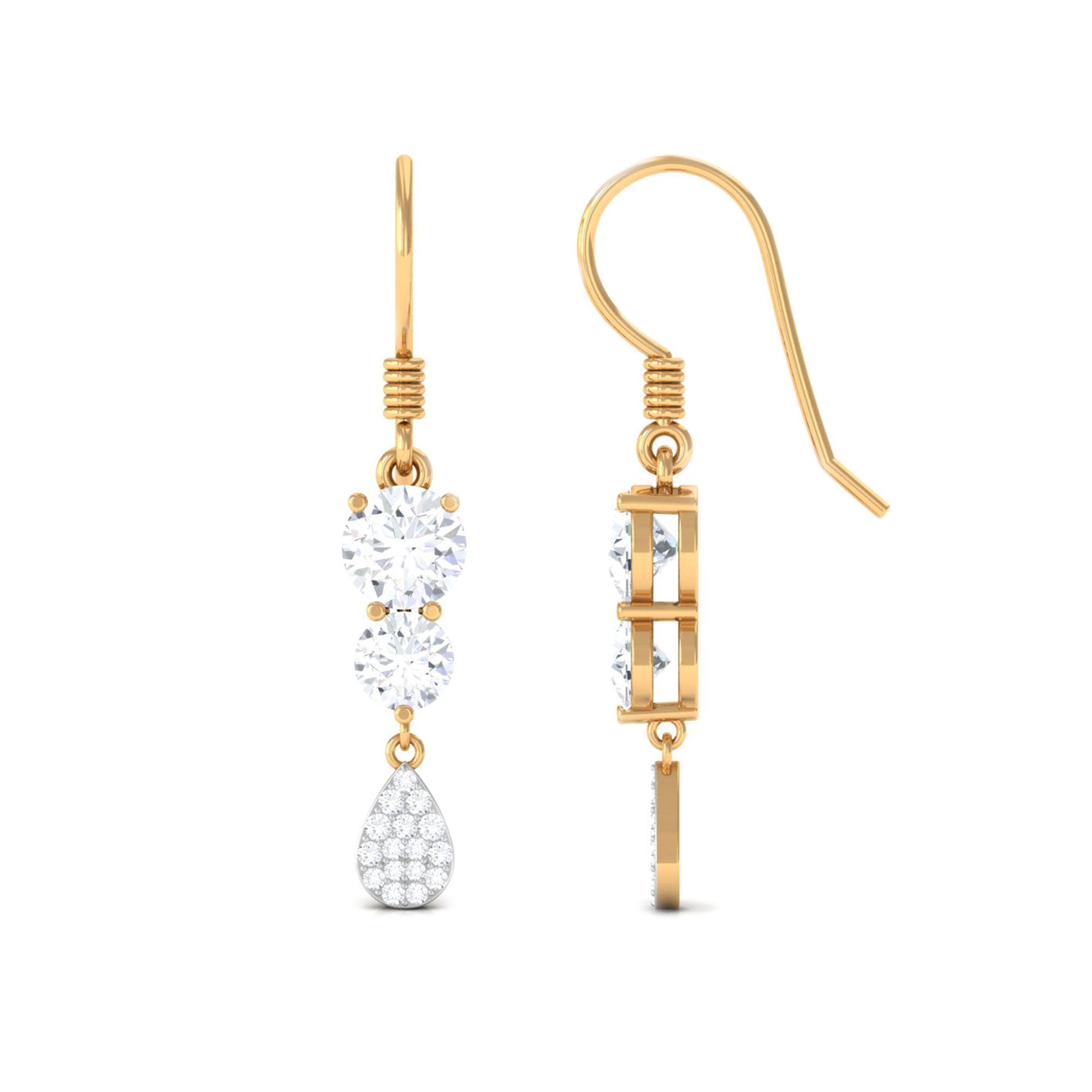Add a touch of sparkle and shine to your everyday look with these Minimal Dangle Earrings. These Moissanite earrings showcase round-cut Moissanite stones arranged in a dangle style, complemented by delicate more dainty round Moissanite stones on the pear shape. Crafted from solid gold, these Moissanite dangle earrings are a must-have accessory that will enhance your radiance and warmth.