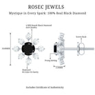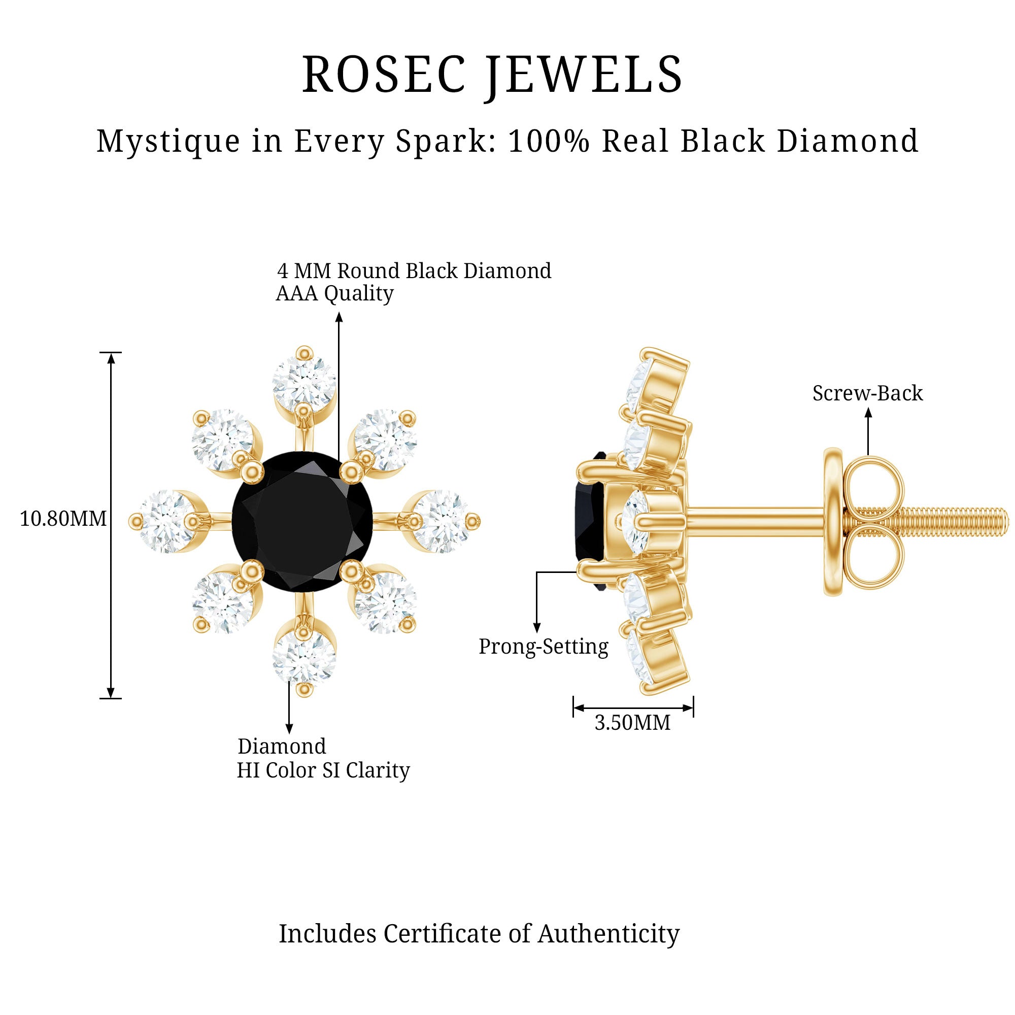 1.75 CT Natural Black Diamond and Diamond Flower Stud Earrings