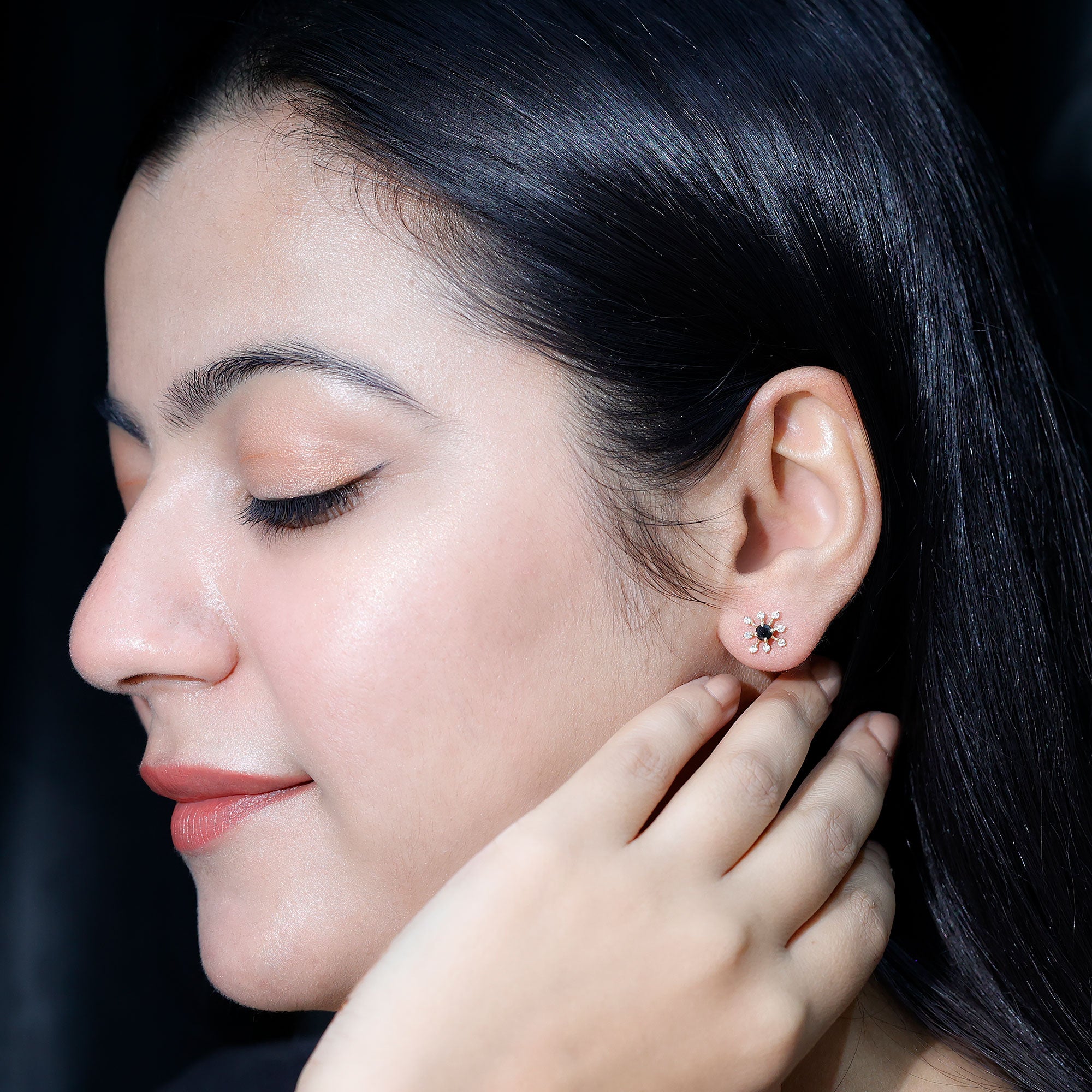 Make a statement with these beautiful Natural black diamond and Diamond Flower Stud Earrings. Featuring natural black diamond and Diamond stones arranged in a delicate flower pattern, these earrings are a unique and stunning piece of jewelry. The Diamond stones are set in a secure setting, ensuring they will sparkle for years to come. The natural black diamond and Diamond stones add a touch of mystery and elegance to the earrings, making them the perfect accessory to complement any outfit. So, add a touch of beauty and charm to your jewelry collection with these Natural black diamond and Diamond Flower Stud Earrings.