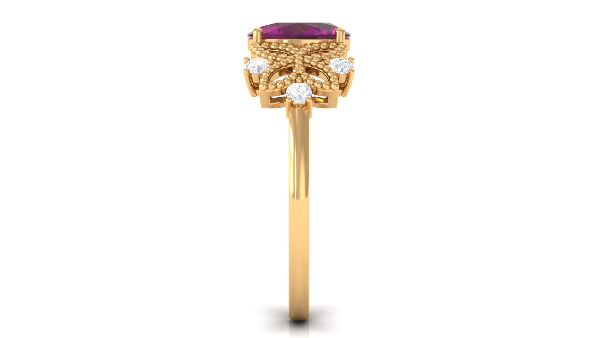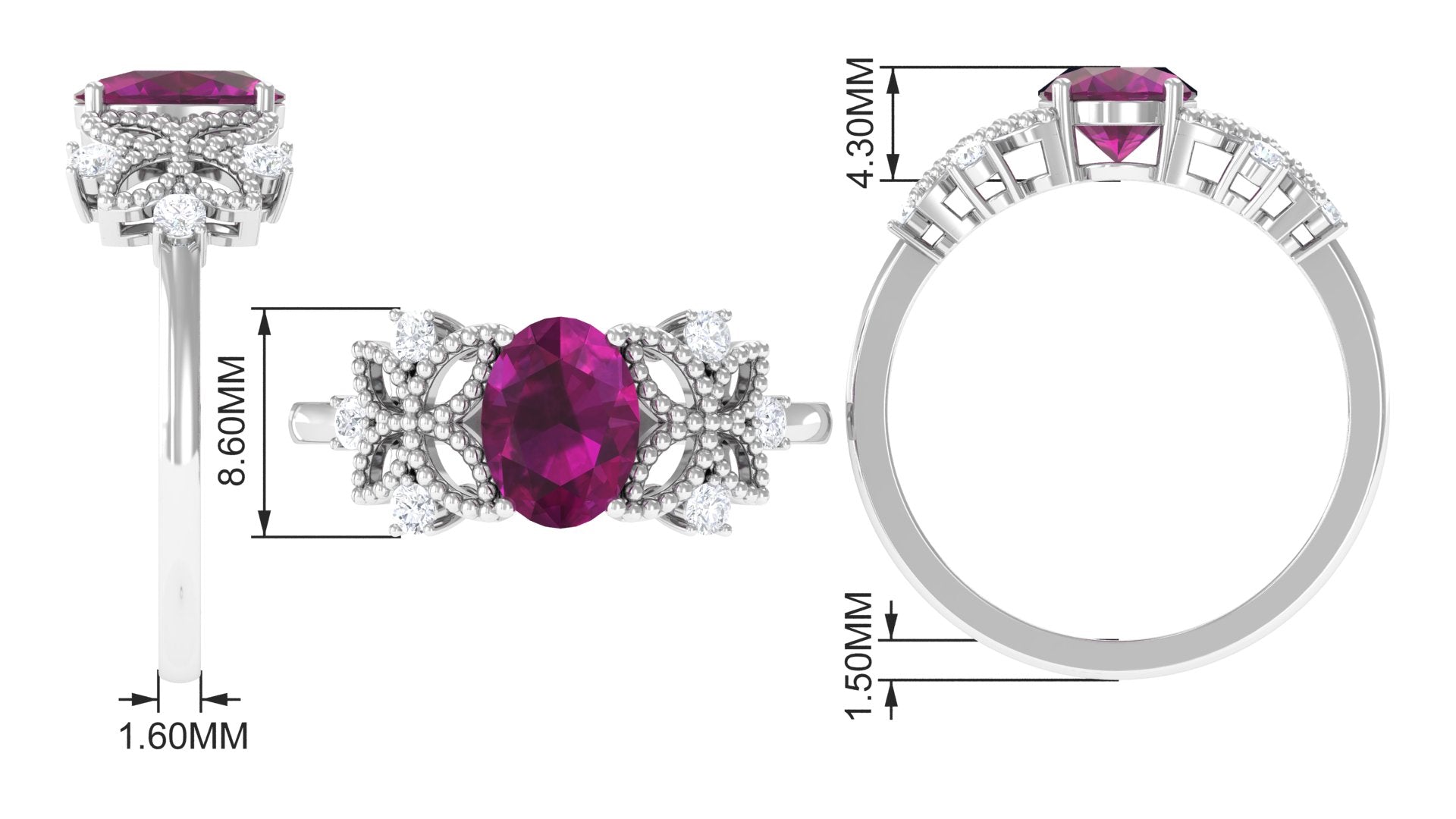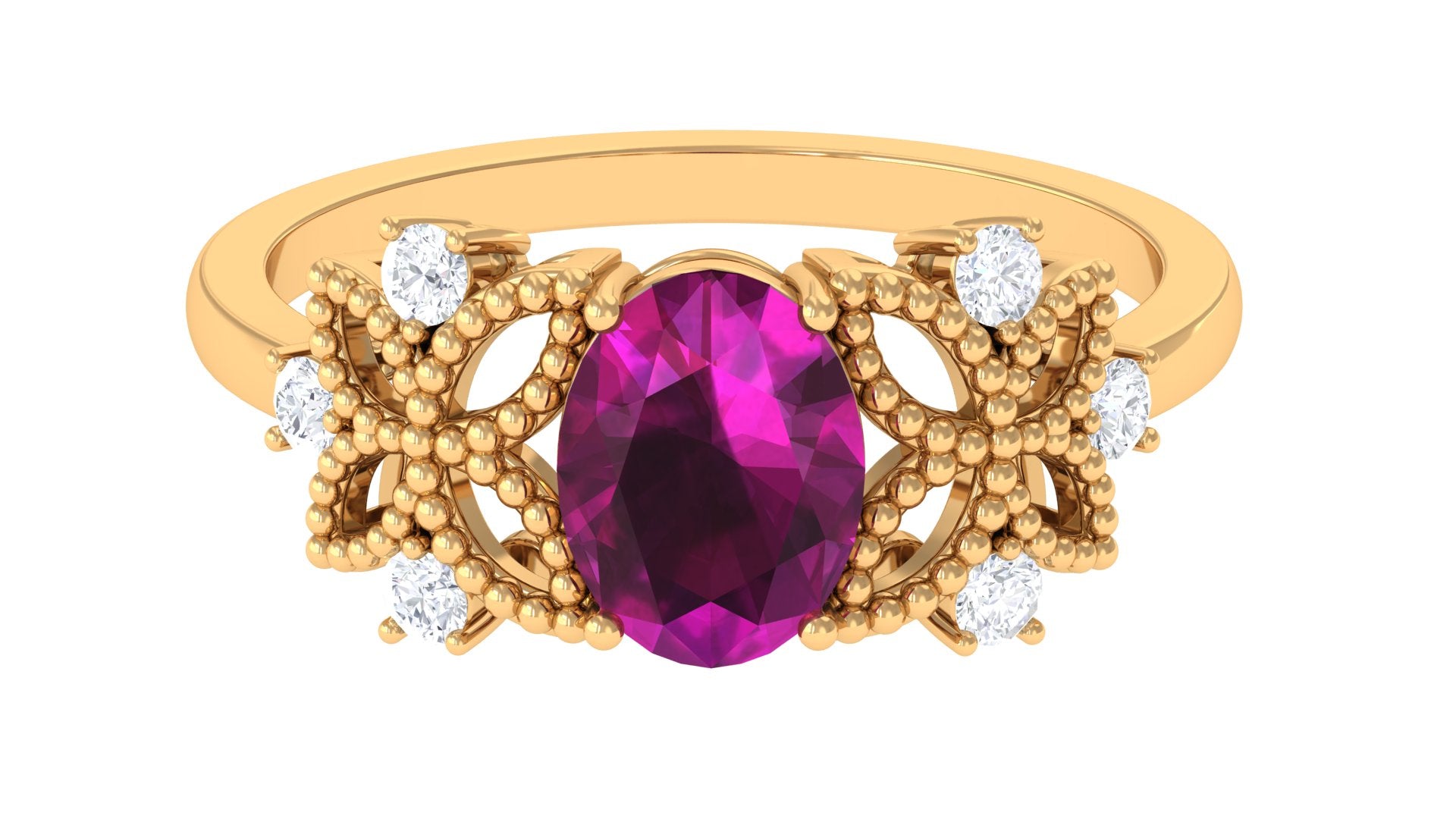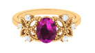 1.75 CT Oval Cut Rhodolite Solitaire Floral Ring with Diamond