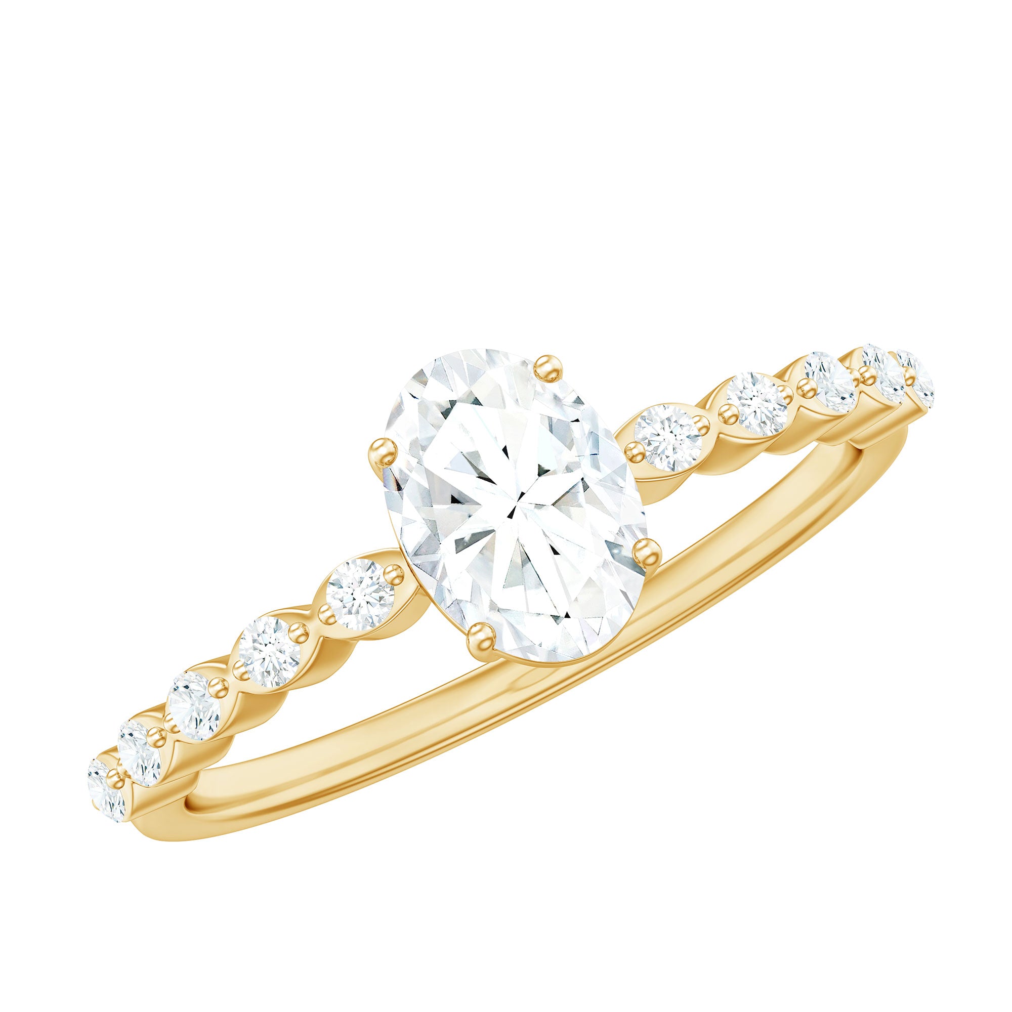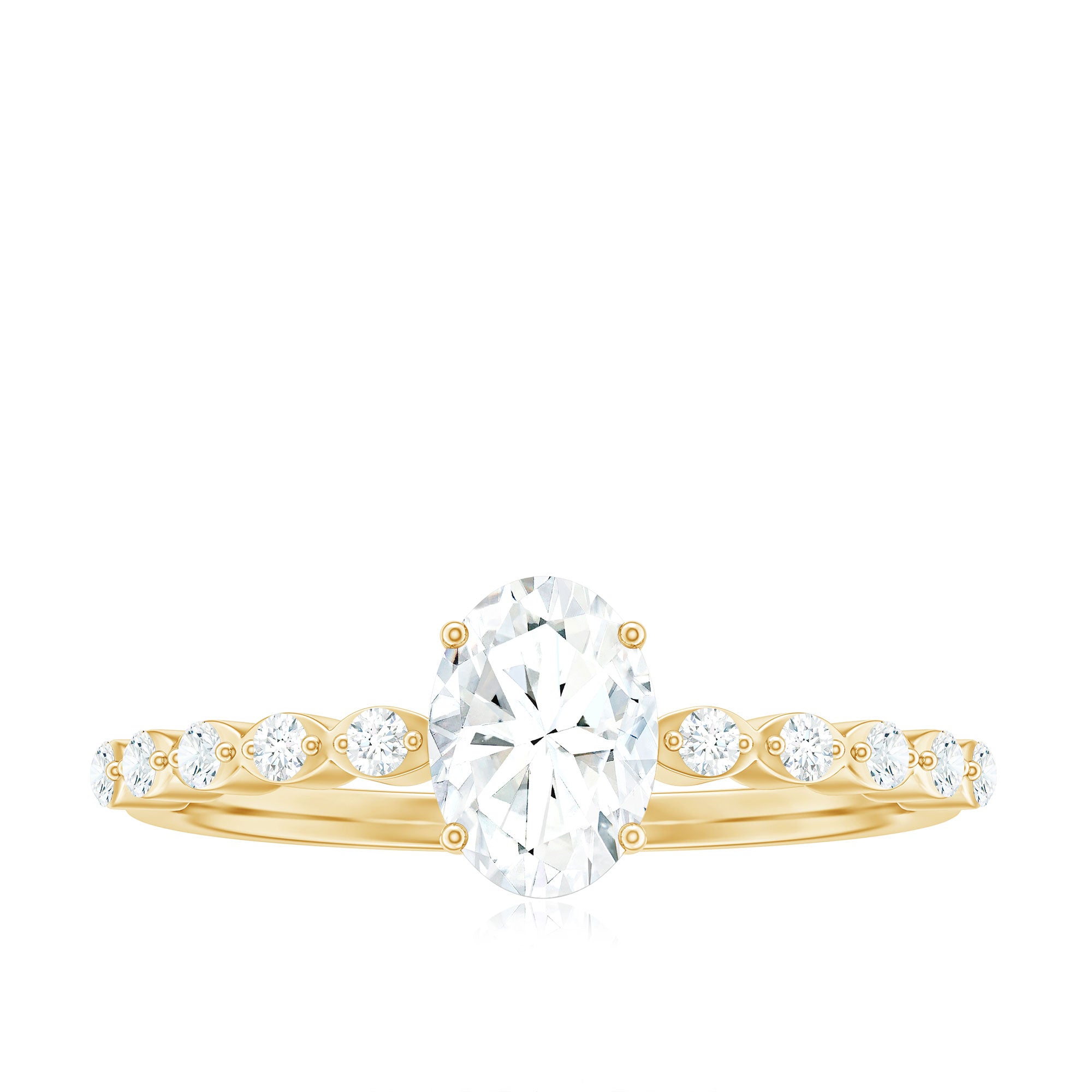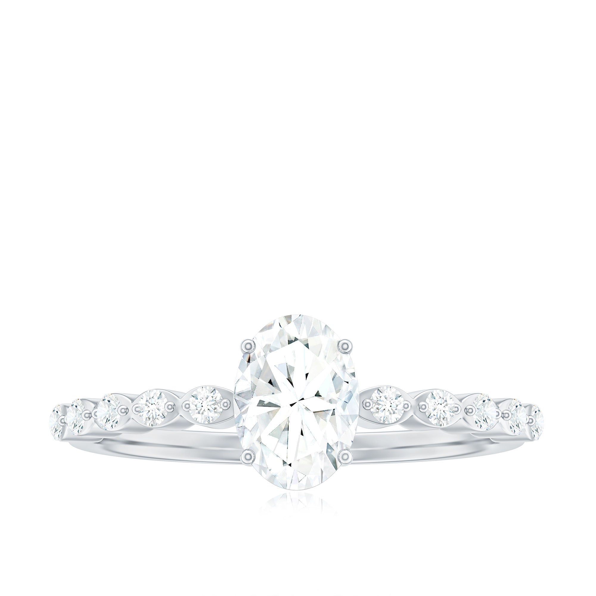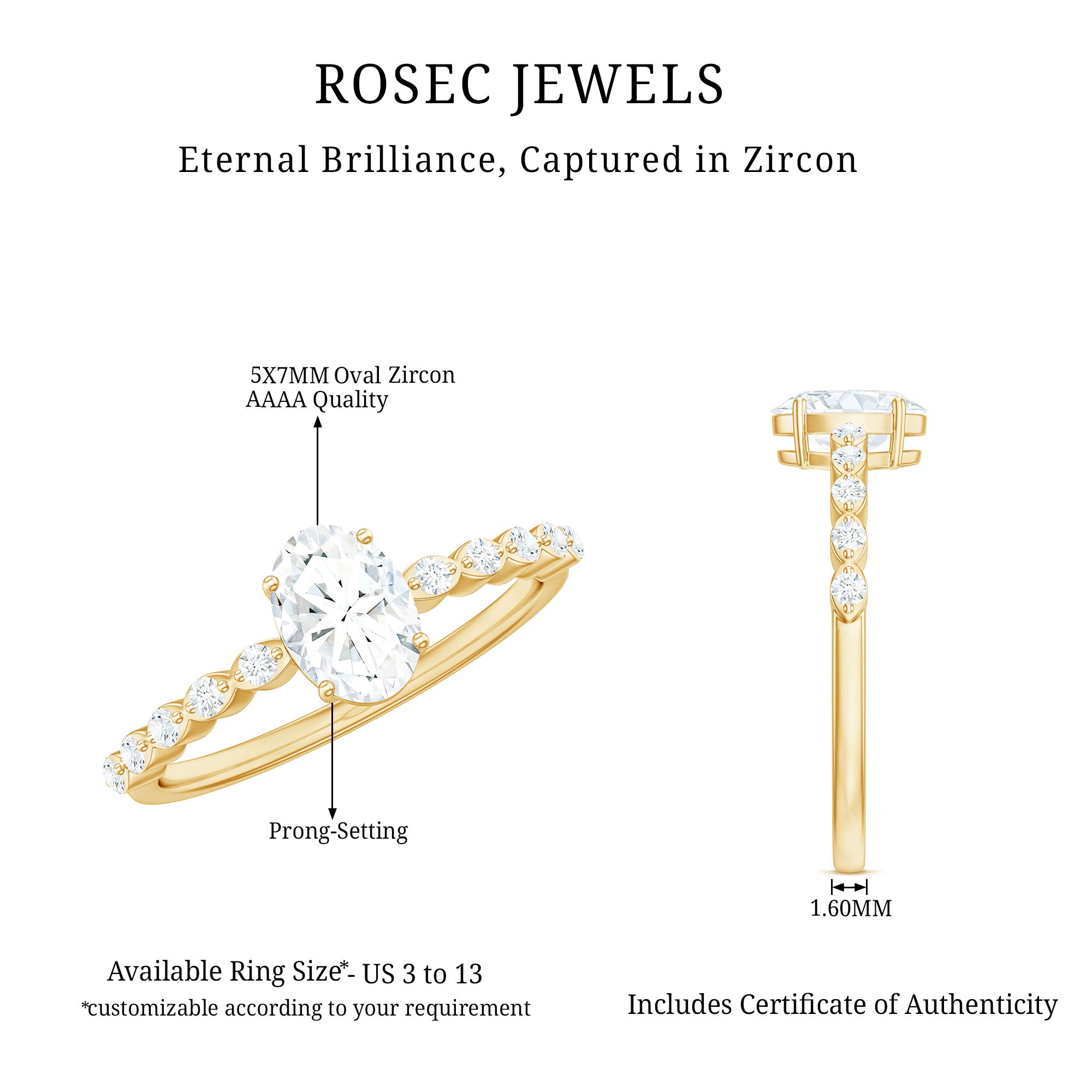 1.75 CT Oval Cut Solitaire Zircon Engagement Ring with Side Stones