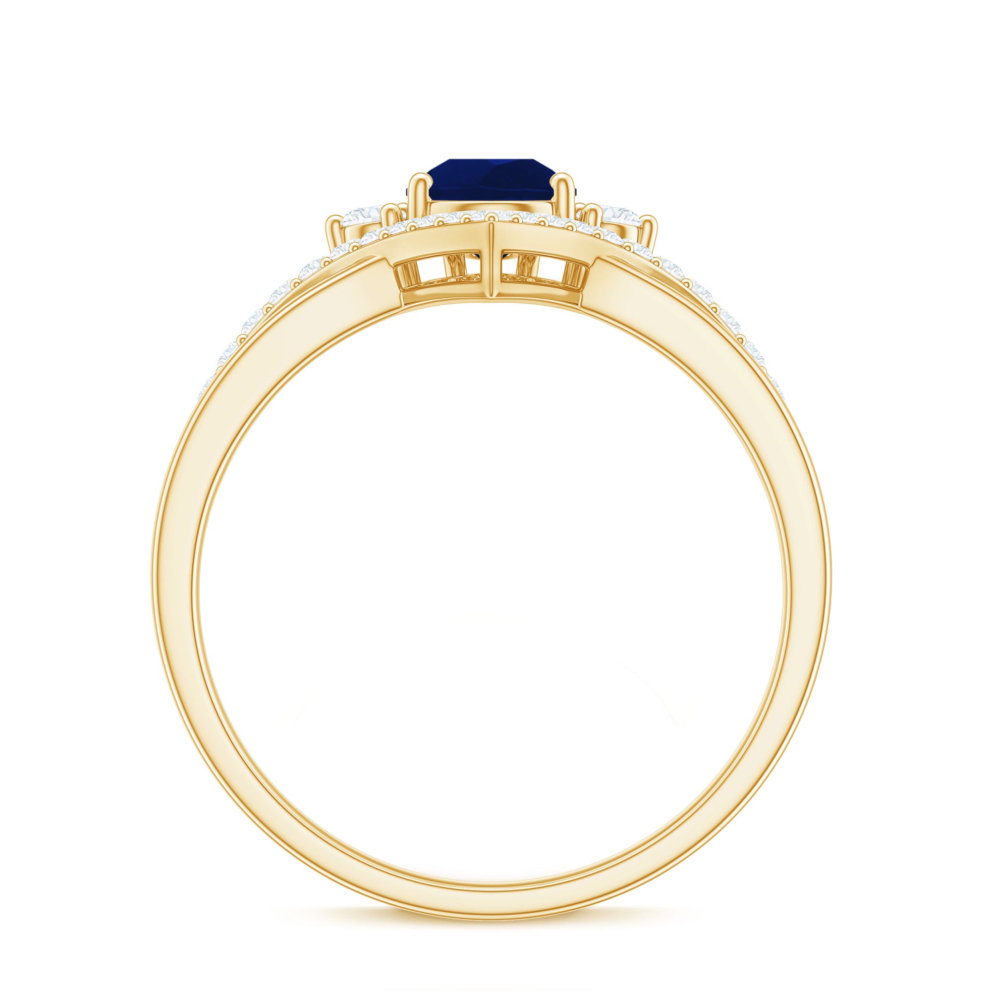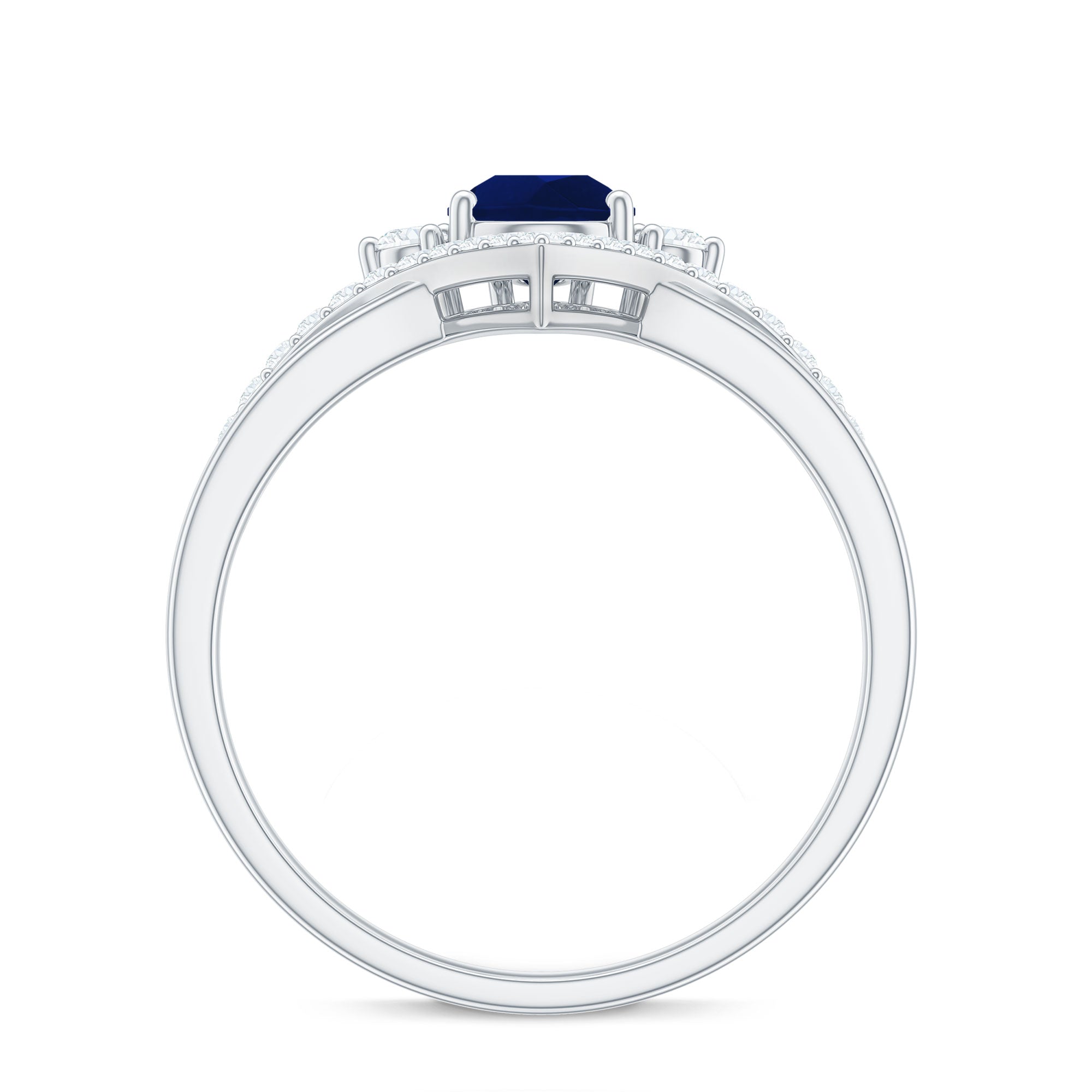 Pear Cut Blue Sapphire Designer Solitaire Ring with Diamond