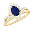 Give a flair of elegance to your look with this Designer Ring adorned with Pear Cut Blue Sapphire set as Solitaire in 3-Prong Setting with Diamond Accent, crafted in Solid Gold, this designer Ring is a timeless treasure.
