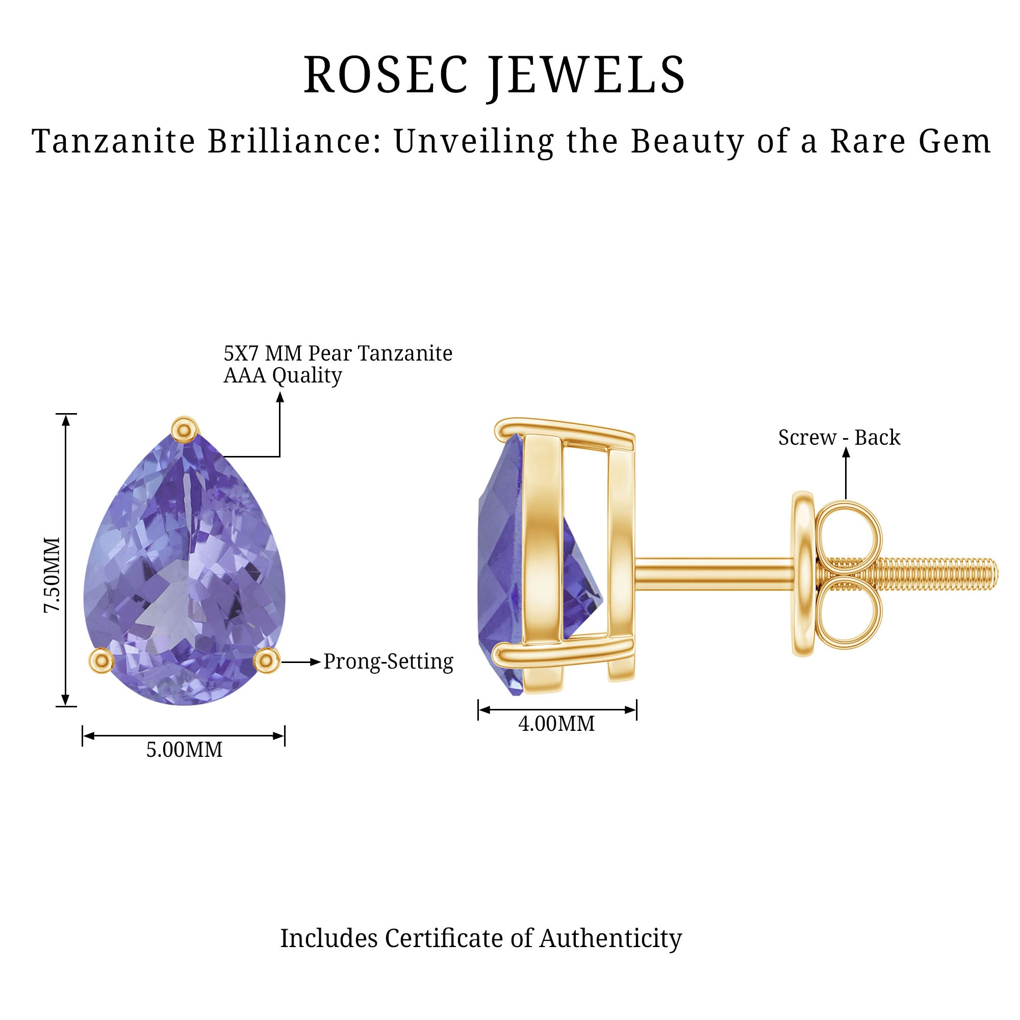 Dazzle with this Beautiful Simple Stud Earring embellished with Pear Cut Tanzanite set in Prong Setting. This Solitaire Stud Earring is Composed in Solid Gold and can be a perfect pair of Stud Earrings for your evening weekend parties so grab it now.