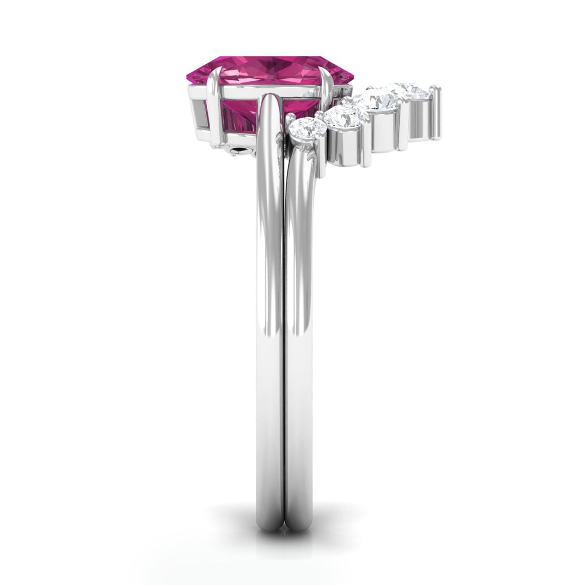 1.75 CT Pink Tourmaline and Moissanite Engagement Enhancer Ring Set