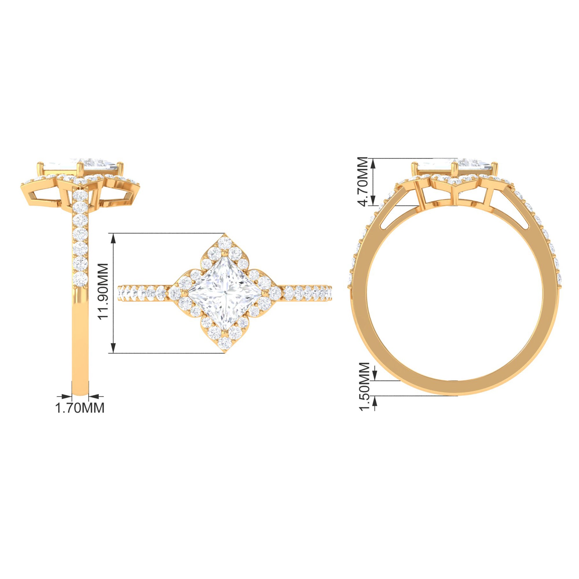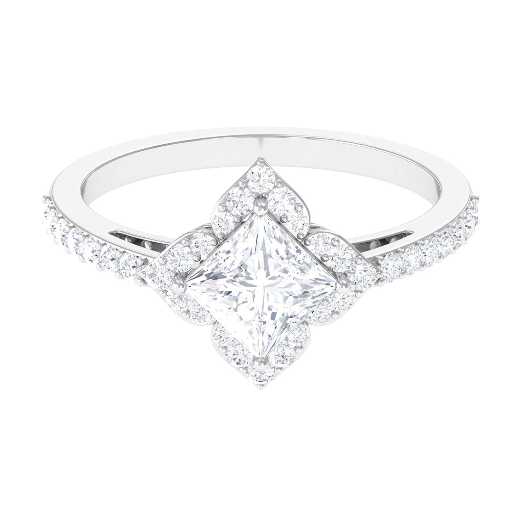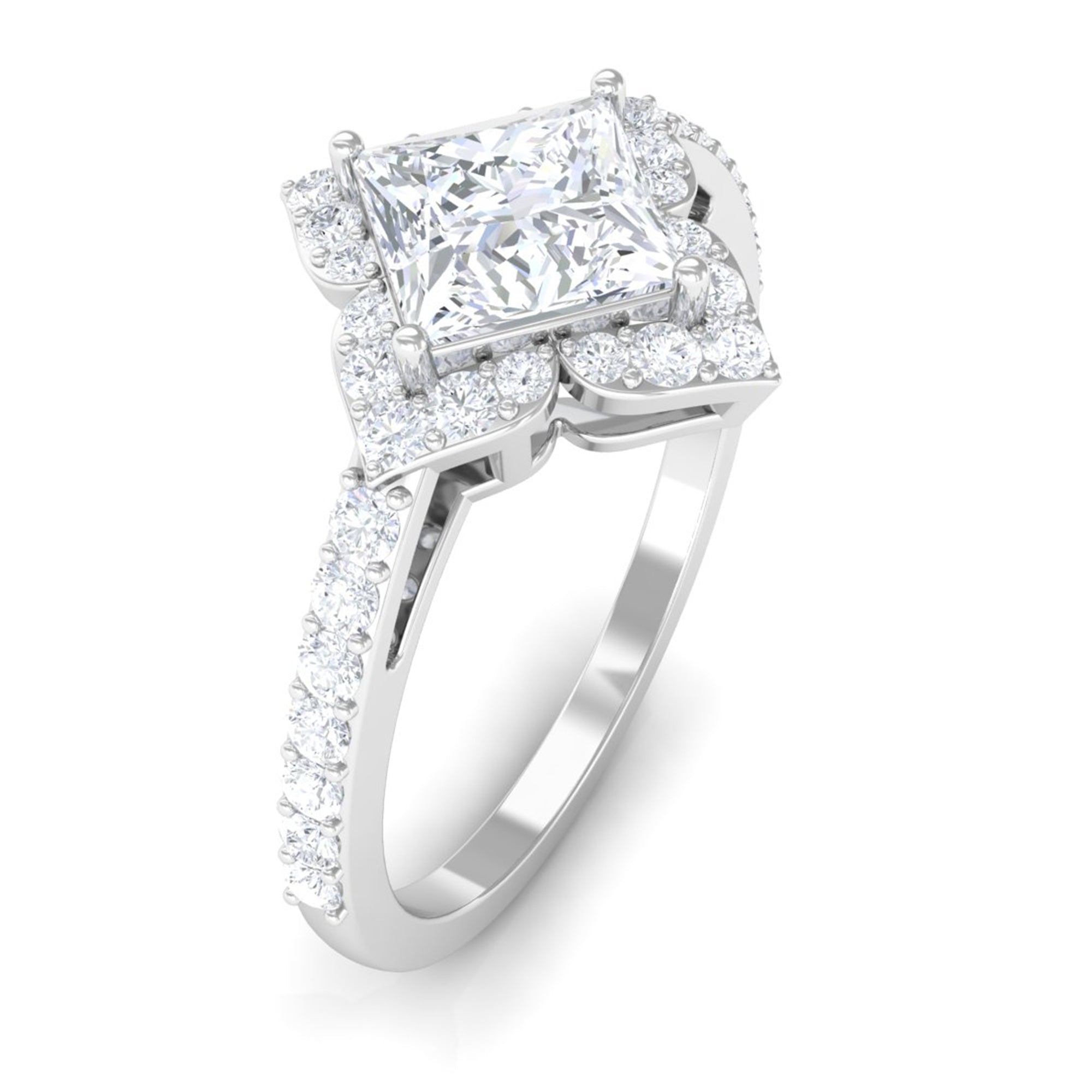 1.75 CT Princess Cut Zircon Engagement Ring Floral Halo