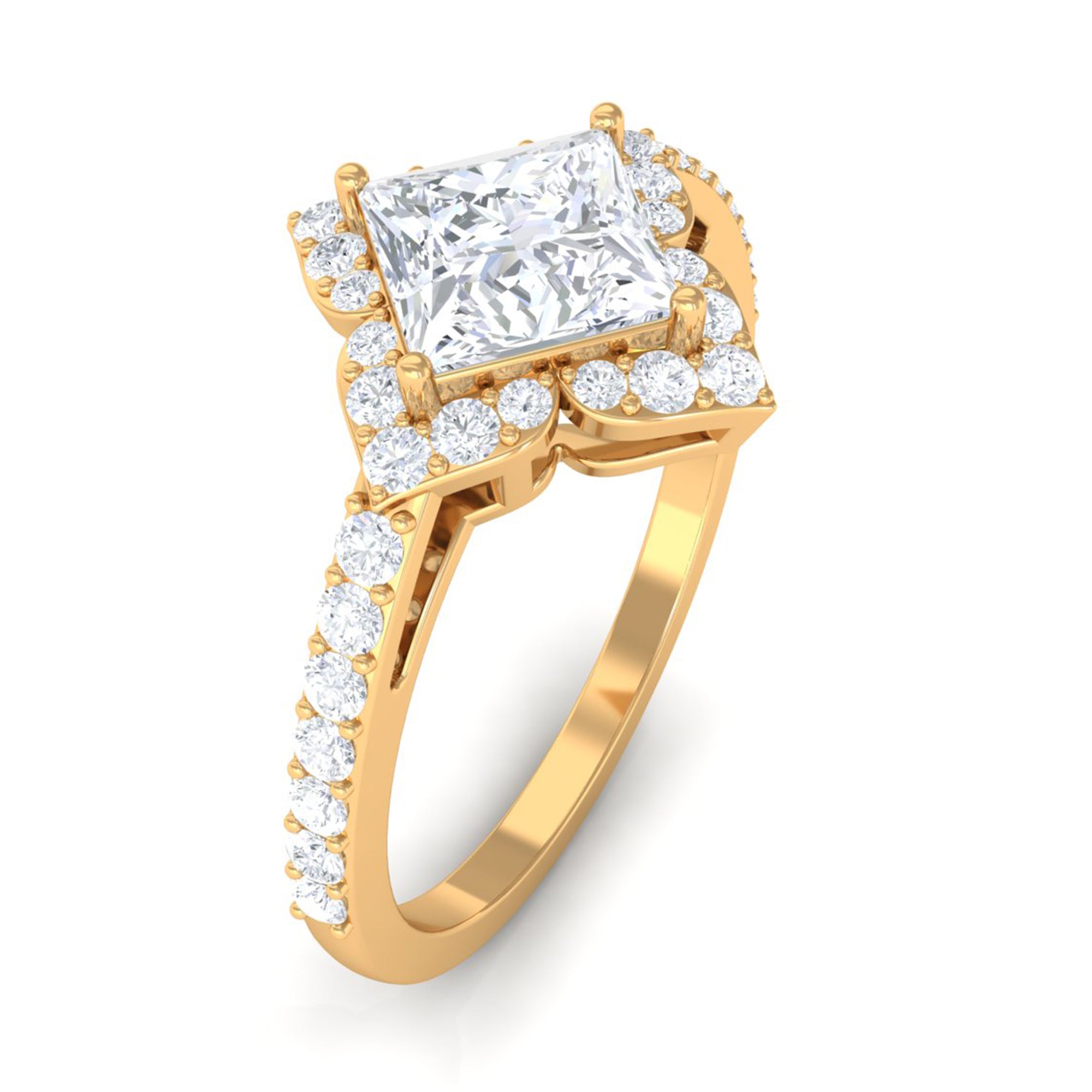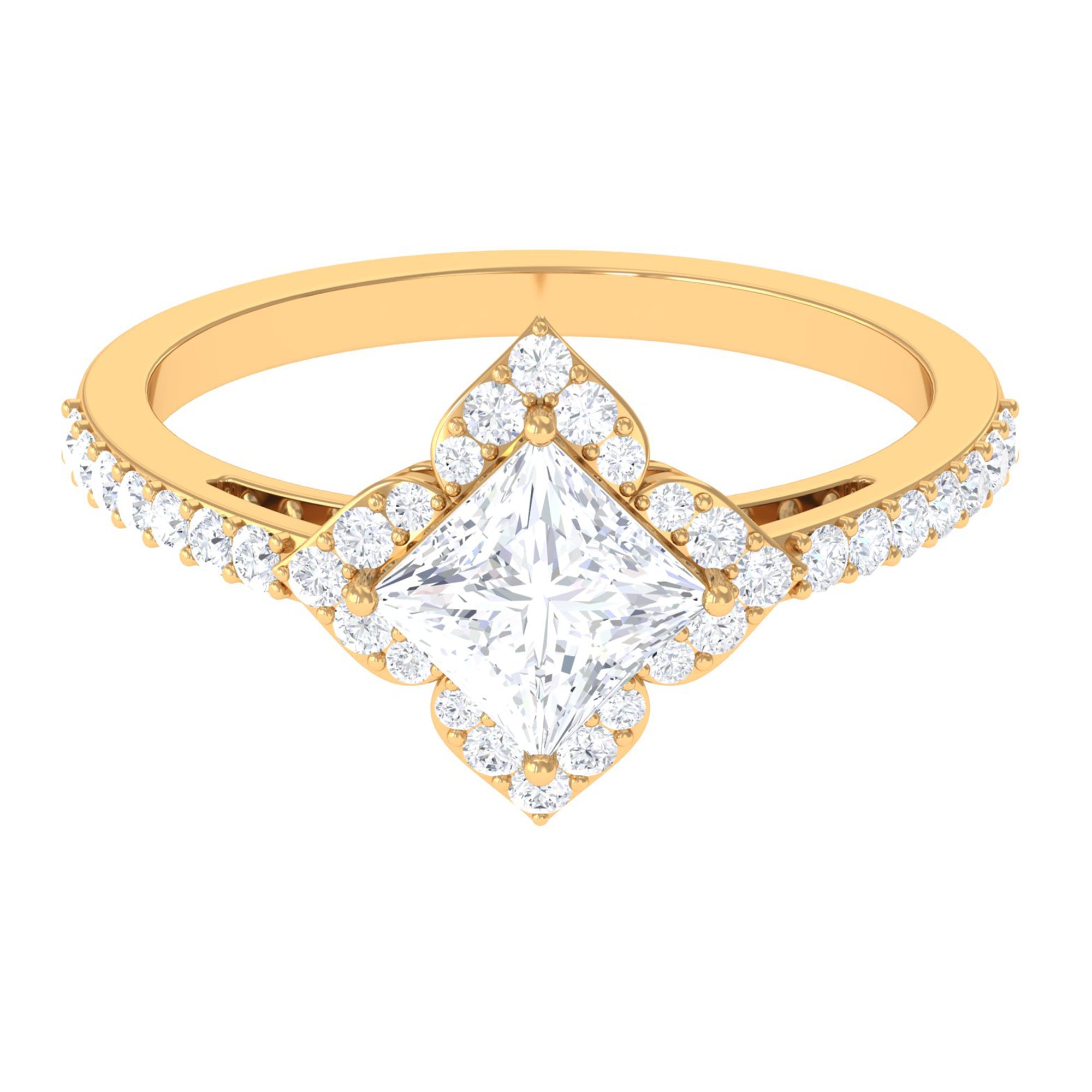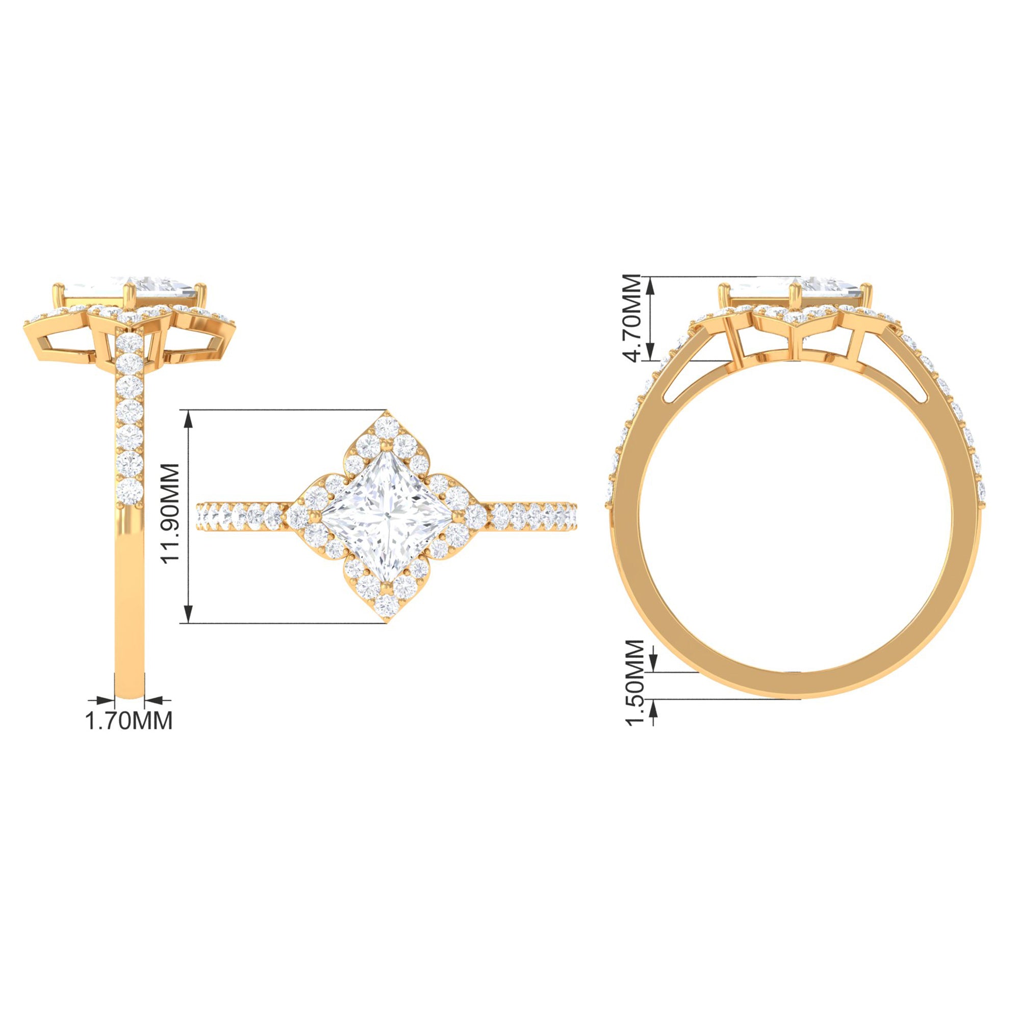 1.75 CT Princess Cut Zircon Engagement Ring Floral Halo