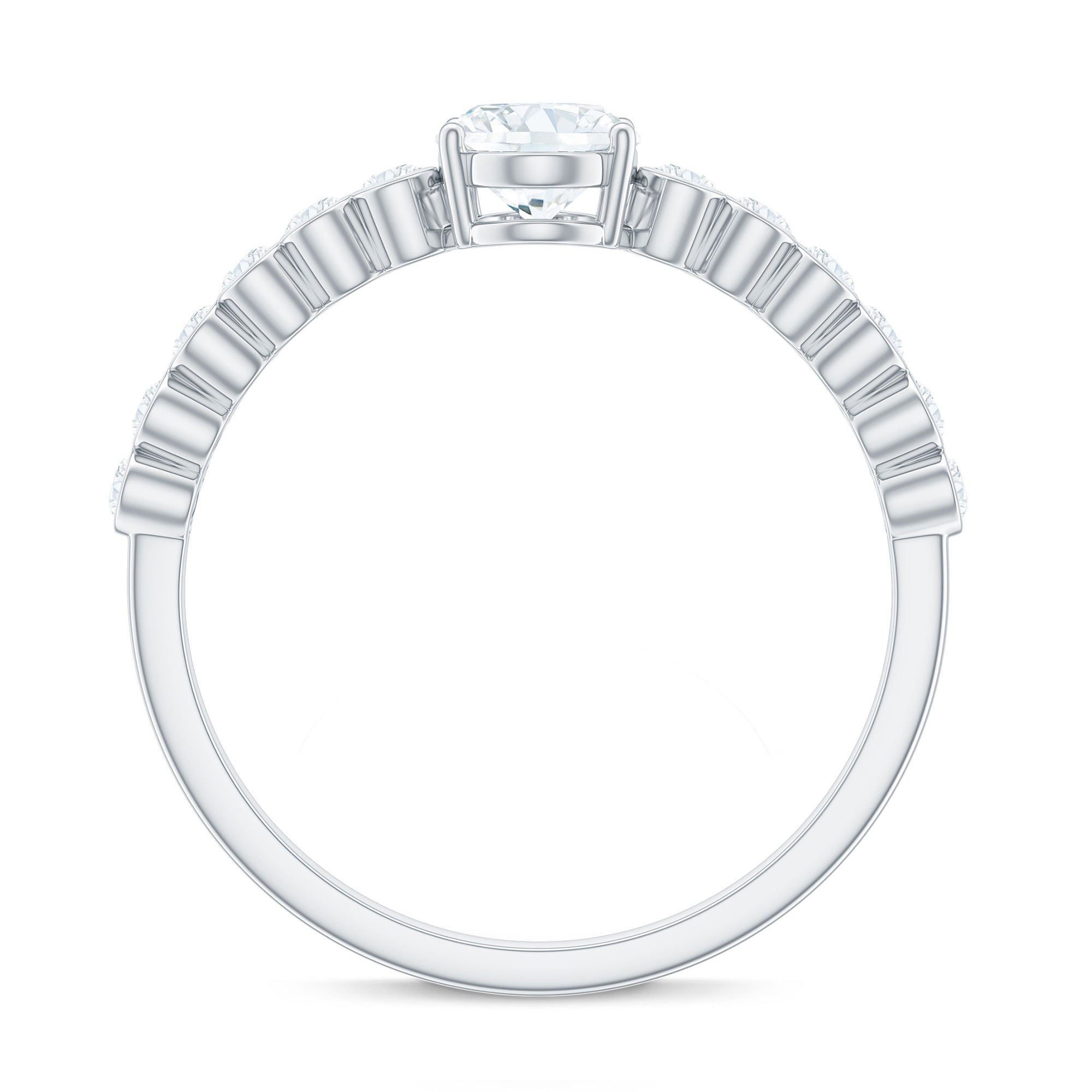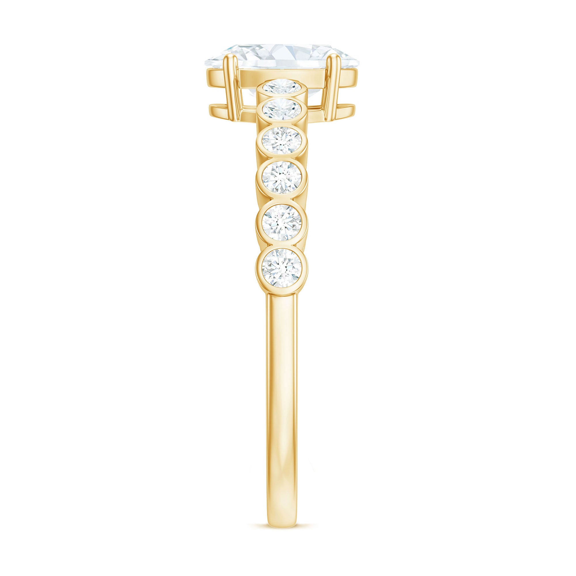 Eyes will be fixated on this immaculate Zircon Engagement Ring, showcasing Prong Set Oval Cubic Zirconia with Round Cut Side Stones in Bezel Setting that complement your fashion choice. The Solitaire Design makes this ring light and feminine for a truly special look. Crafted in Gold for a luxurious look.
