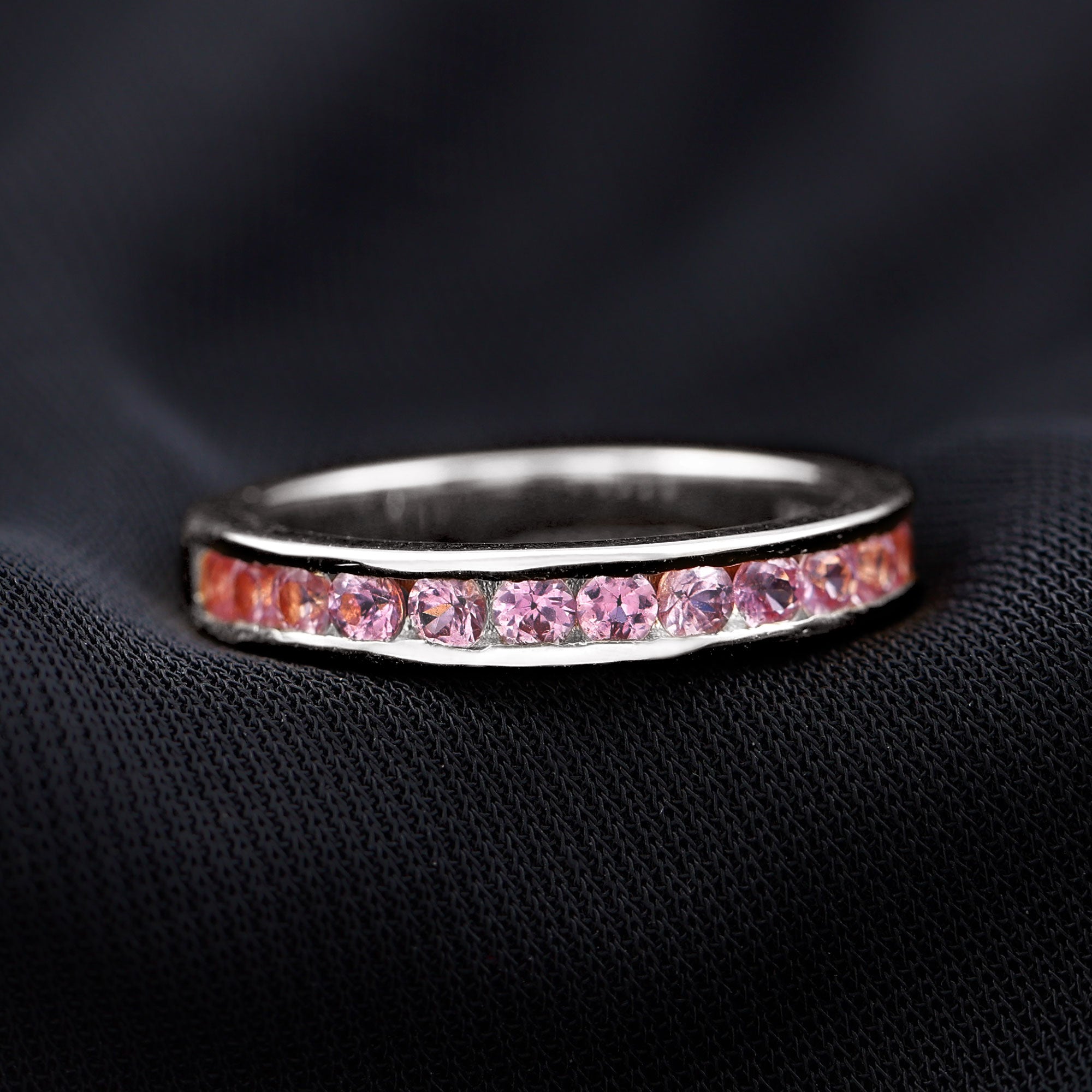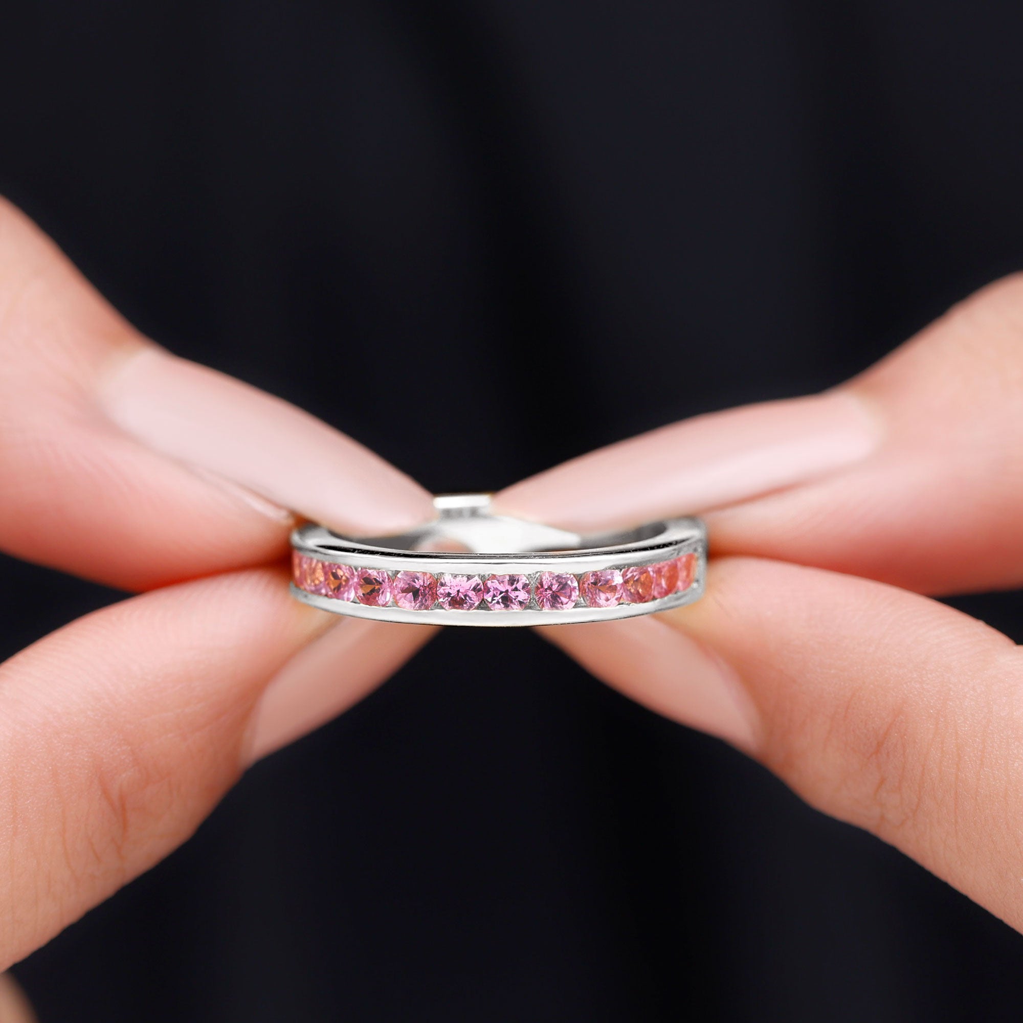 1.75 CT Round Created Pink Sapphire Semi Eternity Band Ring in Channel Setting