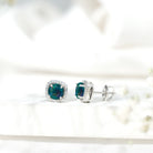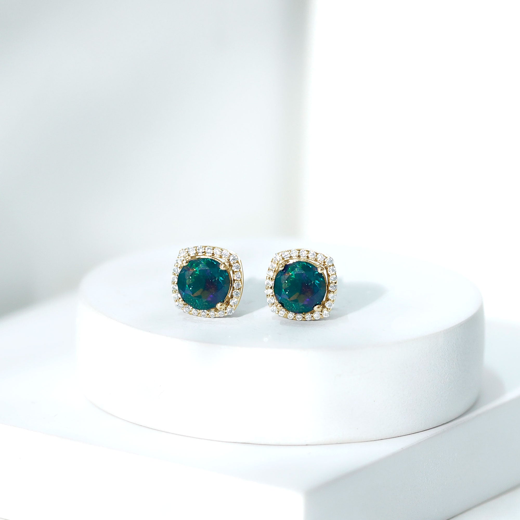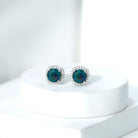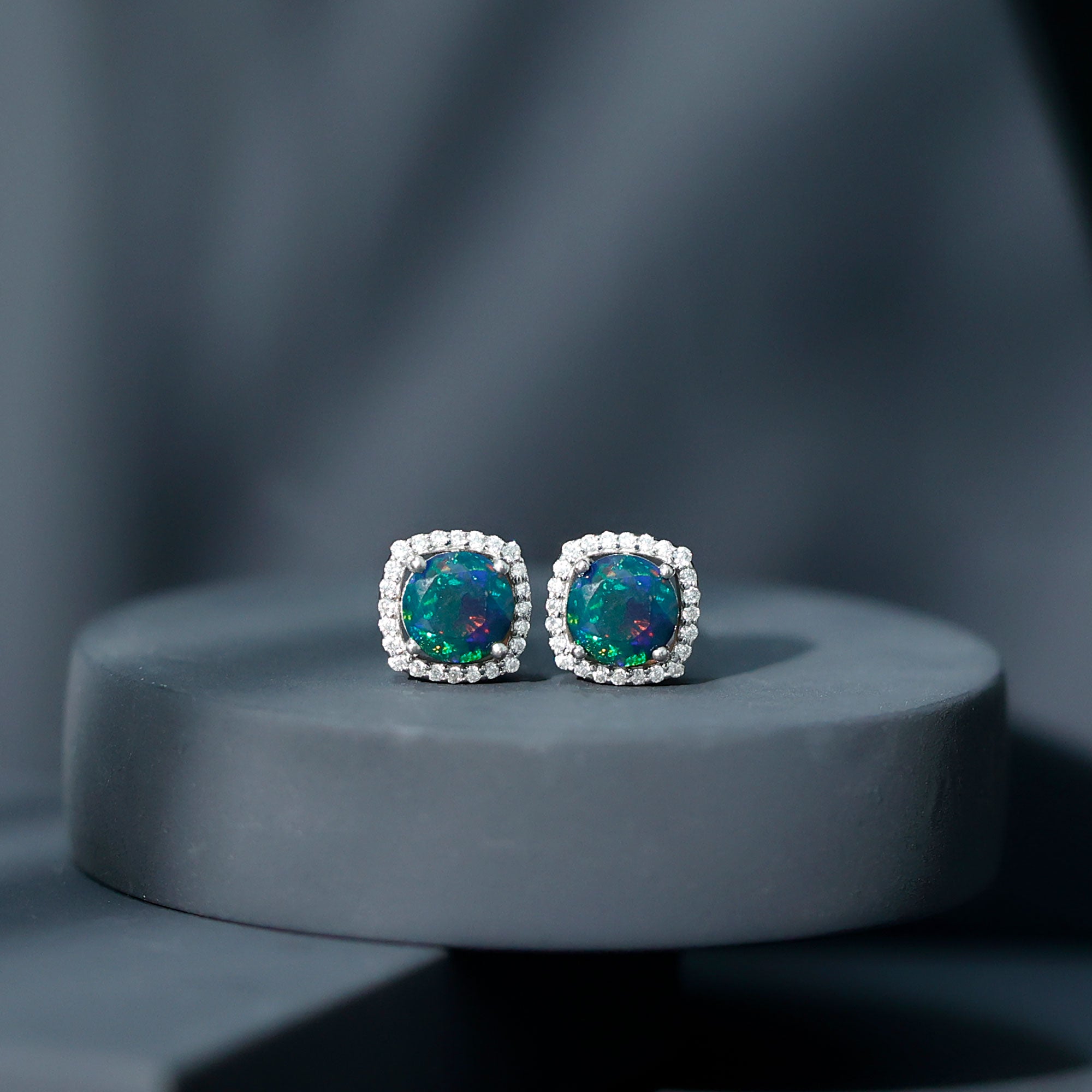 1.75 CT Round Shape Black Opal Stud Earrings with Moissanite Halo