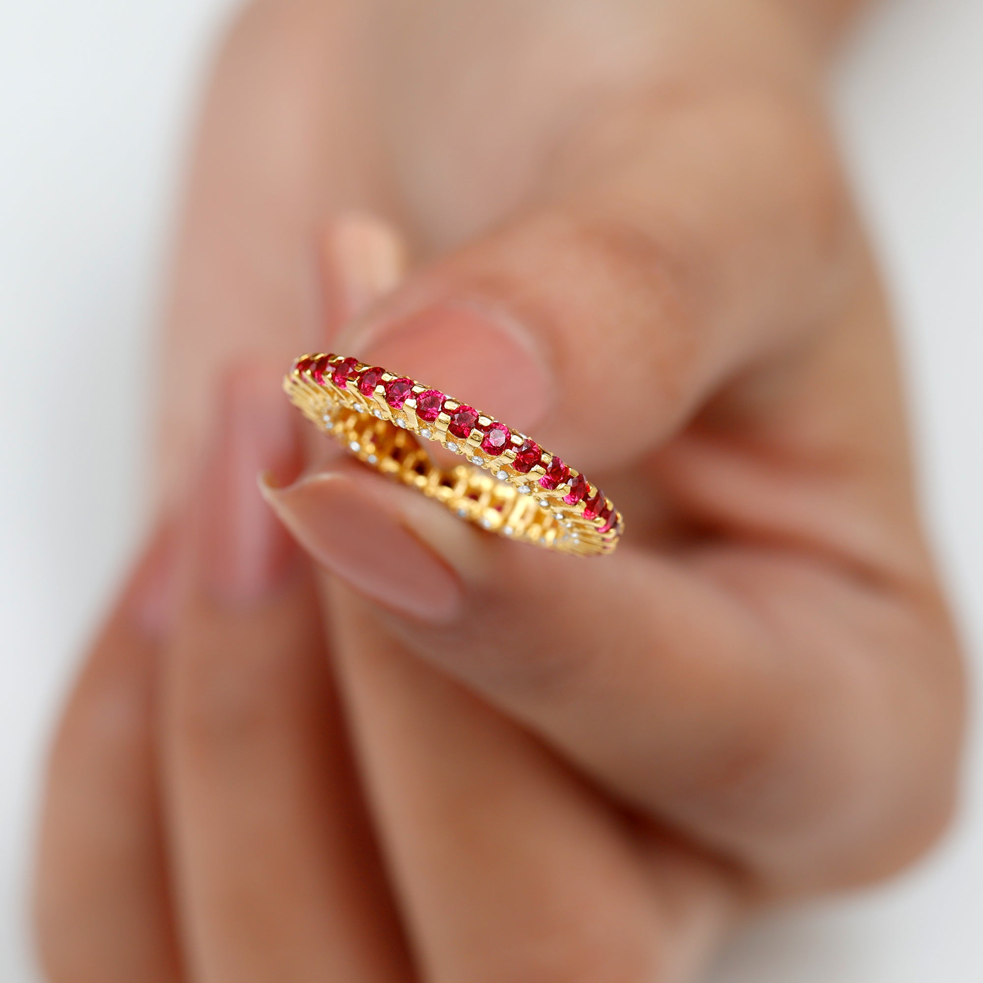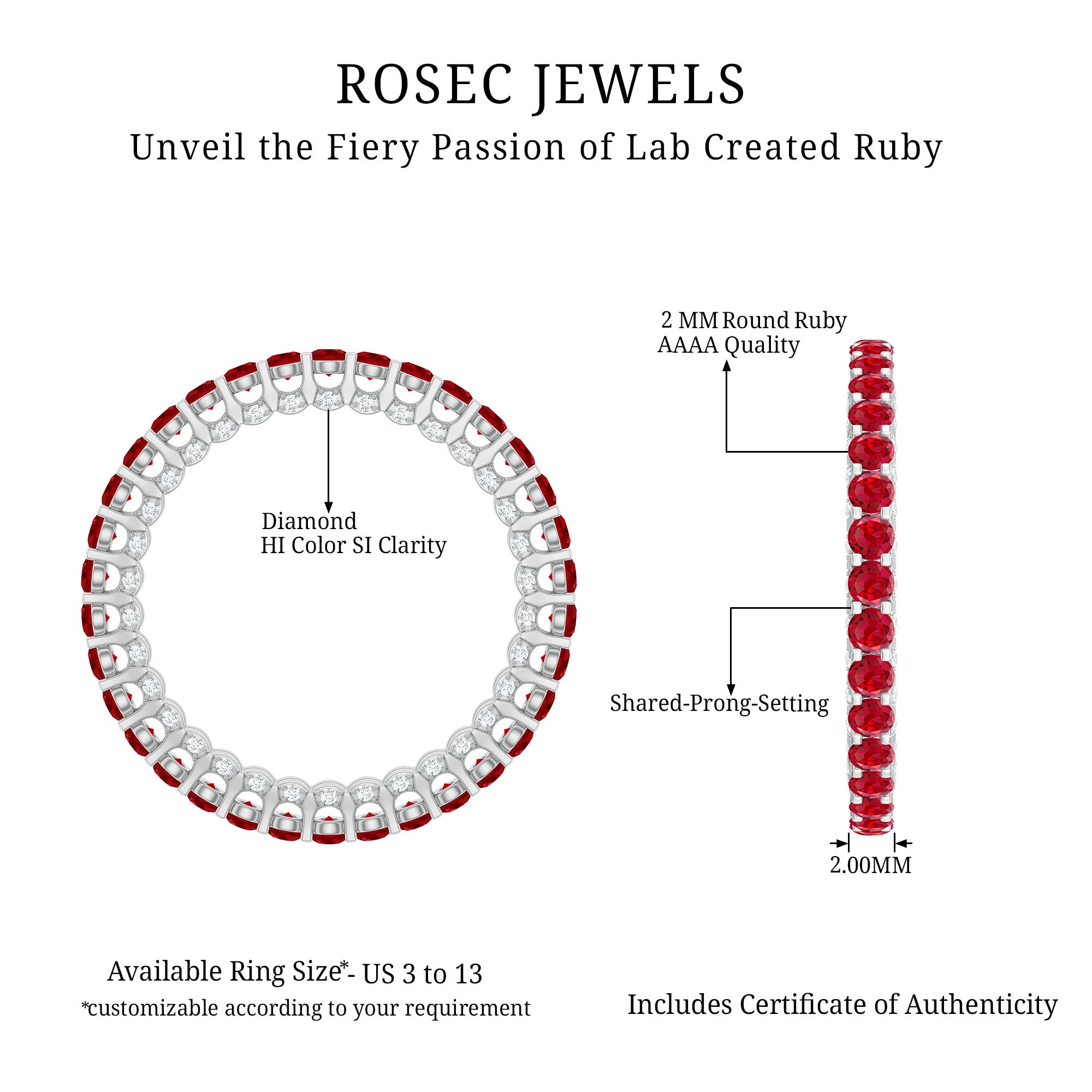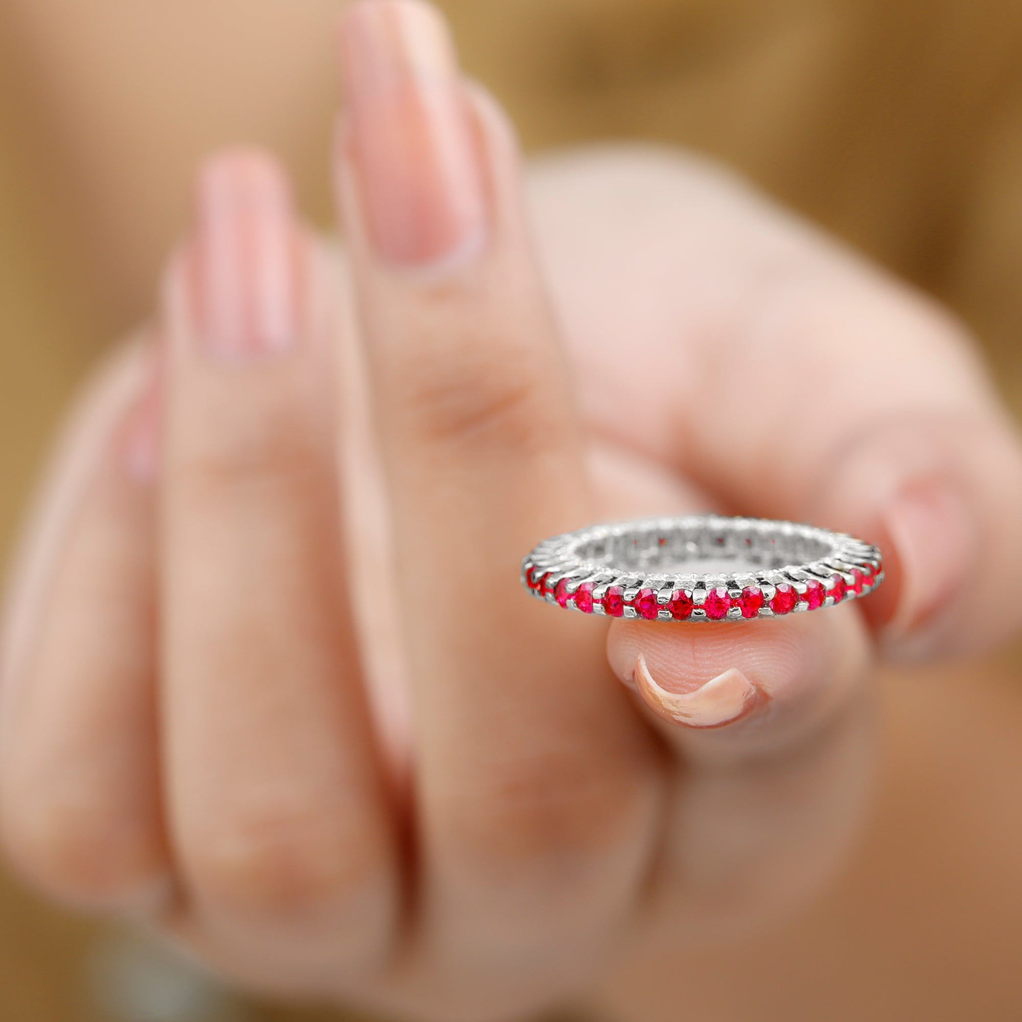 1.75 CT Round Shape Lab Grown Ruby and Diamond Eternity Wedding Band