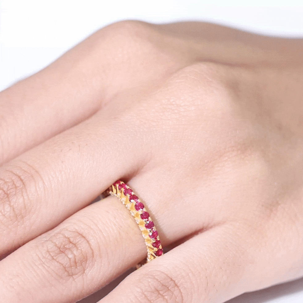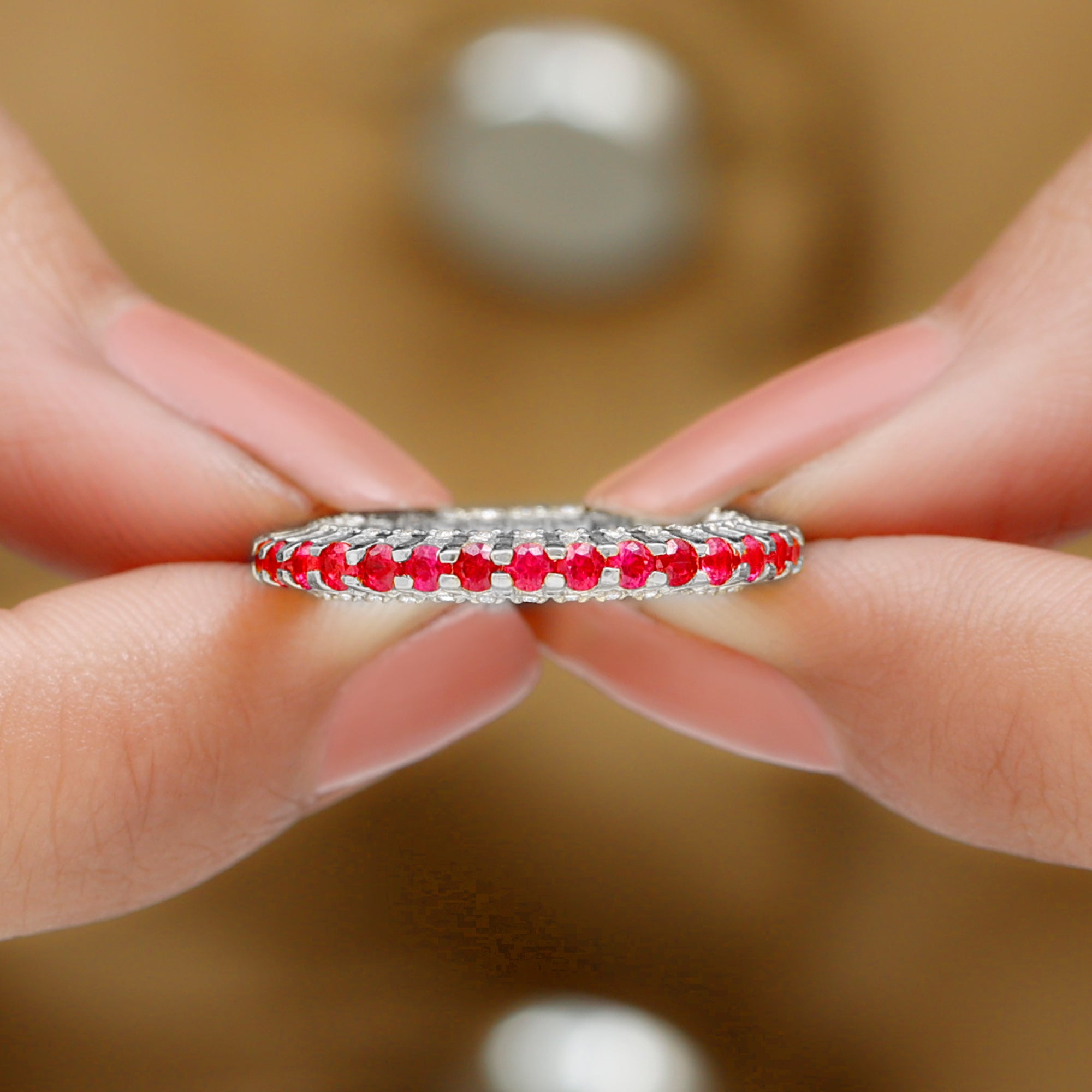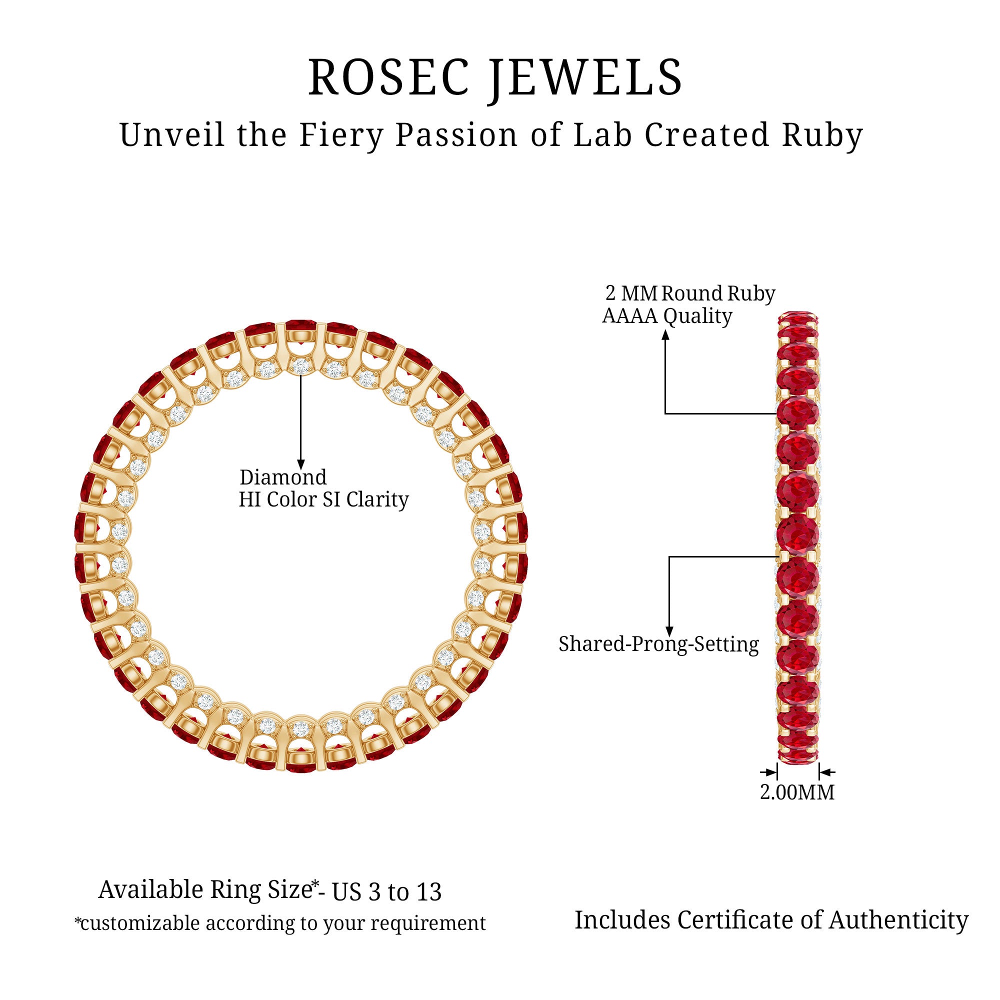 1.75 CT Round Shape Lab Grown Ruby and Diamond Eternity Wedding Band