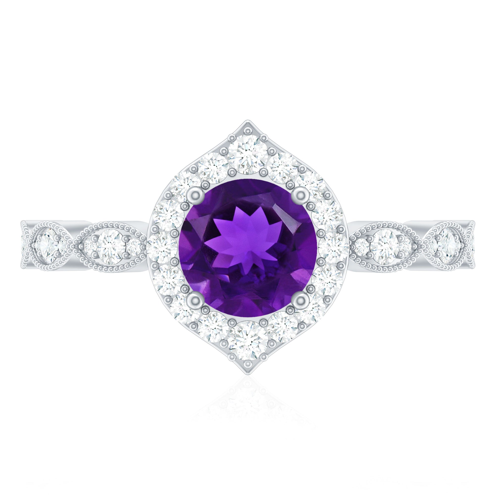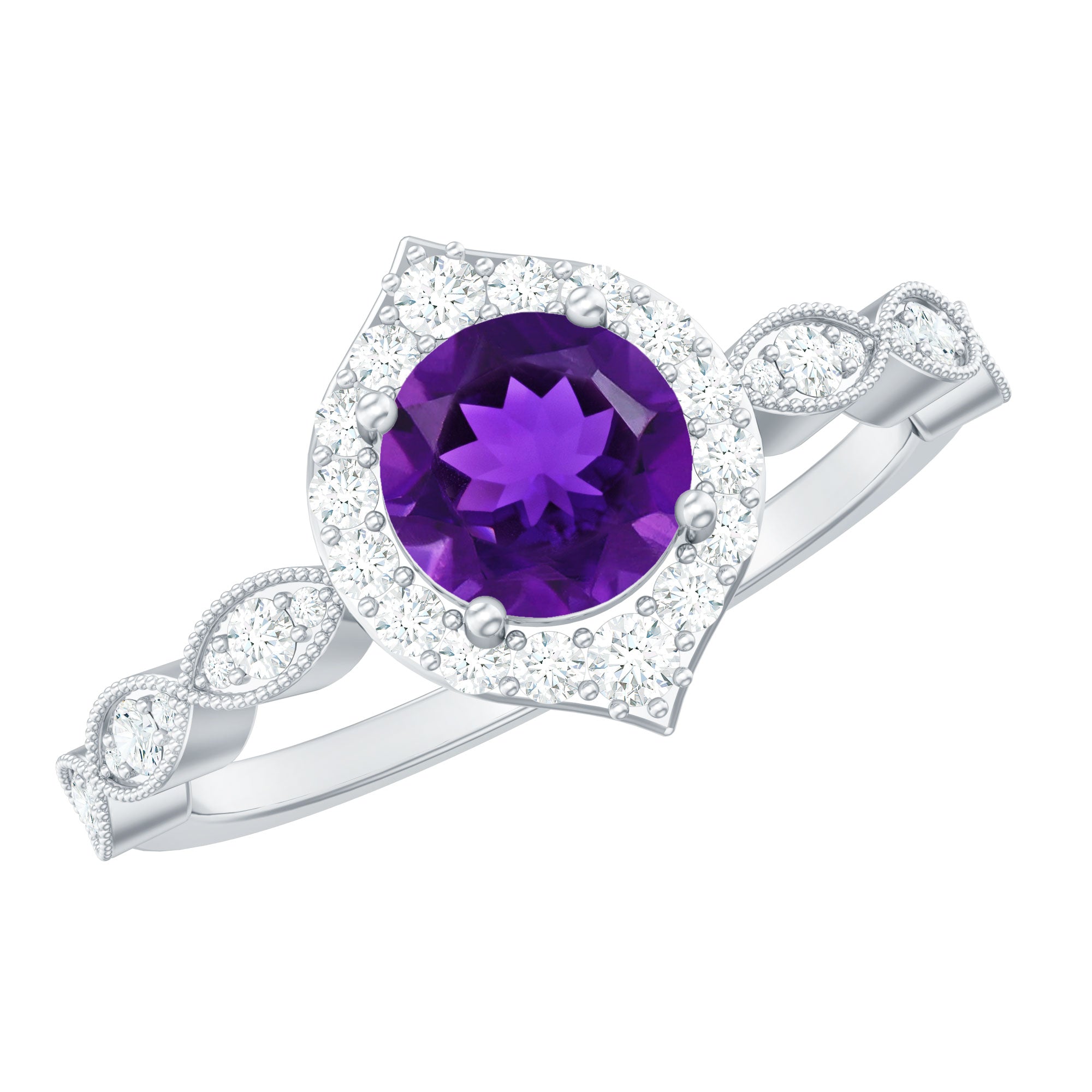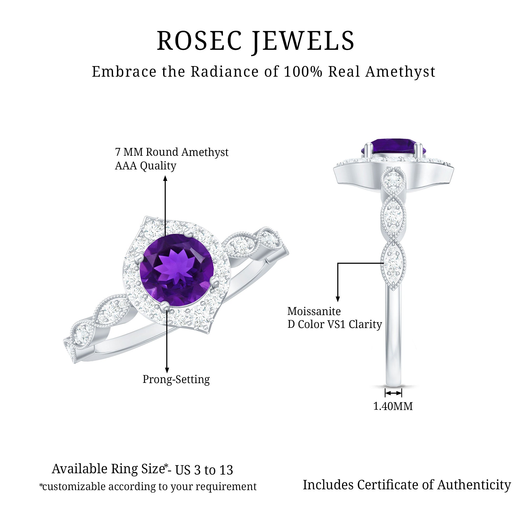 1.75 CT Vintage Amethyst Engagement Ring with Moissanite Accent