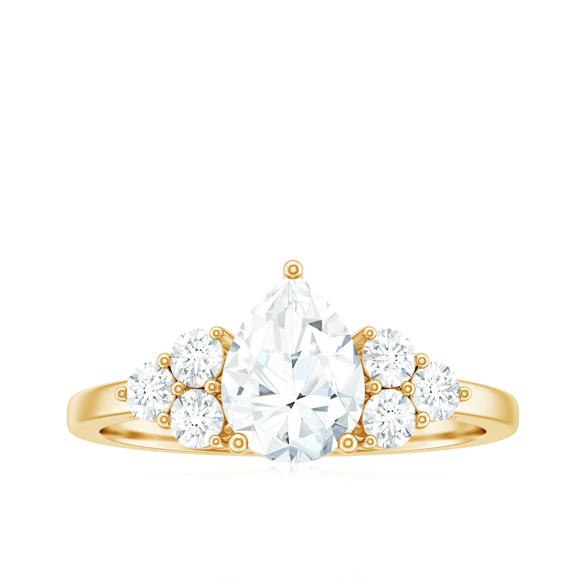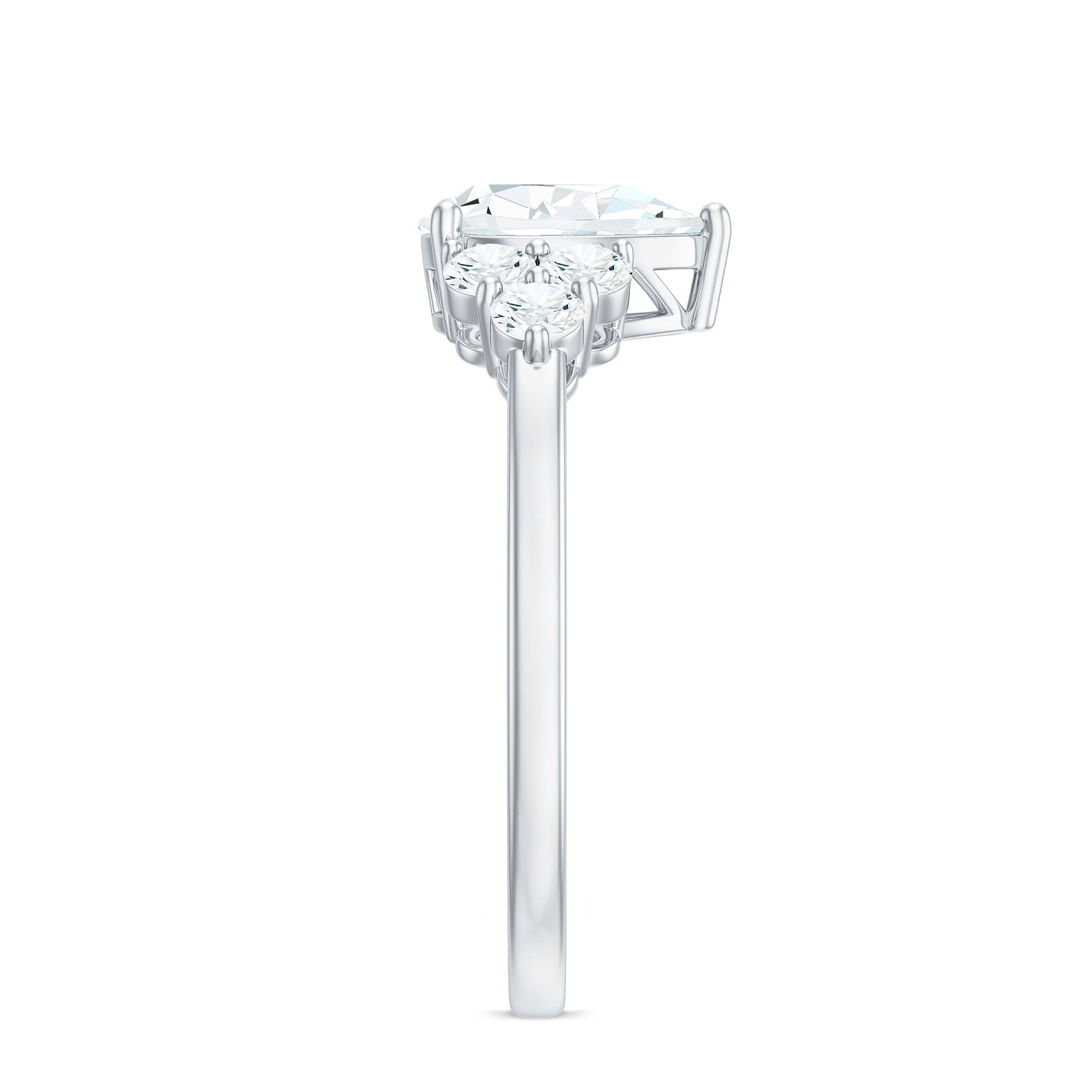 Zircon Teardrop Engagement Ring with Cluster Accent