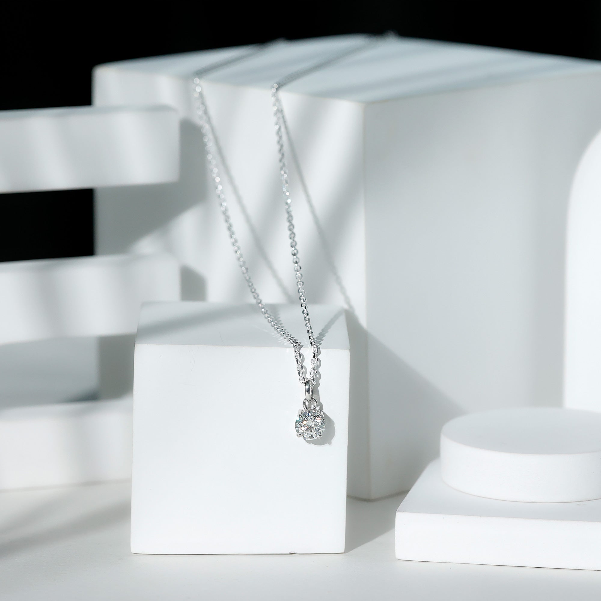 1 Carat Round Moissanite Solitaire Pendant Necklace in Prong Setting