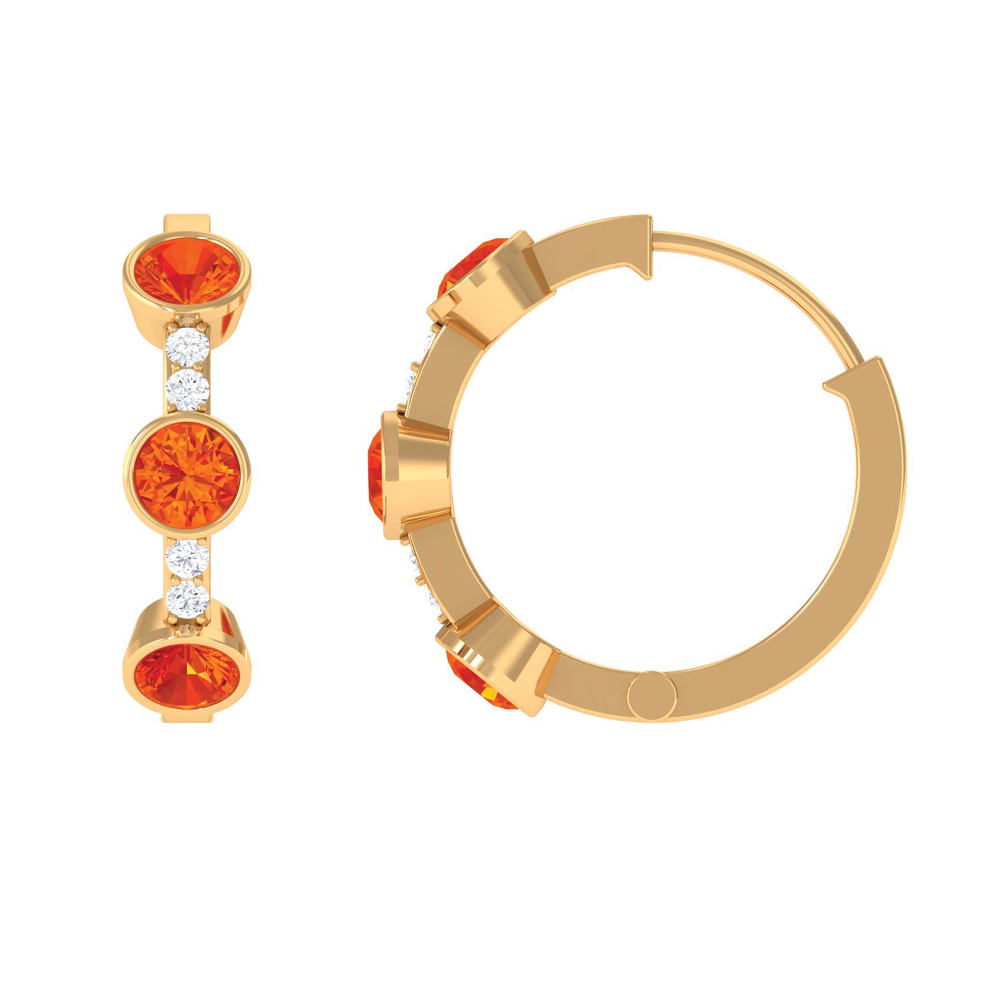 1 CT Bezel Set Orange Sapphire Three Stone Hoop Earrings with Diamond