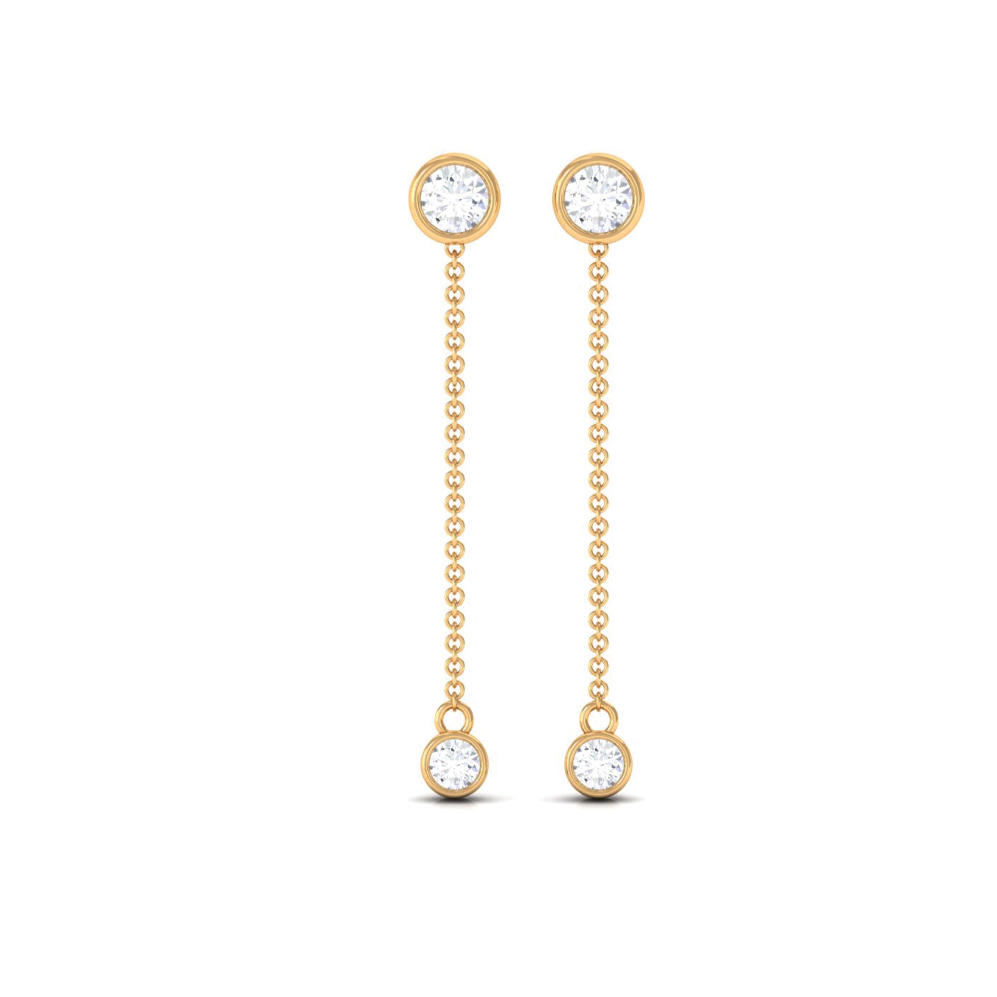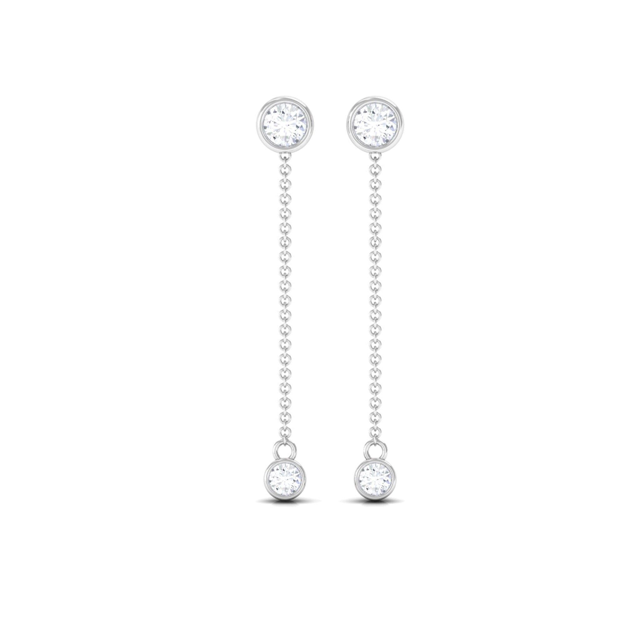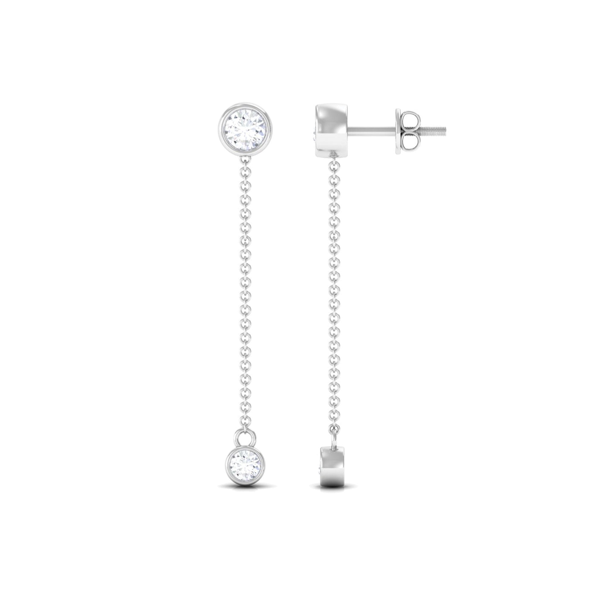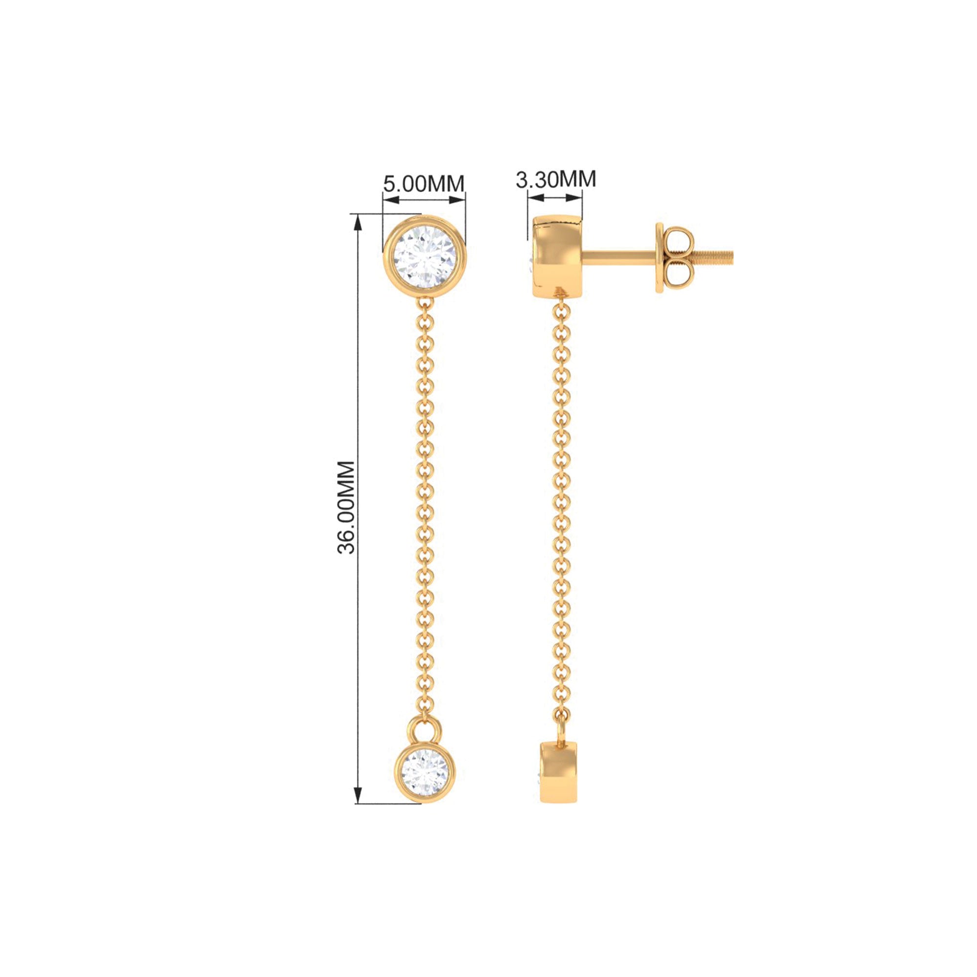 1 CT Bezel Set Round Moissanite Dangle Chain Earrings
