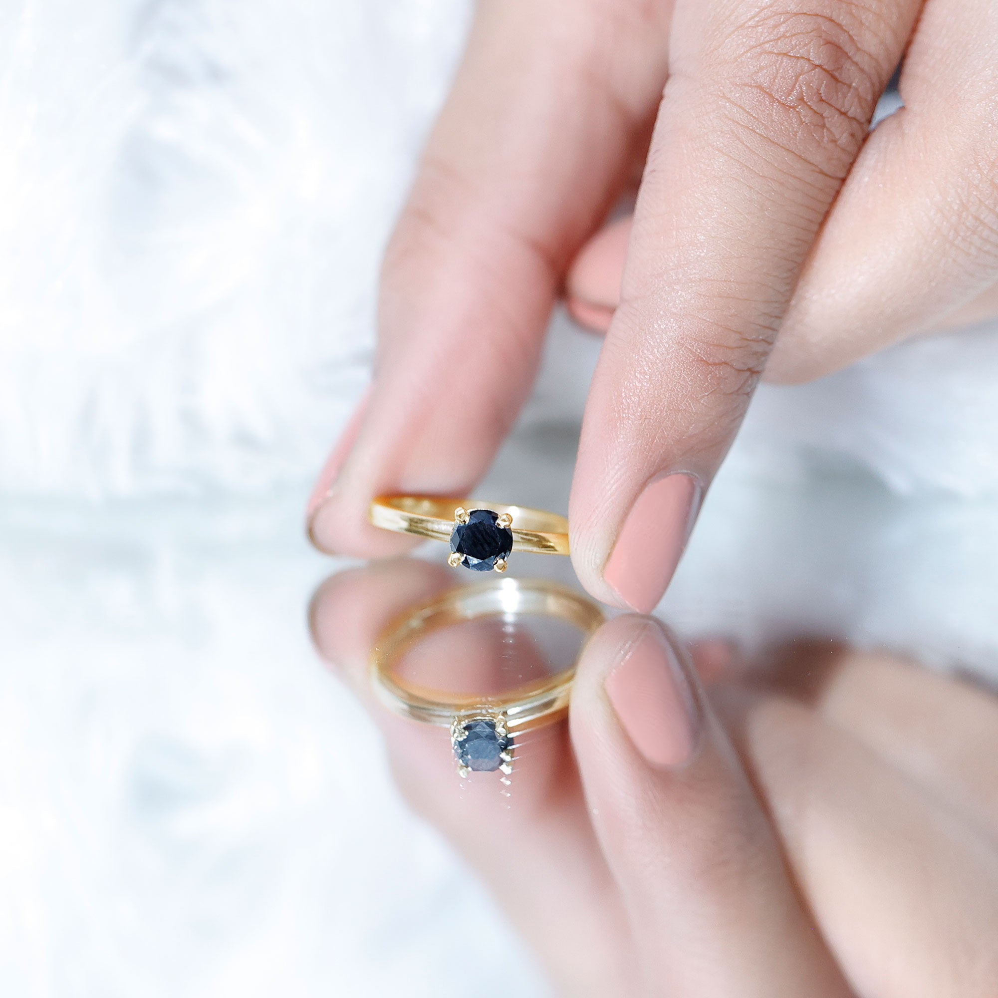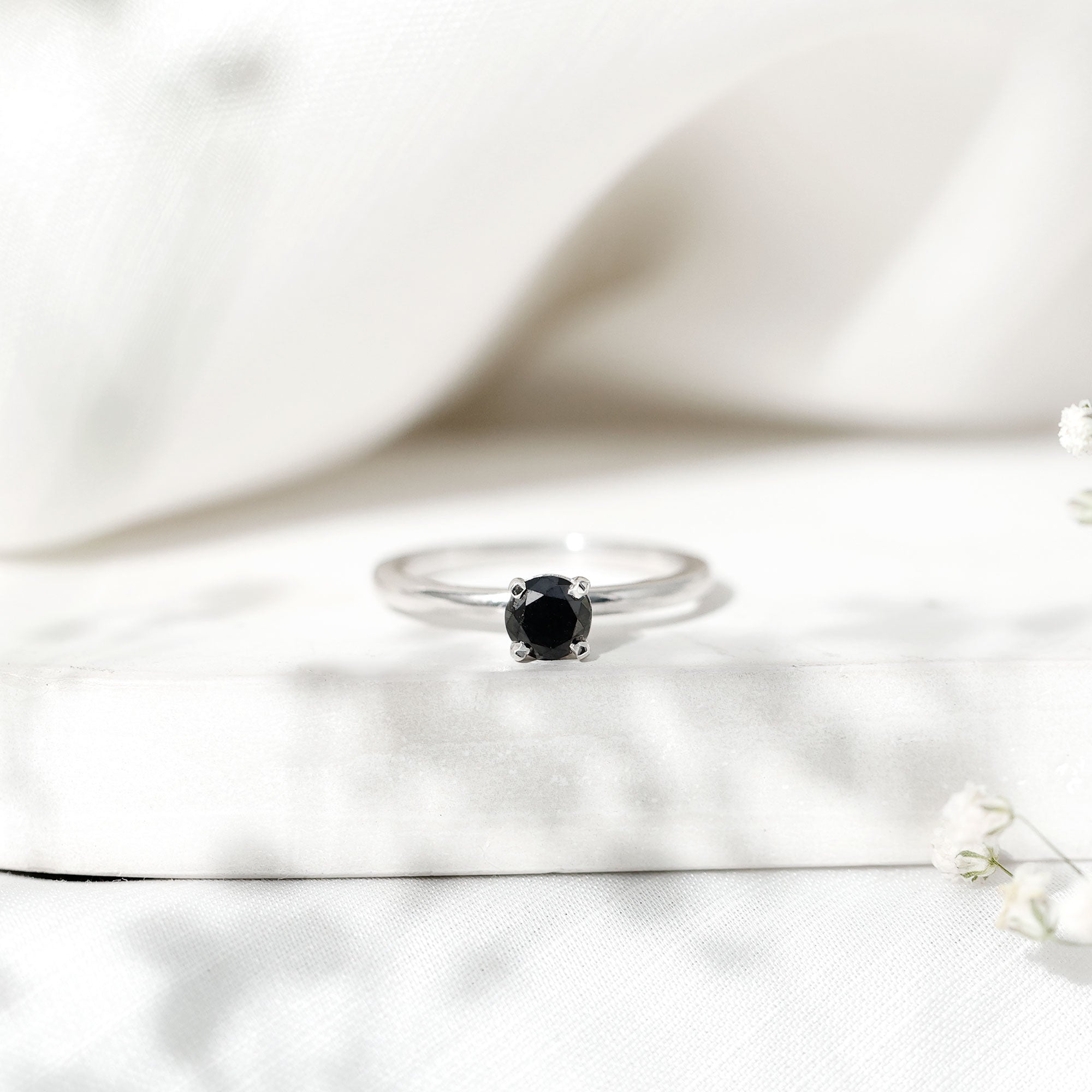 This Solitaire Ring featuring with Round Shape Black Diamond is set as Solitaire in a Prong Setting, crafted in a Solid Gold Metal.