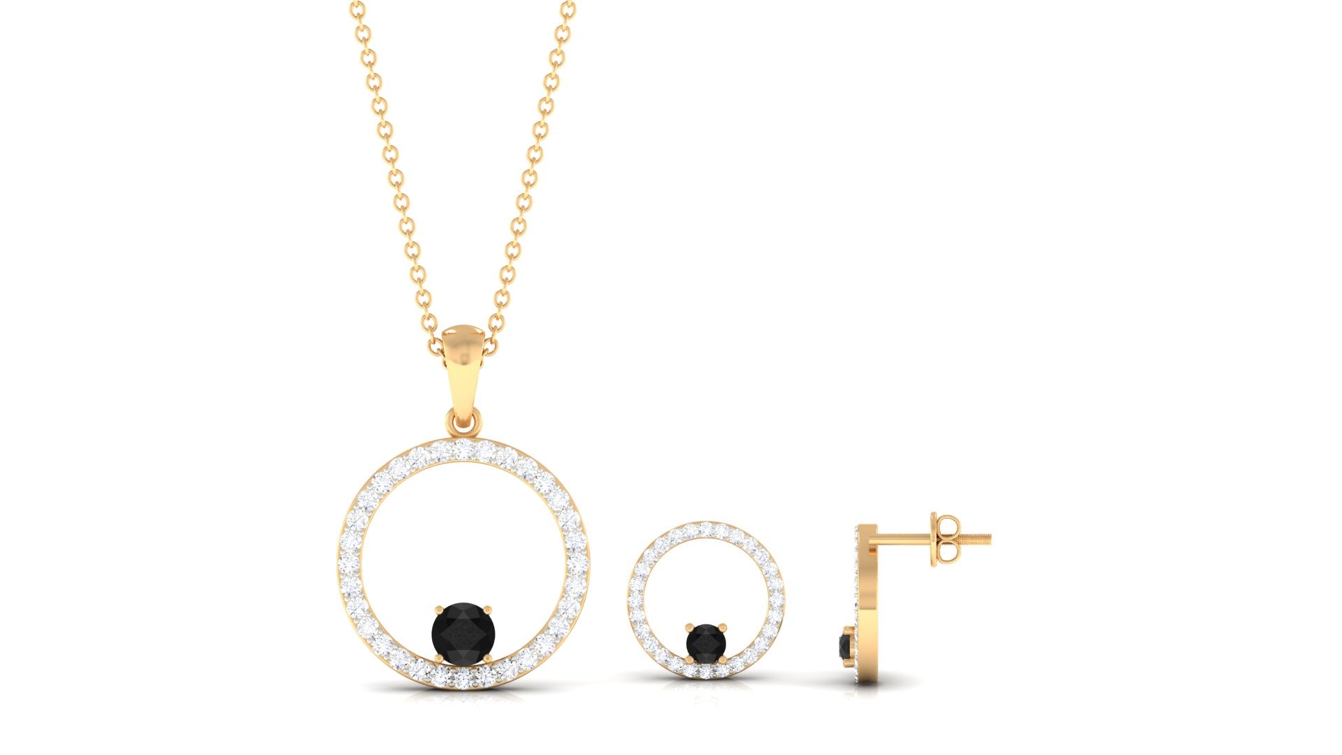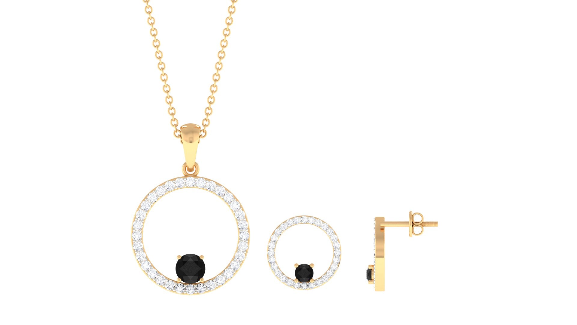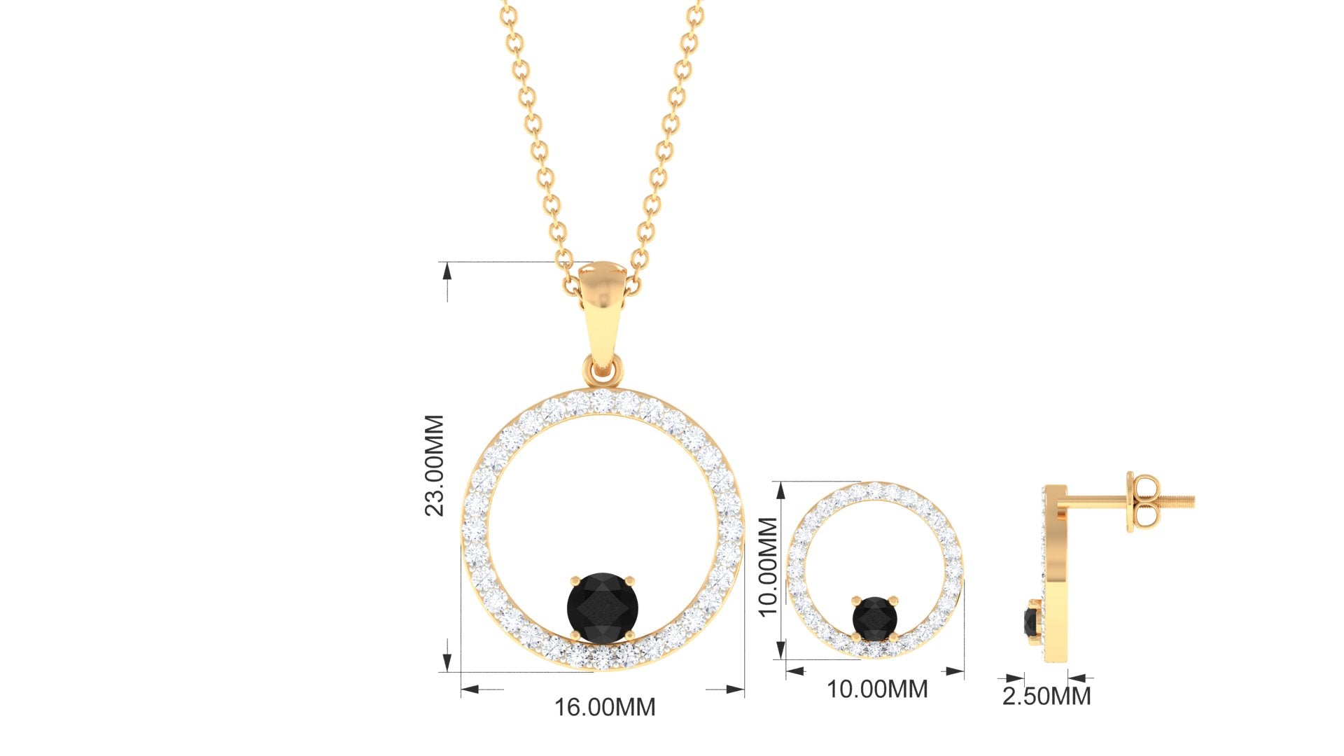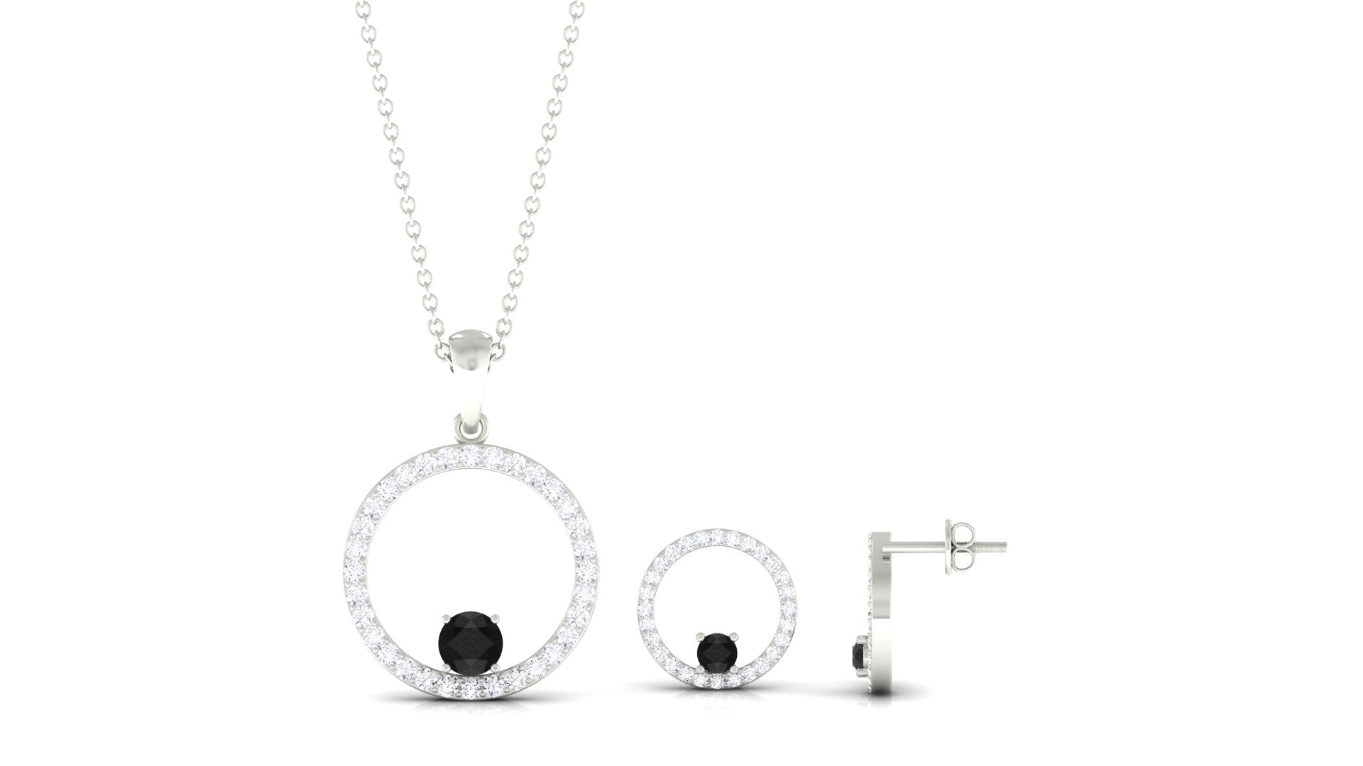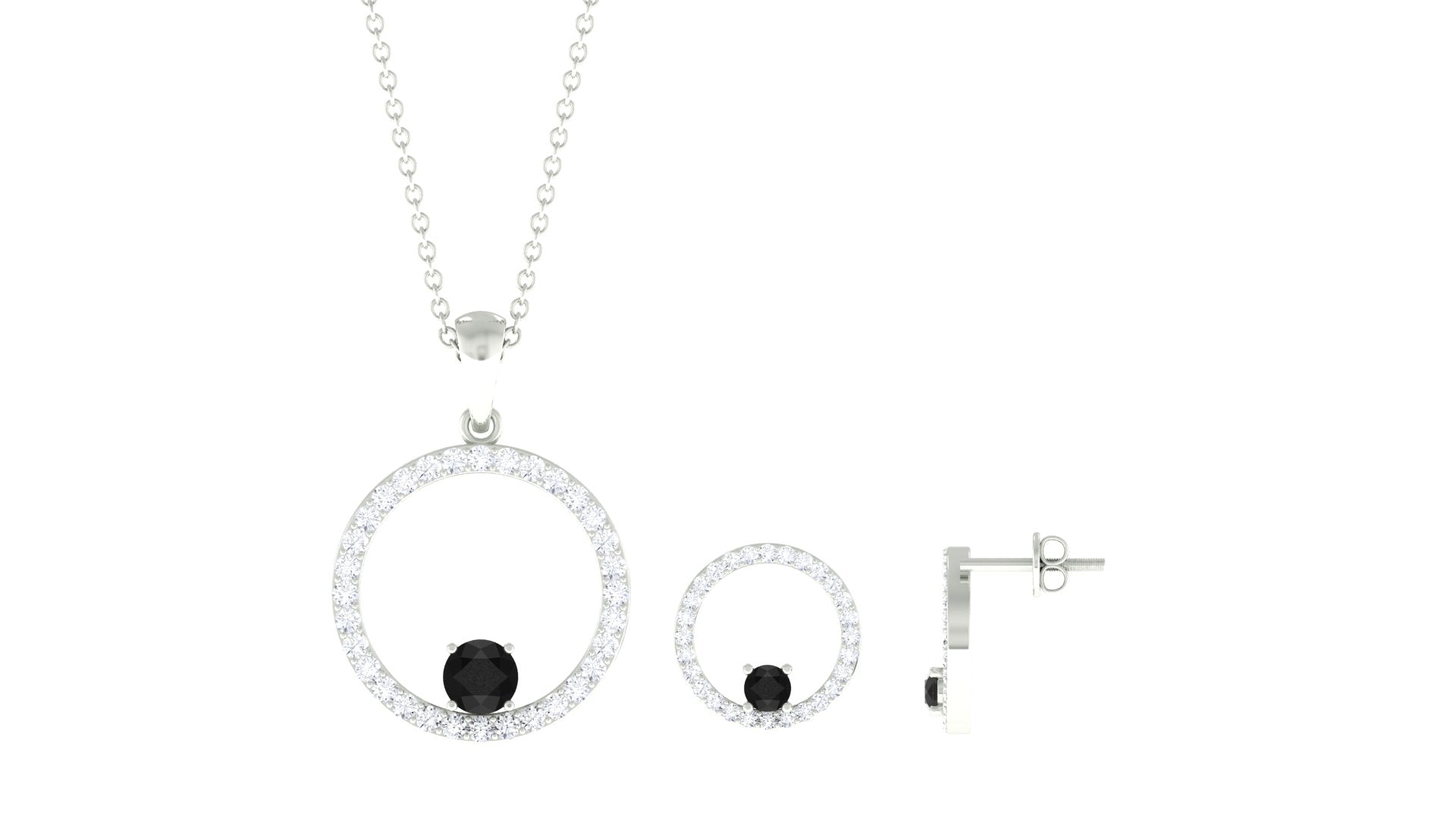 1 CT Black Onyx and Moissanite Open Circle Pendant and Earrings