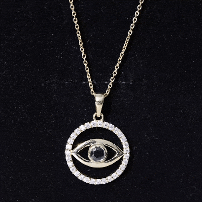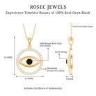This exquisite pendant showcasing the Evil Eye design exudes just the right amount of charm and would make an excellent present for someone special. The Black Onyx pendant is crafted with a circular eternity design encrusted with dazzling round-cut Black Onyx gemstone in a secure bezel setting. The eternity circle is further accentuated with brilliant-cut Moissanite stones, enhancing the overall elegance and sophistication of the piece. This evil eye pendant necklace is a perfect accessory to add a touch of glamour and refinement to any outfit.